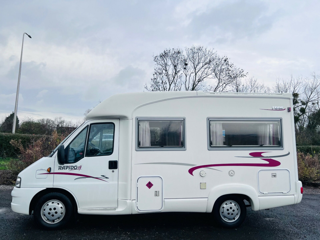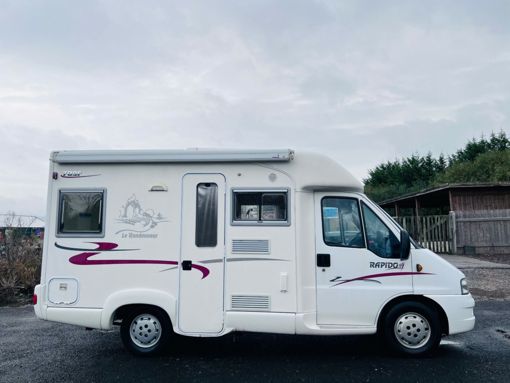 For sale is a 2006 Rapido 7090FF Motorhome with just 50000 miles on the clock. This Diesel vehicle comes with an MOT that expires on 05/02/2026. It has 2 seats and a 2 berth, making it perfect for couples looking to explore the open road. With one owner, this Motorhome has been well-maintained and comes with air conditioning, rear belts, and a fixed double bed for added comfort. Whether you're planning a weekend getaway or a longer road trip, this Rapido Motorhome is ready to take you on your next adventure. Only 5.56 M long. Supplied with a New Mot New habitation check. New Gas safety certificate. Comprehensive warranty. Part exchange welcome. No finance. Located Bs246se. Open everyday ,