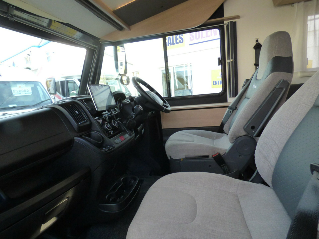 Solent are delighted to offer this lovely one owner Itineo SB700 by Rapido in excellent condition. Based on the Fiat Ducato chassis with 6 speed manual transmission, the layout offers fantastic family friendly accommodation featuring a large lounge area, drop down double bed over the cab and generous bunk beds at the rear. The lounge is laid out with opposing sofas and a large folding table to allow 6 to dine with ease. The kitchen to the side is fitted with a 3 burner gas hob, Dometic gas oven/grill and a Thetford 3 way fridge/freezer. The bathroom opposite has a separate shower cubicle, cassette toilet and wash hand basin. Heating and hot water is by a Truma dual fuel system. Ample cupboard and drawer space is provided throughout and other features for this Itineo SB700 include: 16'' Alloy wheels, Twin Reversing cameras, Alpine Navigation system, pleated cab blinds, external shower point, electric step, Thule wind out awning and solar panel. 4 berth, 4 Seatbelts. L. 6.96m, W. 2.34, H. 2.94, 3,500kg, 12081 miles. arm system, alloy wheels, corner legs, electric step, external gas bbq point, solar panel, thule awning, twin leisure battery option, 16'' Alloys