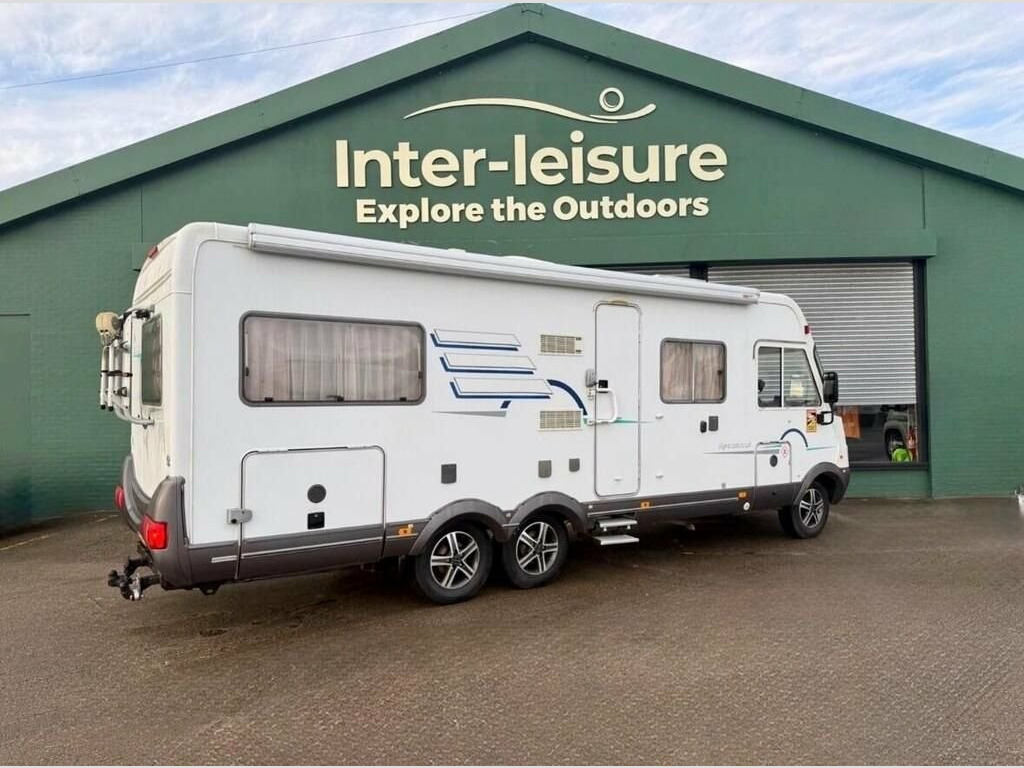 Hymer B574 A high-quality Hymer B754 A-Class motorhome, offering excellent space, comfort, and renowned German build quality. Ideal for families or couples looking for a well-equipped motorhome suitable for UK and European touring. Powered by a reliable 2.8-litre diesel engine with manual transmission, this motorhome drives smoothly and confidently. With 84,000 miles, it represents sensible mileage for its age and type. Key Details Year: 2000 Mileage: 84,000 miles Engine: 2.8L Diesel Transmission: Manual Berths: 6 Body Type: A-Class Colour: White Sleeping & Layout Fixed rear double bed Drop-down double bed Lounge conversion to double Rear travelling seat with seat belt Kitchen & Living Large fridge Hob Mini oven Microwave Heating and hot water Large skylight Air conditioning in both habitation area and cab Additional Features Solar panel Satellite dish Cruise control Bike rack Tow bar Alloy wheels This Hymer B754 offers a fantastic combination of space, comfort, and practicality, making it ideal for weekend breaks or long-distance touring. Clean, well laid out, and ready to use.