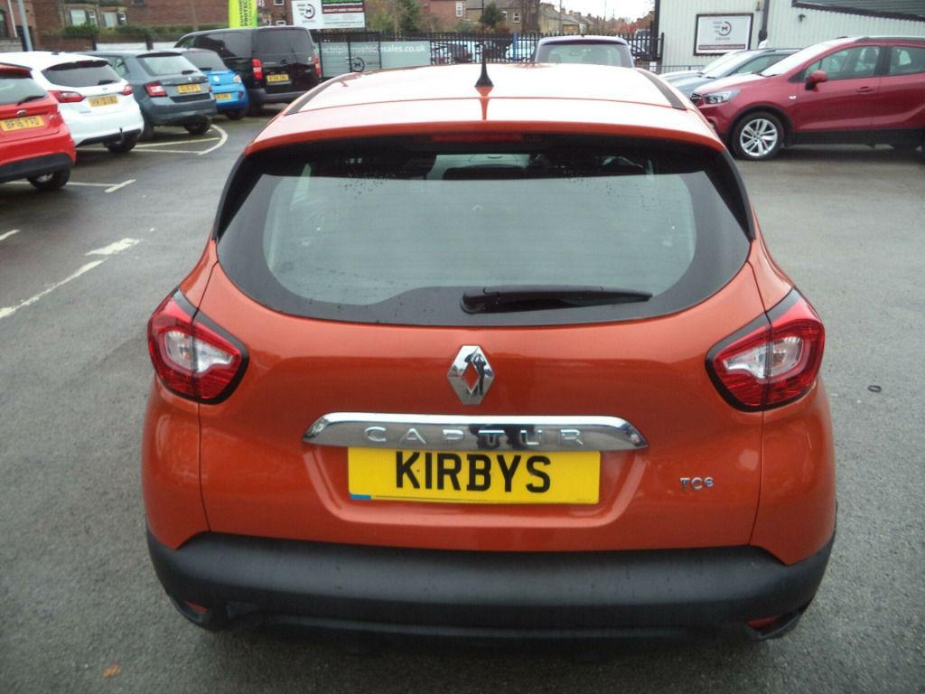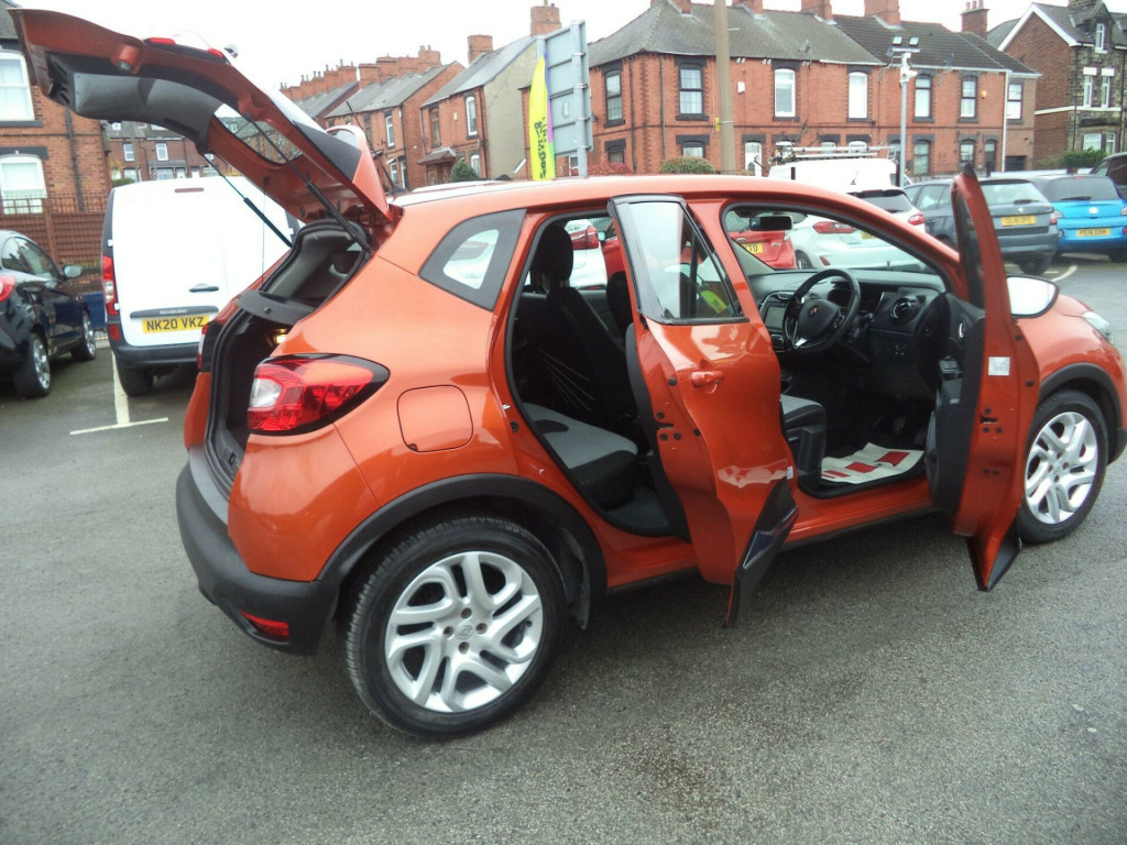 CAR: 17 IS OUR WELL PRESENTED RENAULT CAPTUR, 1 LITRE PETROL, FINISHED IN METALLIC ORANGE WITH CONTRASTING INTERIOR, HAVING BEEN A SUV STYLE CAR WITH 5 DOORS AND A LARGE BOOT COMBINED WITH THE 1 LITRE PETROL ENGINE MAKES THIS A PERFECT CHOICE FOR A FAMILY CAR COMING WITH THE ADDED BENEFIT OF BEEN £35 ROAD TAX A YEAR MAKES THIS NOT ONLY PRACTICAL BUT ALSO AFFORDABLE, CAR COMES COMPLETE WITH SERVICE HISTORY, COMES JAM PACKED WITH FEATURES TO HELP THE CAR DEAL WITH THE DAY TO DAY INCLUDING: 17IN ALLOY WHEELS, AIR CONDITIONING, HANDS FREE PHONE SYSTEM, STEERING WHEEL CONTROLS, BUILT IN SATELLITE NAVIGATION, CRUISE CONTROL WITH SPEED LIMITER, FRONT FOG LIGHTS, HILL START ASSIST, AUTOMATIC WIPERS WITH RAIN SENSORS, 4X ELECTRIC WINDOWS, BOOK PACK, PLUS MUCH MORE, 12 MONTHS MOT ON COMPLETION OF SALE CALL US TODAY ON 01226 750320 TO ARRANGE YOUR VIEWING / TEST DRIVE ALL PAYMENT METHODS WELCOME INCLUDING PART EXCHANGE AND LOW RATE FINANCE, RING OR DROP IN FOR MORE INFORMATION OR A TEST DRIVE, VIEW ALL OUR VEHICLES AT www.kirbysvehiclesales.co.uk ***THE VEHICLE WILL COME WITH A FULL 12 MONTH MOT AND A FULL VIDEO CAN BE PROVIDED OF THE VEHICLE UPON REQUEST DELIVERY ALSO AVAILABLE AT EXTRA COST***. 12V Power Socket, 17in Alloy Wheels - Explore in Silver, 2x Storage Spaces for 2 Cups and Miscellaneous Items near Handbrake, 4x20w Radio with Handsfree Technology and Renault Bass Reflex System, 7in Touch Screen, ABS - Anti Lock Brakes, AUX Input, Air Vent Surrounds - Chrome Gloss, Airbags - Driver, Airbags - Front Lateral, Airbags - Front Passenger, Airbags - Front Passenger Deactivation, Airbags - Side, Airbags - Thorax, Automatic Windscreen Wipers with Rain Sensors, Bluetooth Connectivity, Bumpers - Body Coloured, Centre Console Surrounds - Chrome Gloss, Climate Control with Air Quality Regulator and One Touch Demist Function, Closeable Storage - Dashboard - 1.6L, Cornering Lights, Cruise Control with Speed Limiter, Daytime Running Lights - LED, Deadlocking, Door Handles - Body Coloured - Front, Door Mirrors - Electrically Adjustable - Manual Folding and Heated, Door Mirrors - Gloss Black Housing, Driver Door Armrest - Black Gloss, EBA - Emergency Brake Assist, EBD - Electronic Brake Distribution, ESC - Electronic Stability Control, ETC - Electronic Traction Control, Eco Mode, Electric Windows - Front and Rear, Fingertip Remote Control, Fog Lights - Chrome Surrounds, Front Door Bottle Storage - 1.5 ltr, Front Fog Lights, Front Grille - Chrome Detail, Front Passenger Door Armrest - Black Gloss, Gear Knob - Leather, Glovebox, HSA - Hill Start Assist, Handsfree Keycard with Push Button Start-Stop Function, Headlights - Automatic On, Headrests - Front Height Adjustable, Headrests - Rear x3, Heating System with Pollen Filter, ISOFIX - Child Seat Fixing Points - Rear, Insurance Approved Engine Immobiliser - Thatcham Category 2, Interior Touch Pack - Chrome Gloss, Lightly Tinted Windows, Lower Door Protector - Black Grain, Navteq Nav n Go Satellite Navigation, Painted Roof - Body Colour, Power Assisted Steering, RAID - Renault Anti Intruder Device, Rear Door Storage Compartment - 0.5L, Renault MediaNav Intergrated on Board Multimedia System inc 7in Touch Screen, Safety Lock - Rear Doors, Seatbelt Warning Sound, Seats - 60-40 Split Folding Rear, Seats - Drivers Height Adjustment, Small Storage Area by Gear Stick for Phone-Keys, Speakers Surround - Chrome Gloss, Split-Level Boot Floor, Steering Column - Reach and Rake Adjustable, Steering Wheel - Gloss Panel Inserts, Steering Wheel - Leather, Storage Between Front Seats, Storage Nets on Rear of Front Seats, Tailgate - Chrome Detail, Trip Computer, Tyre Inflation Kit, Tyre Pressure Monitoring System, USB Connection, Washable and Removable Seats, Wheel Arch Covers - Black, Cloth - Dark Charcoal. Part service history