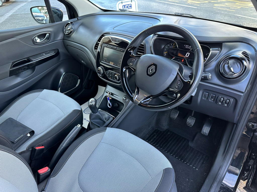 This 2014 Renault Captur is a reliable SUV with 85,233 miles on the clock and full service history , powered by a 0.9 TCe ENERGY petrol engine with manual transmission. It boasts 5 doors, 5 seats, and is ULEZ compliant, making it suitable for city driving. With MOT valid until 16/03/2026, this vehicle offers peace of mind. Equipped with modern features such as a 7in Touch Screen, Bluetooth Connectivity, and Renault Bass Reflex System, it ensures a comfortable and connected drive. Finished in a sleek design, this SUV is perfect for families or individuals looking for a spacious and efficient vehicle., v power socket, 4x20w radio with handsfree technology and renault bass reflex system, 7in touch screen, aux input, bluetooth connectivity, navteq nav n go satellite navigation, renault medianav intergrated on board multimedia system inc 7in touch screen, usb connection, 17in alloy wheels - explore in silver, bumpers - body coloured, door handles - body coloured - front, door mirrors - electrically adjustable - manual folding and heated, door mirrors - gloss black housing, electric windows - front and rear, fog lights - chrome surrounds, front grille - chrome detail, lightly tinted windows, lower door protector - black grain, painted roof - body colour, tailgate - chrome detail, tyre inflation kit, wheel arch covers - black, 2x storage spaces for 2 cups and miscellaneous items near handbrake, air vent surrounds - chrome gloss, automatic windscreen wipers with rain sensors, centre console surrounds - chrome gloss, climate control with air quality regulator and one touch demist function, closeable storage - dashboard - 1.6l, driver door armrest - black gloss, fingertip remote control, front door bottle storage - 1.5 ltr, front passenger door armrest - black gloss, gear knob - leather, glovebox, headrests - front height adjustable, headrests - rear x3, heating system with pollen filter, interior touch pack - chrome gloss, rear door storage compartment - 0.5l, seats - 60-40 split folding rear, seats - drivers height adjustment, small storage area by gear stick for phone-keys, speakers surround - chrome gloss, split-level boot floor, steering column - reach and rake adjustable, steering wheel - gloss panel inserts, steering wheel - leather, storage between front seats, storage nets on rear of front seats, washable and removable seats, abs - anti lock brakes, airbags - driver, airbags - front lateral, airbags - front passenger, airbags - front passenger deactivation, airbags - side, airbags - thorax, deadlocking, eba - emergency brake assist, ebd - electronic brake distribution, esc - electronic stability control, etc - electronic traction control, hsa - hill start assist, handsfree keycard with push button start-stop function, isofix - child seat fixing points - rear, insurance approved engine immobiliser - thatcham category 2, raid - renault anti intruder device, safety lock - rear doors, seatbelt warning sound, cornering lights, daytime running lights - led, front fog lights, headlights - automatic on, cruise control with speed limiter, eco mode, power assisted steering, trip computer, tyre pressure monitoring system
