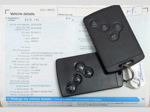 This 2018 Renault Captur TCe ENERGY Dynamique S Nav boasts a full service history, ensuring its excellent provenance, and benefits from an MOT valid until January 2027. This stylish compact SUV is equipped with a responsive 0.9L petrol engine, meeting Euro 6 emissions standards. Inside, you'll find a wealth of features designed for comfort and convenience, including full LED headlights, automatic climate control with a one touch demist function, and a handsfree keycard with push button start and stop. Parking is made easier with rear parking sensors, and the MediaNav multimedia system with Bluetooth connectivity keeps you entertained and connected on the go.The Renault Captur TCe ENERGY Dynamique S Nav offers several advantages that set it apart. Its impressive fuel economy of 55 mpg means fewer trips to the petrol station, while its low CO2 emissions contribute to a more environmentally friendly drive. Furthermore, its low insurance group rating indicates that running costs are kept to a minimum, making this a sensible and economical choice for everyday use.This above average car is in wonderful condition, having obviously been cherished by the last owner. It has the benefit of a full service history to give the maximum reliability. View All Our Stock At; www.eurocarscastleford.com All figures quoted are the manufacturers figures. Errors and omissions are expected, this description and specification are AI generated and may be wrong, customers should ensure the actual car specification meets their requirements before purchase as mistakes cannot be rectified after purchase.. 12V Power Socket, 17in Alloy Wheels - Explore - Black Inserts, ABS with EBA - Emergency Brake Assist, Airbags - Front Passenger Deactivation, Armrest - Front Centre, Automatic Climate Control with One Touch Demist Function, Automatic Folding Door Mirrors, Automatic Headlights and Rain Sensitive Front Wipers, Chrome Exterior Touch Pack, Cruise Control with Speed Limiter, Dark Harmony - Dashboard and Side Panels, Deadlocking, Door Handles - Body Coloured - Front, Door Mirrors - Roof Coloured Housings, Driver and Passenger Front - Side Airbags, Driver and Passenger Lateral Head-Thorax Airbag, EBD - Electronic Brake Distribution, ECO Mode Function, ESC - Electronic Stability Control with Understeer Control, Electric Windows - Front and Rear, Extra Tinted Windows - Rear and Tailgate, Front Door Storage Compartment, Front and Rear Daytime Running Lights - LED, Front and Rear Seat Belt Undone Warning Audible Alert, HSA - Hill Start Assist, Handsfree Keycard with Push Button Start-Stop Function, Headlights - Full LED, Headrests - Rear x3, Heating System with Pollen Filter, ISOFIX Child Seat Fixing Points on Front Passenger and Rear Outermost Seats, Interior Touch Pack - Chrome, LED Front Fog Lights with Cornering Lights, LED Tail Lights with 3D Effect, Leather Handbrake and Gearshift Knob, MediaNav Multimedia System, New Generation Height Adjustable SRP Front Headrests, Parking Sensors - Rear, RAID - Renault Anti Intruder Device - Automatic Door Locking, Rear Door Storage Compartment, Remote Central Locking with Thatcham Approved Immobiliser - Thatcham Cat 2, Reversible Boot Floor, Safety Lock - Rear Doors, Seats - 60-40 Split Folding Rear, Seats - Drivers Height Adjustment, Skid Plates - Front and Rear - Grey, Split-Level Boot Floor, Steering Wheel - Height and Reach Adjustable, Steering Wheel - Leather, Storage - Front Glovebox, Storage Between Front Seats, Storage Nets on Rear of Front Seats, Storage Space near Handbrake, Storage on Top of Dashboard, Trip Computer, Tyre Inflation Kit, Tyre Pressure Warning Light, USB Socket and Jack, Variable Power Assisted Steering - Electrical, Painted Roof - Diamond Black. Full service history