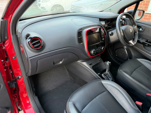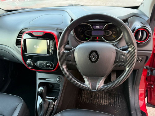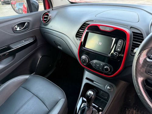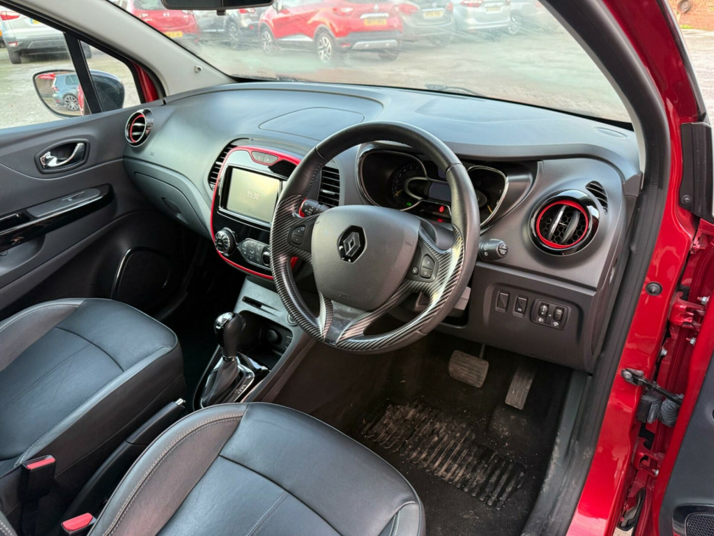 STUNNING CAPTUR AUTOMATIC. 2 KEYS. 12 MONTHS MOT AND FULL SERVICE HISTORY. NEED FINANCE? PLEASE GIVE US A CALL OR VISIT OUR WEBSITE TO QUOTE OR APPLY DIRECT . VIEWING ESSENTIAL. Discover this 2015 Renault Captur TCe ENERGY Signature Nav, a remarkably well preserved example with an exceptionally low mileage of just 45893 miles for its age. This Euro 6 compliant model boasts a 1.2L petrol engine and comes equipped with the desirable Signature Nav trim. Convenience is key with the Handsfree Keycard offering push button start and keyless entry, complemented by rear parking sensors and a rear parking camera for effortless manoeuvring. The Techno Pack further enhances your driving experience, including Bluetooth connectivity.This Renault Captur stands out with its impressive fuel economy, achieving up to 50 mpg, and its low CO2 emissions, making it an economical choice. Its low insurance group rating also contributes to lower running costs, indicating it is a more affordable option compared to similar vehicles. Additionally, the front seats are heated, providing extra comfort during colder journeys., v power socket, 17in alloy wheels - explore black, abs with eba - emergency brake assist, airbags - front passenger deactivation, automatic headlights and rain sensitive front wipers, body coloured parking sensors - rear, bumpers - body coloured, chrome exterior gloss pack, climate control with air quality regulator and one touch demist function, closeable storage - dashboard - 1.6l, cruise control with speed limiter, daytime running lights - led, deadlocking, door armrest - black gloss, door handles - body coloured - front, door mirrors - electrically operated - heated - folding, door mirrors - roof coloured housings, door sill plates - captur, driver lateral head-thorax airbag, driver and passenger front - side airbags, ebd - electronic brake distribution, esc - electronic stability control, eco mode, electric windows - front with anti pinch and one touch control, electric windows - rear, electrochromatic rear view mirror, extra tinted windows - rear and tailgate, fog lights with cornering function, front door storage compartment - 1.5 ltr, front and rear seat belt undone warning audible alert, grip xtend advanced traction control, hsa - hill start assist, handsfree keycard with push button start-stop function, headlights - chrome surround, headrests - front height adjustable - srp - system for restraint and protection, headrests - rear x3, heating system with pollen filter, isofix child seat fixing points on front passenger and rear outermost seats, interior touch pack - red gloss, leather steering wheel and gear knob, lower door protector - black grain, painted front and rear lower bumpers, painted roof - diamond black, pedals - aluminium, raid - renault anti intruder device, rear door storage compartment - 0.5l, rear parking camera, rear wiper, remote central locking with thatcham approved immobiliser - thatcham cat 2, removable storage between drivers and passenger seat, renault diamond logo on front face - rear face - wheels, reversible boot floor, safety lock - rear doors, seats - 60-40 split folding rear, seats - drivers height adjustment, seats - front heated, seats - shell-shaped, skid plates - front and rear, small storage area by gear stick for phone-keys, space saver spare wheel, split-level boot floor, steering wheel - height and reach adjustable, storage - front glovebox, storage between front seats, storage nets on rear of front seats, storage space for 1 cup and miscellaneous items near handbrake, sunglasses holder, techno pack, trip computer, tyre pressure warning light, variable power assisted steering - electrical, windscreen wipers - variable speed