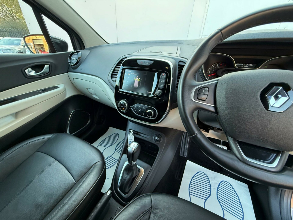 This 2019 Renault Captur TCe ENERGY GT Line offers a refined driving experience with its Euro 6 compliant 1.3L petrol engine. As a GT Line model, it comes equipped with the desirable Techno Pack, enhancing your connectivity and convenience with Android Auto, Bluetooth, and comprehensive parking assistance including front and rear sensors, and a rear camera. Further adding to its practicality are hands free access with a key card and start button, alongside a hands free parking system that includes side sensors and blind spot warning for added safety. The vehicle also boasts full LED headlamps for superior visibility.12 MONTHS WARRANTY £299The Renault Captur TCe ENERGY GT Line is designed to impress, with its low CO2 emissions making it an environmentally conscious choice. Its performance is equally noteworthy, achieving 0-62mph in a brisk 9.5 seconds, demonstrating a responsive and engaging drive. These highlights indicate that this Captur offers a superior combination of efficiency, technology, and performance when compared to other vehicles in its class.. 12V Power Socket, 17in Alloy Wheels - Emotion - Black Inserts, 3x - Rear Headrests, ABS with EBA - Emergency Brake Assist, Airbag - De-Activation for Front Passenger, Armrest - Front Centre, Automatic Climate Control with One Touch Demist Function, Automatic Folding Door Mirrors, Automatic Headlights and Rain Sensitive Front Wipers, Chrome Exterior Touch Pack, Closable Storage on Top of Dashboard, Cruise Control with Speed Limiter, Deadlocking, Door Handles - Body Coloured - Front, Driver and Passenger Front - Side Airbags, Driver and Passenger Lateral Head-Thorax Airbag, EBD - Electronic Brake Distribution, ECO Mode Function, ESC - Electronic Stability Control, Electric Windows - Front and Rear, European Mapping, Extra Tinted Windows - Rear and Tailgate, Flank Protection, Front Door Storage Compartment, Front and Rear Daytime Running Lights - LED, Front and Rear Seatbelt Unfastened Warning Sound, Full LED Headlamps, HSA - Hill Start Assist, Hands Free Access with Key Card and Start Button, Hands Free Parking with Side Sensors and Blind Spot Warning, Heated Front Seats, Heating System with Pollen Filter, ISOFIX Child Seat Fixing Points on Front Passenger and Rear Outermost Seats, Interior Touch Pack - Chrome, LED Front Fog Lights with Cornering Lights, Light Harmony - Dashboard and Side Panels, Lightly Tinted Windows, New Generation Height Adjustable SRP Front Headrests, Parking Sensors - Front, Premium Pack, RAID - Renault Anti Intruder Device - Automatic Door Locking, Rear Door Storage Compartment, Rear seats - 40-60 Split Folding Rear Bench, Remote Central Locking with Thatcham Approved Immobiliser - Thatcham Cat 2, Reverse Parking Camera - Includes Rear Parking Sensors, Reversible Boot Floor, Safety Lock - Rear Doors, Seats - Drivers Height Adjustment, Skid Plates - Front and Rear - Grey, Split-Level Boot Floor, Steering Wheel - Height and Reach Adjustable, Steering Wheel - Leather, Storage - Front Glovebox, Storage Between Front Seats, Storage Nets on Rear of Front Seats, Storage Space near Handbrake, Techno Pack, Trip Computer, Tyre Inflation Kit, Tyre Pressure Warning Light, USB Socket and Jack, Variable Power Assisted Steering - Electrical. Full service history
