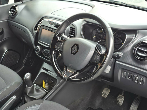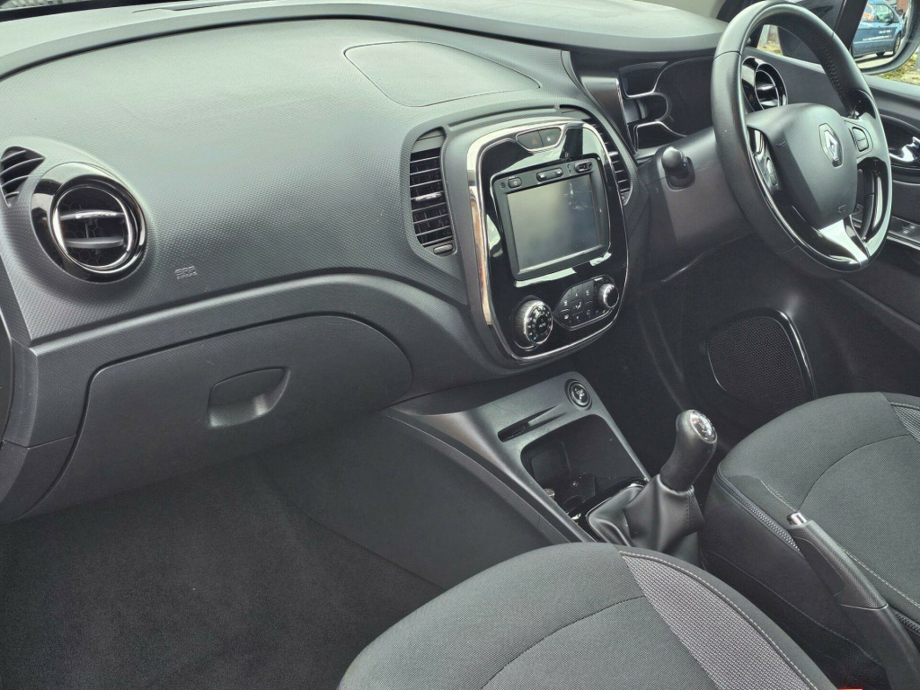 THIS GOOD CONDITION VERSATILE 'DYNAMIQUE MEDIANAV' SPEC RENAULT CAPTUR IS PRESENTED IN METALLIC BLACK WITH THE WITH EXTERIOR GLOSS PACK IN DIAMOND BLACK INCLUDING GLOSS BLACK ROOF AND DOOR PILLARS COMPLEMENTED BY 17 INCH 'EXPLORE' SILVER & BLACK ALLOY WHEELS. THE REFINED AND RELIABLE 1.5 DCI ENGINE IS CONNECTED TO A MANUAL GEARBOX MAKING THIS CAR IDEAL FOR COMFORTABLE TOWN OR MOTORWAY DRIVING. INSIDE, THE COMFORTABLE SEATS ARE UPHOLSTERED IN CONTRASTING DARK & LIGHT GREY WITH GLOSS BLACK AND SILVER HIGHLIGHTS TO THE DASHBOARD AND REST OF THE CABIN. EQUIPMENT INCLUDES A 7 INCH COLOUR TOUCH SCREEN GIVING ACCESS TO THE NAVTEQ SAT-NAV, THE MEDIANAV MULTIMEDIA SYSTEM WITH 4 X 20 RADIO WITH BLUETOOTH STREAMING, RENAULT REFLEX BASS SYSTEM & BLUETOOTH TELEPHONE AND VEHICLE SETTINGS. THERE IS ALSO CLIMATE CONTROL, CRUISE CONTROL WITH SPEED LIMITER, AUTOMATIC HEADLIGHTS, TYRE PRESSURE MONITORING SYSTEM, TINTED PRIVACY GLASS, LEATHER-TRIMMED STEERING WHEEL AND MORE YET TO BE DISCOVERED. WE HAVE FULLY INSPECTED AND SERVICED THIS CAR, SO THE ONLY ISSUE FOR ITS NEW OWNER WILL BE WHERE THE NEXT TRIP SHOULD BE. PLEASE CALL 0161 761 3452 (OPTION 2) TO ARRANGE A VIEWING, TO RESERVE THE CAR OR FOR MORE INFORMATION. WHILST EVERY EFFORT HAS BEEN MADE TO ENSURE THAT THE STATED SPECIFICATION IS ACCURATE, PLEASE CHECK WITH A MEMBER OF THE SALES TEAM IF A PARTICULAR SPECIFICATION/FEATURE IS IMPORTANT TO YOU.. 12V Power Socket, 17in Alloy Wheels - Explore in Silver, 2x Storage Spaces for 2 Cups and Miscellaneous Items near Handbrake, 4x20w Radio with Handsfree Technology and Renault Bass Reflex System, 7in Touch Screen, ABS - Anti Lock Brakes, AUX Input, Air Vent Surrounds - Chrome Gloss, Airbags - Driver, Airbags - Front Lateral, Airbags - Front Passenger, Airbags - Front Passenger Deactivation, Airbags - Side, Airbags - Thorax, Automatic Windscreen Wipers with Rain Sensors, Bluetooth Connectivity, Bumpers - Body Coloured, Centre Console Surrounds - Chrome Gloss, Climate Control with Air Quality Regulator and One Touch Demist Function, Closeable Storage - Dashboard - 1.6L, Cornering Lights, Cruise Control with Speed Limiter, Daytime Running Lights - LED, Deadlocking, Door Handles - Body Coloured - Front, Door Mirrors - Electrically Adjustable - Manual Folding and Heated, Door Mirrors - Gloss Black Housing, Driver Door Armrest - Black Gloss, EBA - Emergency Brake Assist, EBD - Electronic Brake Distribution, ESC - Electronic Stability Control, ETC - Electronic Traction Control, Eco Mode, Electric Windows - Front and Rear, Fingertip Remote Control, Fog Lights - Chrome Surrounds, Front Door Bottle Storage - 1.5 ltr, Front Fog Lights, Front Grille - Chrome Detail, Front Passenger Door Armrest - Black Gloss, Gear Knob - Leather, Glovebox, HSA - Hill Start Assist, Handsfree Keycard with Push Button Start-Stop Function, Headlights - Automatic On, Headrests - Front Height Adjustable, Headrests - Rear x3, Heating System with Pollen Filter, ISOFIX - Child Seat Fixing Points - Rear, Insurance Approved Engine Immobiliser - Thatcham Category 2, Interior Touch Pack - Chrome Gloss, Lightly Tinted Windows, Lower Door Protector - Black Grain, Navteq Nav n Go Satellite Navigation, Painted Roof - Body Colour, Power Assisted Steering, RAID - Renault Anti Intruder Device, Rear Door Storage Compartment - 0.5L, Renault MediaNav Intergrated on Board Multimedia System inc 7in Touch Screen, Safety Lock - Rear Doors, Seatbelt Warning Sound, Seats - 60-40 Split Folding Rear, Seats - Drivers Height Adjustment, Small Storage Area by Gear Stick for Phone-Keys, Speakers Surround - Chrome Gloss, Split-Level Boot Floor, Steering Column - Reach and Rake Adjustable, Steering Wheel - Gloss Panel Inserts, Steering Wheel - Leather, Storage Between Front Seats, Storage Nets on Rear of Front Seats, Tailgate - Chrome Detail, Trip Computer, Tyre Inflation Kit, Tyre Pressure Monitoring System, USB Connection, Washable and Removable Seats, Wheel Arch Covers - Black, R-Link Multimedia System, Western European Mapping, Colour Pack - Arizona, Cloth - Dark Charcoal.