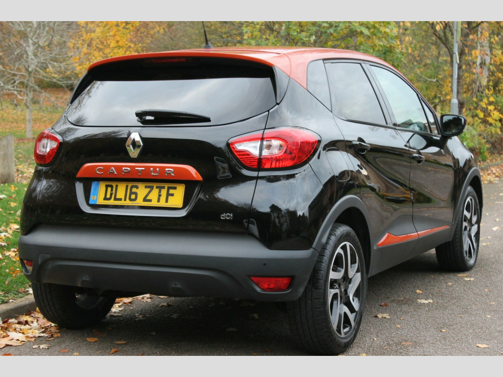 SPECIFICATION HIGHLIGHTS INCLUDE; 17''ALLOY WHEELS, PRIVACY GLASS, ARIZONA COPPER ROOF AND STYLING FEATURES, NAVIGATION, DAB, BLUETOOTH STREAMING WITH TELEPHONE, CRUISE CONTROL AND PARKING SENSORS. ONLY 1 OWNER FROM NEW, MAIN DEALER AND INDEPENDENT SERVICE HISTORY (4 SERVICE STAMPS, THE MOT EXPIRES JUNE 2026 WITH NO ADVISES. WE HAVE 2 KEYS AND A COMPLETE INSTRUCTION BOOK PACK. This Renault Captur dCi ENERGY Dynamique S Nav from 2016 boasts a single owner and remarkably low mileage for its age, having covered just 61,000 miles. It features a 1.5L Diesel Engine compliant with Euro 6 emissions standards and comes with a 3 month warranty for your peace of mind. The MOT is valid until June 2026, and while the service history is partial, the last service was completed on 6th November 2025 at 61,882 miles. Inside, you'll find comfortable Cloth seats with an Arizona Panel, complemented by a striking Colour Pack in Arizona. The Dynamique S Nav trim includes a MediaNav Multimedia System with Bluetooth connectivity, Climate Control with an Air Quality Regulator and One Touch Demist Function, and rear parking sensors for added convenience. This Captur offers excellent value, highlighted by its impressive fuel economy of 79 mpg, which is significantly better than many similar vehicles. Its low CO2 emissions and low insurance group also contribute to lower running costs, making it an economical choice for everyday driving. This combination of efficiency, features, and careful ownership makes this Renault Captur a compelling option. 3 months warranty, Next MOT due 24/06/2026, Last serviced on 06/11/2025 at 61,882 miles, Part service history, 5 seats, Black, 1 owner, Upgrades - Painted Roof - Arizona, Arizona Exterior Gloss Pack - Arizona Detailing, Colour Pack - Arizona, Cloth - Dark Charcoal with Arizona Panel, Standard Features - 12V Power Socket, 17in Alloy Wheels - Explore Black, ABS with EBA - Emergency Brake Assist, Airbags - Front Passenger Deactivation, Automatic Headlights and Rain Sensitive Front Wipers, Body Coloured Parking Sensors - Rear, Bumpers - Body Coloured, Chrome Exterior Gloss Pack, Climate Control with Air Quality Regulator and One Touch Demist Function, Closeable Storage - Dashboard - 1.6L, Colour Pack - Miami, Cruise Control with Speed Limiter, Daytime Running Lights - LED, Deadlocking, Diamond Black Exterior Gloss Pack - Black Detailing, Door Armrest - Black Gloss, Door Handles - Body Coloured - Front, Door Mirrors - Electrically Operated - Heated - Folding, Door Mirrors - Roof Coloured Housings, Driver Lateral Head-Thorax Airbag, Driver and Passenger Front - Side Airbags, EBD - Electronic Brake Distribution, ESC - Electronic Stability Control, Eco Mode, Electric Windows - Front with Anti Pinch and One Touch Control, Electric Windows - Rear, Extra Tinted Windows - Rear and Tailgate, Fog Lights with Cornering Function.