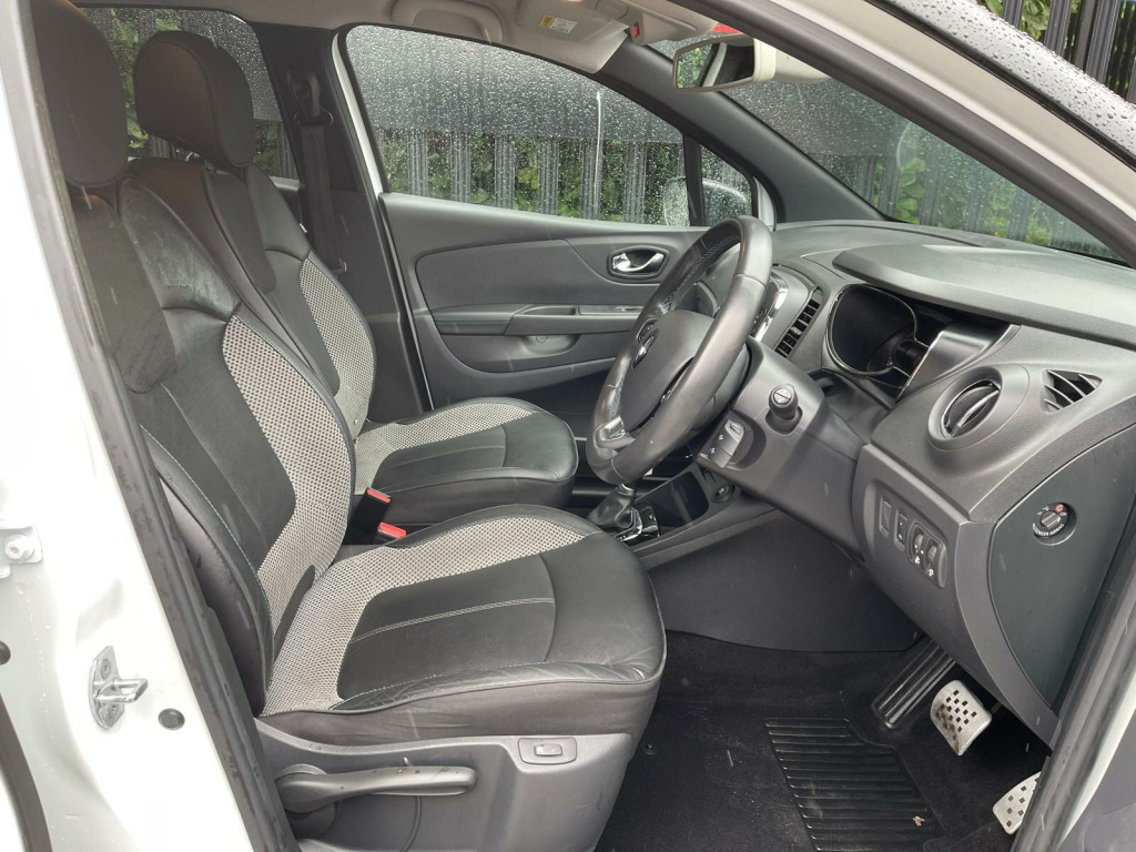 FINANCE & PART EXCHANGE AVAILABLE* - Only 1 registered keeper & 55,786 miles from new, SERVICE HISTORY, 2 KEYS - this SUPER RENAULT 1.5DCI CAPTUR ICONIC NAV AUTOMATIC 5 DOOR HATCHBACK is finished in stunning sports Arctic white with Diamond Black roof & is complimented with contrasting 1/2 black leather sports trim and extends itself to the following additional features - on board satellite navigation system, reverse camera, climate control / automatic air conditioning, trip computer, cruise control with speed limiter, leather trimmed multi function steering wheel, rear park distance control, driver & passenger heated front seats, Bluetooth telephone prep, media input, keyless start, privacy glass, terrain mode select, eco mode, electric adjustable & folding exterior mirrors, auto headlights, rain sensor, power assisted steering, abs, airbags, electric mirrors, electric windows, remote central locking, head restraints, Renault 17'' sports alloy wheels, Renault anti theft system. ***FINANCE AVAILABLE - subject to status. T&C's apply.***PART EXCHANGE AVAILABLE***ALL VEHICLES ARE HPI & NATIONAL MILEAGE REGISTER CHECKED***THE AA WARRANTY IS SUBJECT TO TERMS & CONDITIONS AND DOES NOT COVER VEHICLES THAT ARE BEING USED FOR TAXI, PRIVATE HIRE, CHAUFFEURING PURPOSES OR FOR REWARD.***Please note, that the specifications/components/features etc. are generic to that vehicle of the type advertised but may not be included in the specific vehicle that is for sale. It is for the intended purchaser to satisfy themselves of the presence or absence of any specifications/components/features before sale. Please ask if you are uncertain of anything and we will see if we can assist.. 12V Power Socket, 17in Alloy Wheels - Explore Black with Blue Logo Cap, ABS with EBA - Emergency Brake Assist, Airbags - Front Passenger Deactivation, Automatic Headlights and Rain Sensitive Front Wipers, Body Coloured Parking Sensors - Rear, Bumpers - Body Coloured, Chrome Exterior Gloss Pack, Climate Control with Air Quality Regulator and One Touch Demist Function, Closeable Storage - Dashboard - 1.6L, Cruise Control with Speed Limiter, Daytime Running Lights - LED, Deadlocking, Door Armrest - Black Gloss, Door Handles - Body Coloured - Front, Door Mirrors - Electrically Operated - Heated - Folding, Door Mirrors - Roof Coloured Housings, Driver Lateral Head-Thorax Airbag, Driver and Passenger Front - Side Airbags, EBD - Electronic Brake Distribution, ESC - Electronic Stability Control, Eco Mode, Electric Windows - Front with Anti Pinch and One Touch Control, Electric Windows - Rear, Electrochromatic Rear View Mirror, Extra Tinted Windows - Rear and Tailgate, Fog Lights with Cornering Function, Front Door Storage Compartment - 1.5 ltr, Front and Rear Seat Belt Undone Warning Audible Alert, HSA - Hill Start Assist, Handsfree Keycard with Push Button Start-Stop Function, Headlights - Chrome Surround, Headrests - Front Height Adjustable - SRP - System for Restraint and Protection, Headrests - Rear x3, Heating System with Pollen Filter, ISOFIX Child Seat Fixing Points on Front Passenger and Rear Outermost Seats, Interior Touch Pack - Cappuccino Brown, Leather Steering Wheel and Gear Knob, Lower Door Protector - Black Grain, Pedals - Aluminium, RAID - Renault Anti Intruder Device, Rear Door Storage Compartment - 0.5L, Rear Parking Camera, Rear Wiper, Remote Central Locking with Thatcham Approved Immobiliser - Thatcham Cat 2, Removable Storage between Drivers and Passenger Seat, Renault Diamond Logo on Front Face - Rear Face - Wheels, Renault Door Sill Plate, Reversible Boot Floor, Safety Lock - Rear Doors, Seats - 60-40 Split Folding Rear, Seats - Drivers Height Adjustment, Seats - Front Heated, Seats - Shell-Shaped, Small Storage Area by Gear Stick for Phone-Keys, Split-Level Boot Floor, Steering Wheel - Height and Reach Adjustable, Storage - Front Glovebox, Storage Between Front Seats, Storage Nets on Rear of Front Seats, Storage Space for 1 Cup and Miscellaneous Items near Handbrake, Sunglasses Holder, Techno Pack, Traction Control, Trip Computer, Tyre Inflation Kit, Tyre Pressure Warning Light, Variable Power Assisted Steering - Electrical, Windscreen Wipers - Variable Speed, Space Saver Spare Wheel, Interior Touch Pack - Chrome Gloss.