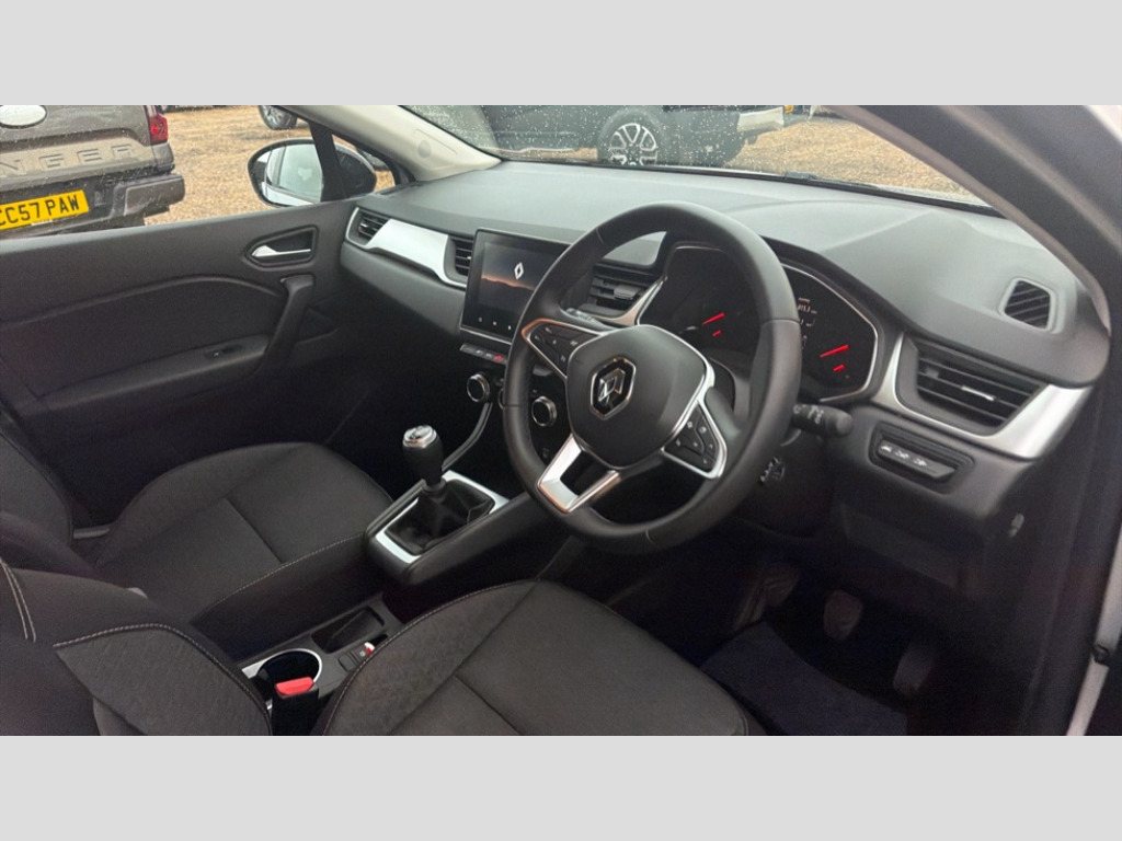 Renault Captur 1.0 TCE 90 Iconic 5dr 4.2" TFT Driver information display, Cruise control + speed limiter, eCall emergency call system, Eco mode, Gear change indicator, Lane departure warning system, Lane keep assist, Rear parking sensor, Traffic sign recognition with over speed prevention, Trip computer, Variable assistance power steering, EasyLink 7" touchscreen with navigation, bluetooth, DAB radio,USB ports,compatible with Apple carplay/Android auto, EasyLink multimedia system, scheduled charging, heating and air conditioning, Automatic front wipers with rain sensors, Automatic headlights, Automatic high/low beam, Black side door protection, Body colour door handles, Body coloured bumpers, Body coloured door mirrors, C Shaped LED front and rear lighting signatures with 3D effect on the rear lights, Drivers one touch window with anti-pinch feature, Electric rear windows, Extra tinted glass in rear windows and tailgate, Full LED headlights, Grey front and rear skid plate, LED daytime running lights, LED front fog lights, LED high level brake lights, LED rear fog light, Rear side wing doors, Rear wing door, Rear wiper, Variable speed on front windscreen wipers, 12V Accessory socket, 3 rear headrests, 60/40 split and fixed base rear seat bench, Automatic climate control with one touch demist function, Centre console storage tray, Cloth upholstery, Front head restraints, Glovebox, Heating system with pollen filter, Height adjustable driver's seat, Height/reach adjust steering wheel, ISOFIX child seat fixing points on rear outermost seats, Middle console with armrest and storage, Rear air vents, Single front passenger seat, Sliding rear bench, Standard bulb in front roof lights, Synthetic leather steering wheel, 3 rear seatbelts, ABS+EBA, AEBS, Distance warning alert, Driver and front passenger, side, head and curtain airbags, Driver height adjustable seat belt, Electric parking brake, Electronic stability control, Front and rear no seatbelt warning sound, Front dash warning indicator in case of heavy braking, Front driver and passenger side airbag deactivation, Hill start assist, Rear door and window child locking function for rear door, Tyre pressure warning light, Anti drill door locks and locking fuel cap, Central door locking, Deadlocking system, Hands free keycard with push button and start/stop function, RAID (Renault Anti-Intruder Device) automatic door locking, Black soft touch dashboard, 17" Bahamas alloy wheels