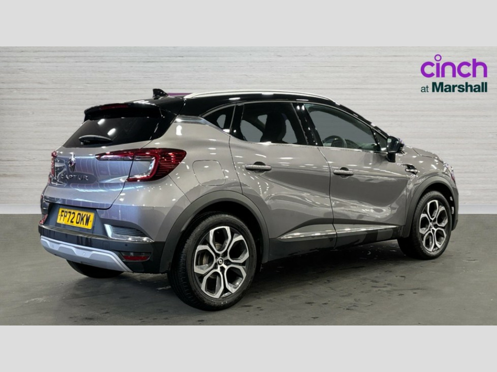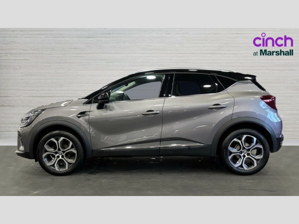 Renault Captur 1.0 TCE 90 Techno 5dr 7" TFT Driver information display, Cruise control + speed limiter, EasyLink 7" touchscreen with navigation, google search and traffic information, Eco mode, Front and rear parking sensors with rear view camera, Gear change indicator, Lane departure warning system, Lane keep assist, Multisense with 3 driving modes + 8 ambient lighting colours, Renault automatic emergency assist, Smartphone integration compatible with Apple CarPlay and Android Auto, Traffic sign recognition with over speed prevention, Trip computer, Variable assistance power steering, Wireless phone charger, DAB Radio with Bluetooth and USB, 2 reverse gear LED lamps and 1 rear LED fog lamp in the bumper, Auto dimming rear view mirror, Automatic front wipers with rain sensors, Automatic headlights, Automatic high/low beam, Black side door protection with chrome effect, Body colour door handles, Body coloured bumpers, Body coloured door mirrors, C Shaped LED front and rear lighting signatures with 3D effect on the rear lights, Chrome around front air deflectors, on front wing deco element and window lining, Day time running light, Drivers one touch window with anti-pinch feature, Extra tinted glass in rear windows and tailgate, Front and rear electric windows, Front grille with chrome upper trim, Full LED headlights, Grey front and rear skid plate, LED front fog lights, LED high level brake lights, LED turn indicators on door mirrors, Longitudinal roof bars, Rear side wing doors, Rear wiper, Shark fin antenna, 12V Accessory socket, 3 rear headrests, 60/40 split and fixed base rear seat bench, Automatic climate control with one touch demist function and air quality regulator, Centre console storage tray, Front head restraints, Glovebox, Heating system with pollen filter, Height adjustable driver's seat, Height adjustable passenger seat, Height/reach adjust steering wheel, ISOFIX child seat fixing points on rear outermost seats, LED front roof lights, Middle console with armrest and storage, Modular boot floor, Rear air vents, Single front passenger seat, Sliding rear bench, Synthetic leather steering wheel, Synthetic leather/cloth upholstery, 3 rear seatbelts, ABS+EBA, Distance warning alert, Driver and front passenger, side, head and curtain airbags, Driver height adjustable seat belt, Electric parking brake with auto hold function, Electronic stability control, Front and rear no seatbelt warning sound, Front dash warning indicator in case of heavy braking, Front driver and passenger side airbag deactivation, Hill start assist, Rear door and window child locking function for rear door, Tyre pressure warning light, Anti drill door locks and locking fuel cap, Central door locking, Deadlocking system, Hands free keycard with push button and start/stop function, RAID (Renault Anti-Intruder Device) automatic door locking, Black soft touch dashboard, 18" Pasadena diamond cut alloy wheels with grey inserts