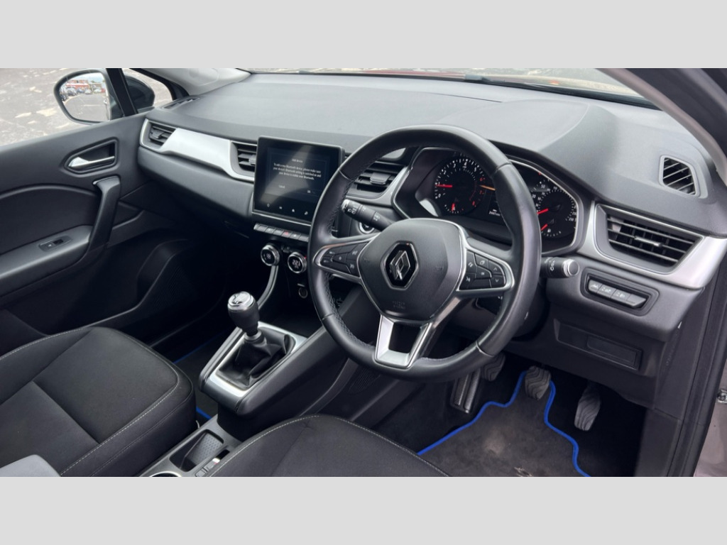 Renault Captur 1.3 TCE 130 Iconic 5dr 4.2" TFT Driver information display, Cruise control + speed limiter, eCall emergency call system, Eco mode, Gear change indicator, Lane departure warning system, Lane keep assist, Renault automatic emergency assist, Traffic sign recognition, Trip computer, Variable assistance power steering, EasyLink Nav 7" touchscreen, 4x20W amp, FM DAB, sound auditorium, 2xUSB, 1xJack, Bluetooth, smartphone integration plus, Apple carplay/Android auto, Automatic front wipers with rain sensors, Automatic headlights, Body colour door handles, Body coloured bumpers, Body coloured door mirrors, Electric adjustable/heated/folding door mirrors, Electric front windows + one touch + anti-pinch, Electric rear windows, Extra tinted glass in rear windows and tailgate, Full LED front and rear headlamps integrating daytime running lights at the front and rear, Gloss black side door protection with chrome effect, LED front fog lights, Rear fog lights, Rear wiper, Roof bars, Variable speed on front windscreen wipers, 12V Accessory socket, 3 rear headrests, 5.2L front glovebox, 60/40 split folding rear seat bench, Automatic climate control with one touch demist function, Centre console storage tray, Cloth upholstery, Front head restraints, Heating system with pollen filter, Height adjustable driver's seat, Height/reach adjust steering wheel, ISOFIX child seat fixing points on rear outermost seats, Middle console with armrest and storage, Rear air vents, Synthetic leather steering wheel, 3 rear seatbelts, ABS+EBA, AEBS, Distance warning alert, Driver and front passenger, side, head and curtain airbags, Driver height adjustable seat belt, Electric parking brake, Electronic stability control, Front and rear no seatbelt warning sound, Front dash warning indicator in case of heavy braking, Front driver and passenger side airbag deactivation, Hill start assist, Rear door and window child locking function for rear door, Tyre pressure warning light, Anti drill door locks and locking fuel cap, Deadlocking system, Hands free keycard with push button and start/stop function, RAID (Renault Anti-Intruder Device) automatic door locking, Remote central locking with thatcham approved immobiliser, Black soft touch dashboard with black gloss air vent surrounds