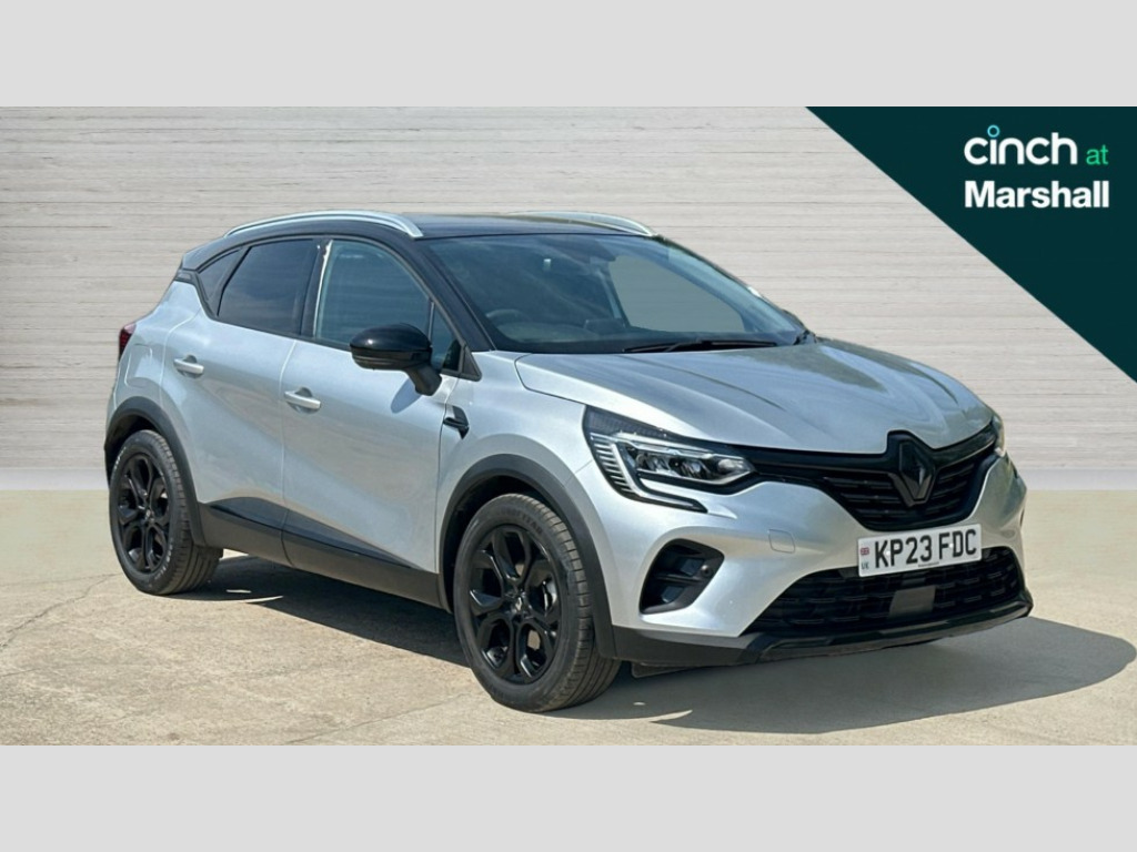 Renault Captur 1.6 E-Tech full hybrid 145 Rive Gauche 5dr Auto 7" TFT Driver information display, Cruise control + speed limiter, EasyLink 9.3" portrait touchscreen with navigation, google search and traffic information, Eco mode, EV button to activate pure mode, Front and rear parking distance sensors, Gear change indicator, Lane departure warning system, Lane keep assist, Multisense with 3 driving modes + 8 ambient lighting colours, Rear view camera, Renault automatic emergency assist, Smartphone integration compatible with Apple CarPlay and Android Auto, Traffic sign recognition with over speed prevention, Trip computer, Variable assistance power steering, Wireless phone charger, DAB Radio with Bluetooth and USB, 2 reverse gear LED lamps and 1 rear LED fog lamp in the bumper, Auto dimming rear view mirror, Automatic front wipers with rain sensors, Automatic headlights, Automatic high/low beam, Black 'Renault' logo at the front and rear with black 'CAPTUR' naming on tailgate, Black door mirrors, Black side door protection with chrome effect, Body colour door handles, Body coloured bumpers, C Shaped LED front and rear lighting signatures with 3D effect on the rear lights, Day time running light, Drivers one touch window with anti-pinch feature, Extra tinted glass in rear windows and tailgate, Front and rear electric windows, Front fenders decopart with shinny black insert, Full LED headlights with LED rear lights, Gloss black front air intakes surrounds, Gloss black lower door protection, Grey front and rear skid plate, LED high level brake lights, LED rear fog lights, LED turn indicators on door mirrors, Longitudinal roof bars, Rear side wing doors, Rear wiper, Shark fin antenna, 12V Accessory socket, 60/40 split and fixed base rear seat bench, Automatic climate control with one touch demist function and air quality regulator, Central rear LED rooflight with 3 reading lights, Dark grey interior roof lining, Front head restraints, Glovebox, Heating system with pollen filter, Height adjustable driver's seat, Height adjustable passenger seat, Height/reach adjust steering wheel, ISOFIX child seat fixing points on rear outermost seats, LED front roof lights, Middle console with armrest and storage, Modular boot floor, Rear air vents, Rear head restraints, Red insert on air vent, Single front passenger seat, Sliding rear bench, Synthetic leather steering wheel, Synthetic leather/cloth upholstery, 3 rear seatbelts, ABS+EBA, AEBS - active emergency braking system, B Brake Mode - One pedal driving with increased regenerative braking, Distance warning alert, Driver and front passenger and 3 rear passengers seatbelt reminder, Driver and front passenger, side, head and curtain airbags, Driver height adjustable seat belt, Electric parking brake with auto hold function, Electronic stability control, Front dash warning indicator in case of heavy braking, Front driver and passenger side airbag deactivation, Hill start assist, Passenger airbag deactivation system, Rear door and window child locking function for rear door, Tyre pressure warning light, Anti drill door locks and locking fuel cap, Central door locking, Deadlocking system, Hands free keycard with push button and start/stop function, RAID (Renault Anti-Intruder Device) automatic door locking, Black soft touch dashboard, Glossy black insert on dashboard, 18" Shiny black pasadena diamond cut alloy wheels