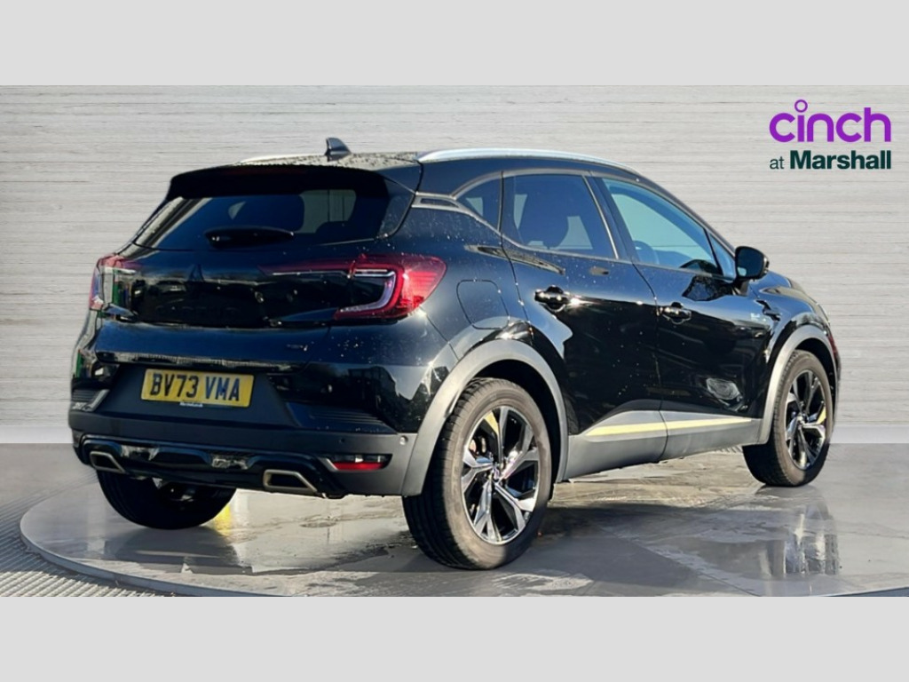 Renault Captur 1.6 E-Tech hybrid 145 Engineered BOSE Edn 5dr Auto 360 surround camera, Blind spot warning, EasyLink 9.3" portrait touchscreen with navigation, google search and traffic information, Eco mode, EV button to activate pure mode, Full digital virtual cockpit - 10" TFT colour display, Gear change indicator, Hands-free parking, Lane departure warning system, Lane keep assist, Multisense with 3 driving modes + 8 ambient lighting colours, Renault automatic emergency assist, Renault Easy Drive - Adaptive cruise control with Stop and Go and Lane centering, Smartphone integration compatible with Apple CarPlay and Android Auto, Traffic sign recognition with over speed prevention, Trip computer, Variable assistance power steering, BOSE sound system with 9 speakers, DAB Radio with Bluetooth and USB, 2 reverse gear LED lamps and 1 rear LED fog lamp in the bumper, Aluminium Renault sport door sills, Auto dimming rear view mirror, Automatic front wipers with rain sensors, Automatic headlights, Automatic high/low beam, Black 'Renault' logo at the front and rear, Black side door protection with warm titanium effect, Body coloured door mirrors, C Shaped LED front and rear lighting signatures with 3D effect on the rear lights, Day time running light, Double chromed exhaust tailpipes element, Drivers one touch window with anti-pinch feature, E-TECH Badging, E-Tech engineered front bumper with gold F1 blade, Extra tinted glass in rear windows and tailgate, Frameless rear view mirror, Front and rear electric windows, Front fenders decopart with shinny black insert, Front grille with shiny black upper trim, Full LED headlights with LED rear lights, Gold E-Tech badge on hatch door, LED high level brake lights, LED rear fog lights, LED turn indicators on door mirrors, Longitudinal roof bars, Rear side wing doors, Rear wiper, Shark fin antenna, Shiny black front and rear skid plate, 60/40 split and fixed base rear seat bench, Aluminium pedals, Automatic climate control with one touch demist function and air quality regulator, Central rear LED rooflight with 3 reading lights, Centre console storage tray, Dark grey interior roof lining, E-TECH Engineered leather steering wheel with gold E-Tech badge, E-Tech engineered leather/suede upholstery, Flying console with e-shifter, Front head restraints, Gold detailing on the dash and steering wheel, Gold stitching on the door panel, Heated steering wheel, Heating system with pollen filter, Height adjustable driver's seat, Height adjustable passenger seat, Height/reach adjust steering wheel, ISOFIX child seat fixing points on rear outermost seats, LED front roof lights, Modular boot floor, Rear head restraints, Single front passenger seat, Sliding rear bench, 3 rear seatbelts, ABS+EBA, AEBS - active emergency braking system, B Brake Mode - One pedal driving with increased regenerative braking, Distance warning alert, Driver and front passenger and 3 rear passengers seatbelt reminder, Driver and front passenger, side, head and curtain airbags, Driver height adjustable seat belt, Electric parking brake with auto hold function, Electronic stability control, Front dash warning indicator in case of heavy braking, Front driver and passenger side airbag deactivation, Hill start assist, Manual passenger airbag deactivation function, Rear door and window child locking function for rear door, Tyre pressure warning light, Anti drill door locks and locking fuel cap, Central door locking, Deadlocking system, Hands free keycard with push button and start/stop function, RAID (Renault Anti-Intruder Device) automatic door locking, Black soft touch dashboard, 18" E-Tech engineered le castellet diamond cut alloy wheels with gold inserts, Tyre inflation kit