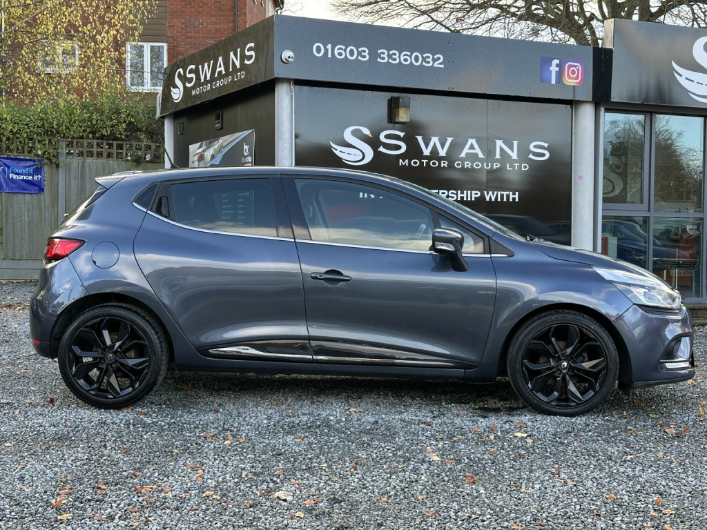 2018 Renault Clio 0.9 TCi Iconic Petrol Manual 5 Door Hatchback Grey, , ???? THIS VEHICLE HAS HAD ALL FOUR ALLOYS FULLY REFURBISHED TO GLOSS BLACK ????, , - 79615 MILES. - 1 FORMER KEEPER. - 195 POUNDS ROAD TAX PER YEAR. - HPI CLEAR. , All of our retail vehicles are sold with the Swans Promise, and will go through our rigorous preparation process which includes:, - A minimum of 9 months MOT at point of sale. - No-obligation 2 Year Service Plan quote provided for every customer. - A routine service carried out, if due within next 3 months or 3,000 miles at point of sale. - Thorough safety check and road test carried out by our experienced vehicle technicians. Our on-site workshop takes pride in professionally preparing your new car to a satisfactory standard. - 3 Months Warranty (Upgrades available, please ask for details). - Full HPI Report - all of our cars are HPI checked. - Drive away insurance available, please ask for details, - We do not charge any admin fees*, , **PART EXCHANGE AVAILABLE** , , **PARTNERS WITH CLOSE BROTHER MOTOR FINANCE**, , **COMPETITIVE FINANCE OPTIONS AVAILABLE FOR ALL CREDIT PROFILES, APPLY BELOW AND GET ACCEPTED TODAY! **, , **BROKERS CHARGE FEES, WE DO NOT! TALK TO US FOR A NO-OBLIGATION QUOTE TO ENSURE YOU GET THE LOWEST MONTHLY PAYMENT POSSIBLE**, , **EVERY CAR RECEIVES A PROFESSIONAL VALET UPON ARRIVAL AND REFRESH PRIOR TO COLLECTION**, , **ASK ABOUT OUR UPGRADED VALETING OPTIONS**, , Swans Motor Group are proud to be a highly reputable, family run used vehicle dealership in the Norwich area. Having originally established our business in 2012, we have a friendly team who all benefit from previous main-dealer experience cited to assist you along the journey of purchasing your next vehicle. We have over 60 combined years of experience in various sectors of the motor industry, so you can rest assured that you are in safe hands with Swans. Customer satisfaction is our number one priority; therefore, we offer a stress-free, personable buying experience. We look forward to welcoming you to our business soon!, , We are located close to Norwich City Centre, at 231-245 Heigham Street, Norwich, NR2 4LN. , DISCLAIMER, Although we make every effort to ensure our advertised vehicle specifications are correct, due to being computer-generated, there can sometimes be errors. Please call us to verify any vehicle specifications if you are unsure or require clarification. , Admin fees may apply when using out-of-house finance companies/brokers Please contact us for details. We do not charge any admin fees for using our in-house finance options.