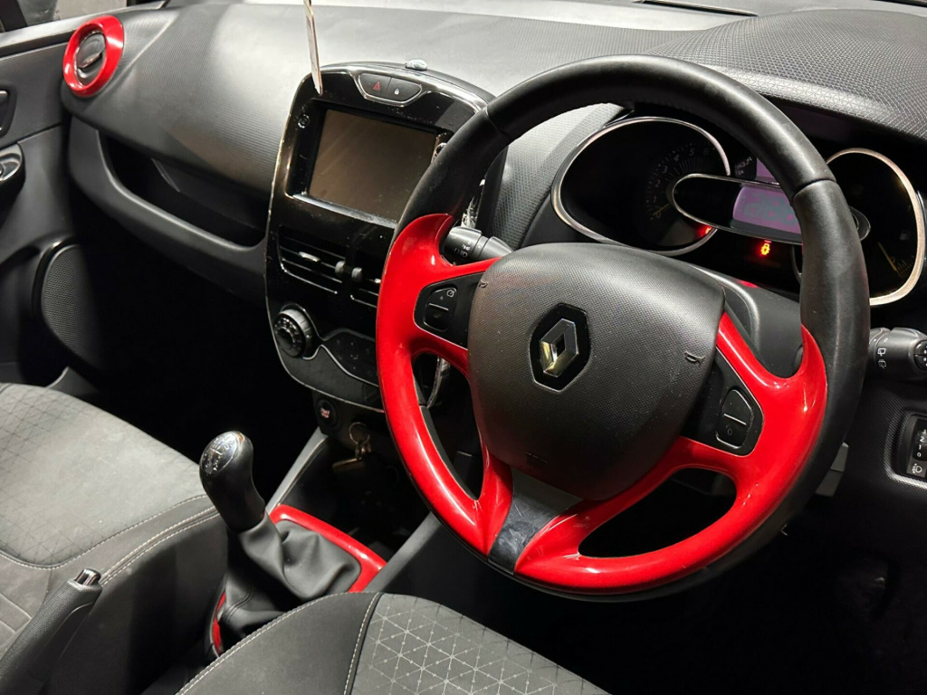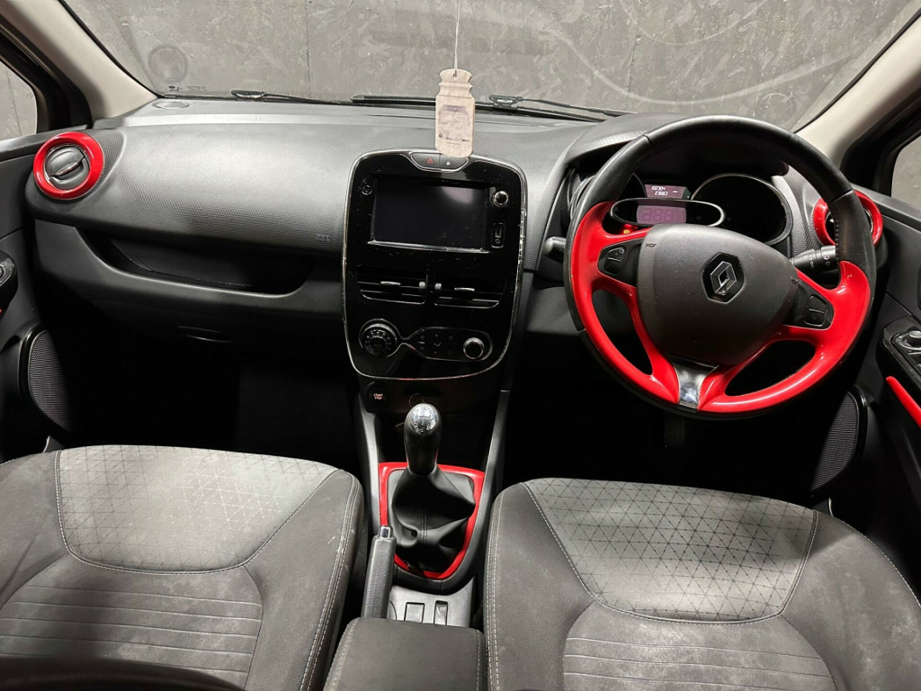 This 2014 Renault Clio TCe Dynamique S MediaNav offers an exceptional blend of style and efficiency, boasting an impressive fuel economy of 63 miles per gallon. This particular model, registered in 2014, comes with the Dynamique S MediaNav trim, powered by a 0.9 litre petrol engine. It features striking 17 inch Desire alloy wheels with red inserts, adding a distinctive visual flair. For convenience and safety, it includes rear parking sensors with parking assistance, and automatic headlights that switch on when needed. Inside, you'll find automatic climate control with a one touch demist function and an air quality regulator, ensuring a comfortable cabin environment.The Renault Clio TCe Dynamique S MediaNav stands out with its low CO2 emissions, indicating a more environmentally conscious choice compared to many other vehicles in its class. The inclusion of Bluetooth connectivity allows for seamless integration of your mobile devices for calls and music. These features, combined with its excellent fuel efficiency and stylish design, make this 2014 Clio a compelling option for those seeking a practical yet engaging driving experience. in alloy wheels - desire with red inserts, 1.2l storage shelf above glovebox, 12v power socket, 17in alloy wheels - desire with black inserts, 2x storage spaces for 2 cups and miscellaneous items near handbrake, 4l front glovebox, 7in touch screen, abs - anti lock brakes, airbags - driver, airbags - front lateral, airbags - front passenger, airbags - front passenger deactivation, airbags - thorax, anti drill door locks, arkamys 4x20w radio and handsfree technology renault bass reflex system, armrest - front centre with storage compartment, automatic windscreen wipers with rain sensors, bluetooth connectivity, bumpers - body coloured, bumpers - front - gloss black with chrome surround, csv - understeer control, centre console - gloss black, chrome instrument dial surrounds, chrome window surrounds, climate control - automatic with one touch demist function and air quality regulator, cruise control with speed limiter, dashboard - soft touch dark carbon, deadlocking, door handles - body coloured - front, door handles - interior chrome, door handles - interior gloss black surround, door mirrors - electrically folding, door mirrors - gloss black housing, eba - emergency brake assist, ebd - electronic brake distribution, esc - electronic stability control, etc - electronic traction control, eco mode, electric windows - front and rear, exterior chrome touches - side door- boot lid strip and front grille strips, fingertip remote control, front fog lights, front speaker surrounds - gloss black with red bass reflex logo, fuel computer, gear change indicator, gear gaiter surround - gloss black, gear knob - chrome, gloss black front and side air vents surrounds, gloss black surround front speakers with logo, hsa - hill start assist, handsfree keycard with push button start-stop function, handsfree technology and renault bass reflex system, headlights - automatic on, headlights - black surrounds, headlights - daytime running lights, headrests - front height adjustable, headrests - rear x3, heating system with pollen filter, isofix - child seat fixing points - outer rear seats, lane change function, lightly tinted windows, lower door protector - black gloss with chrome insert, navteq nav n go satellite navigation, on-board multimedia system, parking sensors - rear, passenger dashboard storage with anti-slip carpet, power assisted steering - electric variable, push button start, raid - renault anti intruder device, rear diffuser - black gloss, rear spoiler - body coloured, remote central locking, renault medianav intergrated on board multimedia system inc 7in touch screen, seatbelt warning sound, seats - 60-40 split folding rear, seats - drivers height adjustment, seats - folding passengers, small storage area by gear stick for phone-keys, soft touch dashboard, steering wheel - height and reach adjustable, steering wheel - leather with gloss black insert, storage space 1.2l - 1x front door, strip base of bootlid - chrome, tyre inflation kit, tyre pressure monitoring system, usb connection, window surrounds - black rubber