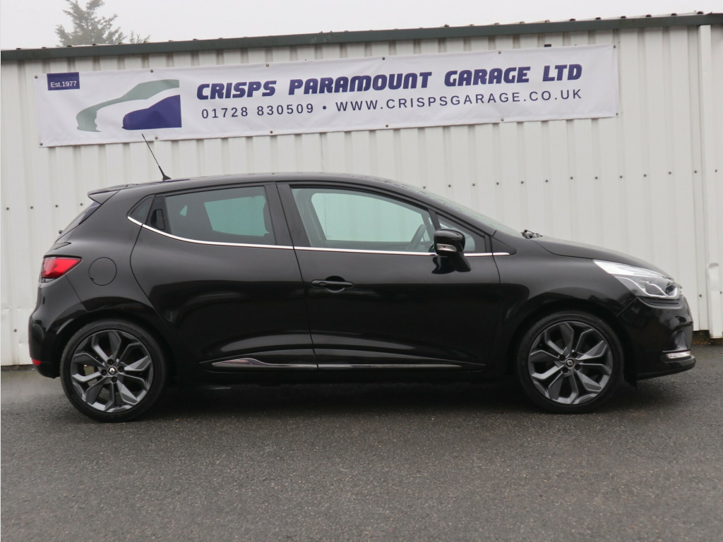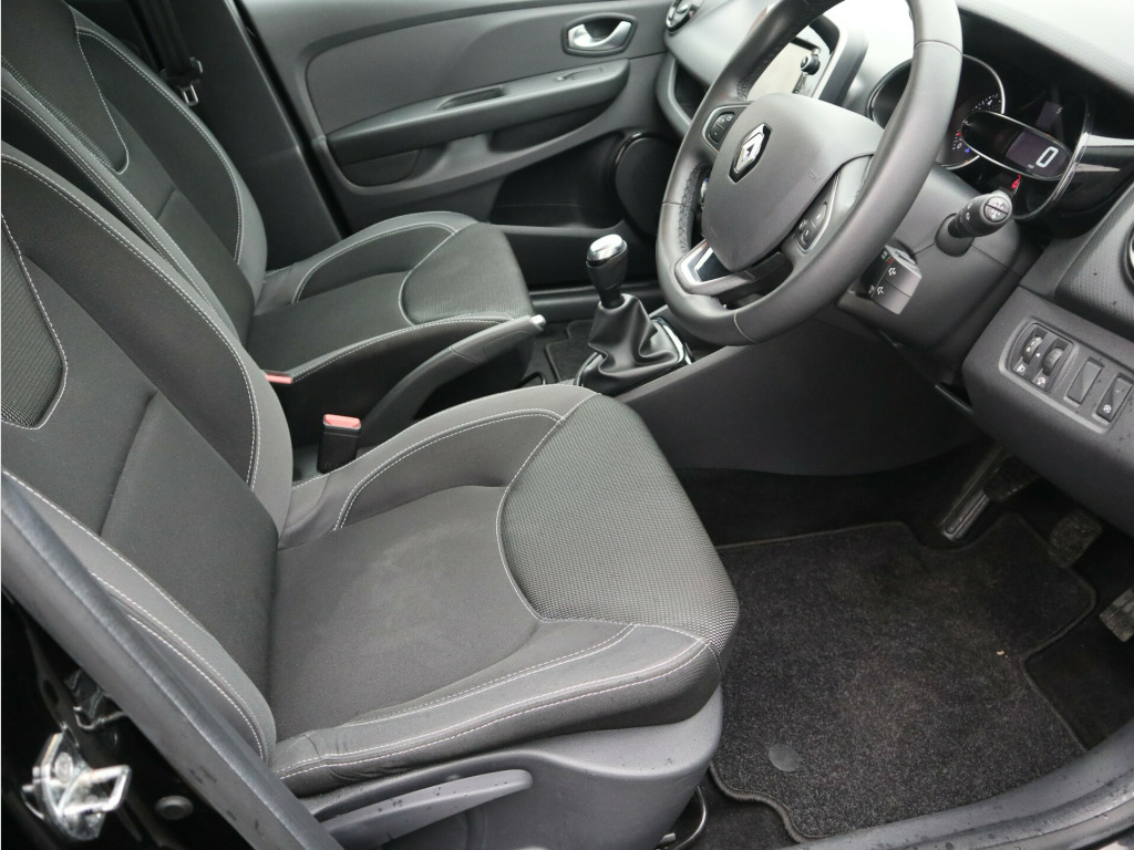 Locally owned Clio Iconic with the 75BHP 0.9 ULEZ friendly petrol engine. This car looks great finished in Diamond Black with gun metal coloured alloy wheels. Specifications include push button start, cruise control, bluetooth and DAB radio. r conditioning - manual, black soft touch dashboard with black gloss air vent surrounds, headrests - rear x3, heating system with pollen filter, rear seats - 60-40 split and fixed base, seats - drivers height adjustment, steering wheel - height and reach adjustable, 12v power socket - front, medianav multimedia system, chrome side window surround, door mirrors - body coloured - electrically adjustable and heated, electric windows - front, extra tinted windows - rear and tailgate, rear spoiler - body coloured, tyre inflation kit, abs with eba - emergency brake assist, airbags - deactivation - front and side - driver and passenger, anti drill door locks and locking fuel cap, anti-pinch function on front electric driver window, deadlocking, driver seat belt height adjustable, driver and passenger front - side - head and thorax airbags, esc - electronic stability control, etc - electronic traction control, front and rear no seatbelt warning sound, hsa - hill start assist, handsfree keycard with push button start-stop function, isofix child seat fixing points on rear outermost seats, raid - renault anti intruder device - automatic door locking, rear door and window child locking function - front driver door control panel for rear door, remote central locking with thatcham approved immobiliser - thatcham cat 2, cruise control with speed limiter, eco mode, front dash warning indicator in case of heavy braking, gear change indicator, parking sensors - rear, power assisted steering - electric variable, trip computer, tyre pressure warning light, daytime running lights - led, front fog lights, 17'' alloy wheels, dab digital radio
