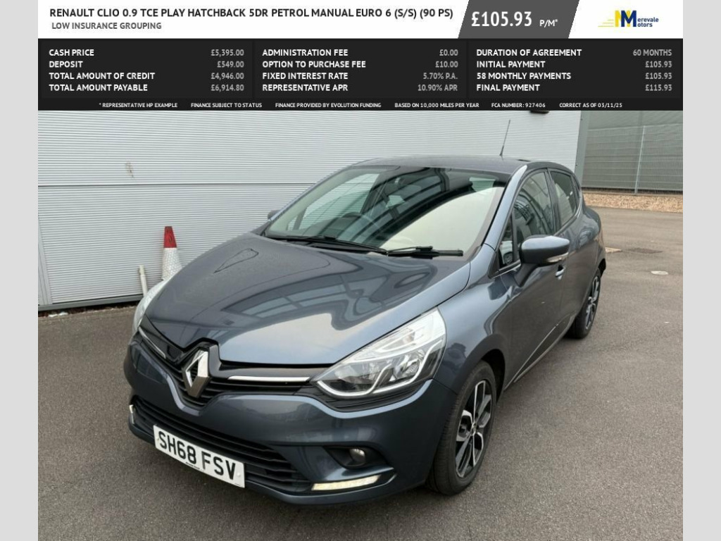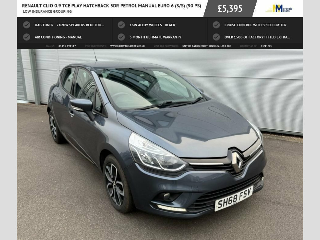 This 2018 Renault Clio 0.9 TCe Play Hatchback 5dr Petrol Manual Euro 6 (s Hatchback is currently available for £5,395 in Hinckley Leicestershire with Petrol engine and Manual gearbox. For more information or to arrange a viewing, click here to send us an email using form below.