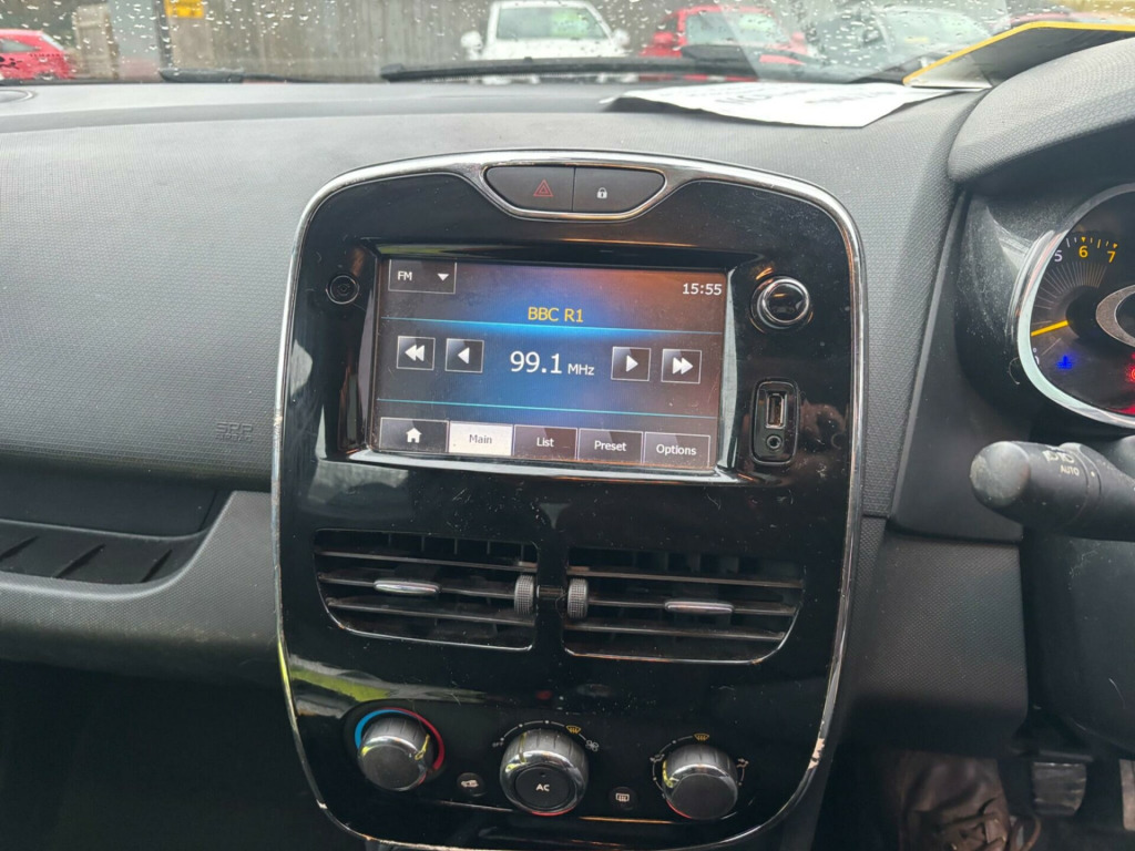 This 2014 Renault Clio Dynamique MediaNav stands out with its recent full service in January 2026 at 82,000 miles, ensuring it is well maintained. This 1.2 litre petrol model has had only two owners and comes with a 12 month MOT for your peace of mind. Inside, you'll find manual air conditioning to keep you comfortable, and Bluetooth connectivity for easy music streaming and calls. The car also features automatic headlights, which switch on when needed, and a handsfree keycard with push button start and stop functionality for convenient access and ignition.The Dynamique MediaNav trim level offers a great combination of features, and this particular Clio is in a low insurance group, which can help to keep your running costs down. With a 6 month warranty included, this Renault Clio presents a well cared for option for those seeking a reliable and feature rich compact car.. 1.2L Storage Shelf Above Glovebox, 12V Power Socket, 16in Alloy Wheels - Passion Chrome, 2x Storage Spaces for 2 Cups and Miscellaneous Items near Handbrake, 4L Front Glovebox, 7in Touch Screen, ABS - Anti Lock Brakes, Air Conditioning - Manual, Airbags - Driver, Airbags - Front Lateral, Airbags - Front Passenger, Airbags - Front Passenger Deactivation, Airbags - Thorax, Anti Drill Door Locks, Arkamys 4x20W Radio and Handsfree Technology Renault Bass Reflex System, Automatic Windscreen Wipers with Rain Sensors, Bluetooth Connectivity, Bumpers - Body Coloured, Bumpers - Front - Gloss Black with Chrome Surround, CSV - Understeer Control, Centre Console - Gloss Black, Chrome Instrument Dial Surrounds, Cruise Control with Speed Limiter, Dashboard - Soft Touch Dark Carbon, Deadlocking, Door Handles - Body Coloured - Front, Door Handles - Interior Chrome, Door Handles - Interior Matt Black Surround, Door Mirrors - Electrically Adjustable - Manual Folding and Heated, Door Mirrors - Gloss Black Housing, EBA - Emergency Brake Assist, EBD - Electronic Brake Distribution, ESC - Electronic Stability Control, ETC - Electronic Traction Control, Electric Windows - Front with Anti Pinch, Exterior Chrome Touches - Side Door- Boot Lid Strip and Front Grille Strips, Fingertip Remote Control, Front Fog Lights, Front Speaker Surrounds - Gloss Black with Red Bass Reflex Logo, Fuel Computer, Gear Change Indicator, Gear Gaiter Surround - Gloss Black, Gear Knob - Chrome, Gloss Black Front and Side Air Vents Surrounds, Gloss Black Surround Front Speakers with Logo, HSA - Hill Start Assist, Handsfree Keycard with Push Button Start-Stop Function, Handsfree Technology and Renault Bass Reflex System, Headlights - Automatic On, Headlights - Black Surrounds, Headlights - Daytime Running Lights, Headrests - Front Height Adjustable, Headrests - Rear x3, Heating System with Pollen Filter, ISOFIX - Child Seat Fixing Points - Outer Rear Seats, Lane Change Function, Lightly Tinted Windows, Lower Door Protector - Black Gloss with Chrome Insert, Navteq Nav n Go Satellite Navigation, On-Board Multimedia System, Passenger Dashboard Storage with Anti-Slip Carpet, Power Assisted Steering - Electric Variable, Push Button Start, RAID - Renault Anti Intruder Device, Rear Diffuser - Black Gloss, Rear Spoiler - Body Coloured, Remote Central Locking, Renault MediaNav Intergrated on Board Multimedia System inc 7in Touch Screen, Seatbelt Warning Sound, Seats - 60-40 Split Folding Rear, Seats - Drivers Height Adjustment, Seats - Folding Passengers, Small Storage Area by Gear Stick for Phone-Keys, Soft Touch Dashboard, Steering Wheel - Height and Reach Adjustable, Steering Wheel - Leather with Gloss Black Insert, Storage Space 1.2L - 1x Front Door, Strip Base of Bootlid - Chrome, Tyre Inflation Kit, Tyre Pressure Monitoring System, USB Connection, Window Surrounds - Black Rubber.