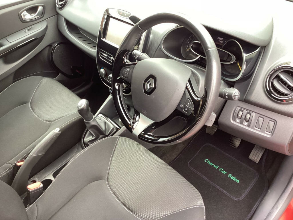 This 2016 Renault Clio Dynamique Nav presents a superb ownership proposition with only two previous keepers and a remarkably low mileage of 55,820 miles for its age. Powered by an efficient 1.2 litre petrol engine and meeting Euro 6 emissions standards, this model is also in a low insurance group, making it an economical choice. Inside, you'll find manual air conditioning to keep you comfortable, alongside a handsfree keycard that allows for keyless entry and push button start stop functionality.The Renault MediaNav system is also included, offering convenient Bluetooth connectivity for calls and music. These carefully selected features, combined with its low mileage and limited ownership history, demonstrate that this Clio Dynamique Nav has been well cared for and offers a superior ownership experience compared to many other vehicles of its kind. We are offering a ''BUY IT ONLINE'' facility dealing with all enquiries remotely and the usual assurances, A PRE-DELIVERY SERVICE, 12 MONTH'S MOT, 12 MONTH'S AA BREAKDOWN COVER, A COMPREHENSIVE 3 MONTH GUARANTEE & FREE DELIVERY within a 30 mile radius of our showroom. We will deal with all paperwork relating to transfers and taxation and also assist you with finance or part exchange enquiries. If you require any further info please contact us on 07831 150 001 or email salescharvilcarcentre.co.uk Thank you for viewing our vehicles.Charles, Chris & Steven 2l storage shelf above glovebox, 12v power socket, 16in alloy wheels - passion chrome, 2x storage spaces for 2 cups and miscellaneous items near handbrake, 4l front glovebox, abs - anti lock brakes, air conditioning - manual, airbags - deactivation - front and side - driver and passenger, anti drill door locks, anti-pinch function on electric windows, automatic headlights and wipers, b-pillar - matt black, bumpers - body coloured, centre console - gloss black - dashboard inserts - gloss black - air vent surrounds with matt chrome adjusters, clio inscribed under renault diamond badge, cruise control with speed limiter, dashboard - soft touch dark carbon, daytime running lights - led, deadlocking, door handles - body coloured - front, door handles - interior matt chrome, door mirrors - black gloss - electrically adjustable and heated, driver seat belt height adjustable, driver and passenger front - side - head and thorax airbags, eba - emergency brake assist, ebd - electronic brake distribution, esc - electronic stability control, etc - electronic traction control, electric child safety locks on rear doors activated via a switch on the drivers door panel, electric windows - front, exterior chrome touches - side door- boot lid strip and front grille strips, front dash warning indicator in case of heavy braking, front fog lights, front speaker surrounds - gloss black with red bass reflex logo, gear change indicator, gear knob insert - matt chrome, hsa - hill start assist, handbrake button - matt chrome, handsfree keycard with push button start-stop function, headlights - halogen double optic with black surround, headrests - front height adjustable - srp - system for restraint and protection, headrests - rear x3, heating system with pollen filter, isofix - child seat fixing points - outer rear seats, instrument dial surrounds - matt chrome, lightly tinted windows, lower door protector - black gloss with chrome insert, power assisted steering - electric variable, raid - renault anti intruder device, rear engine badge, rear spoiler - body coloured, rear wiper, remote central locking with thatcham approved immobiliser - thatcham cat 2, renault medianav, seatbelt warning sound, seats - 60-40 split folding rear, seats - drivers height adjustment, small storage area by gear stick for phone-keys, steering wheel - height and reach adjustable, steering wheel - leather with gloss black insert, steering wheel base - gloss black, storage space 1.2l - 1x front door, strip base of bootlid - chrome, trip computer, tyre inflation kit, tyre pressure warning light, usb connection, windscreen wipers - variable speed