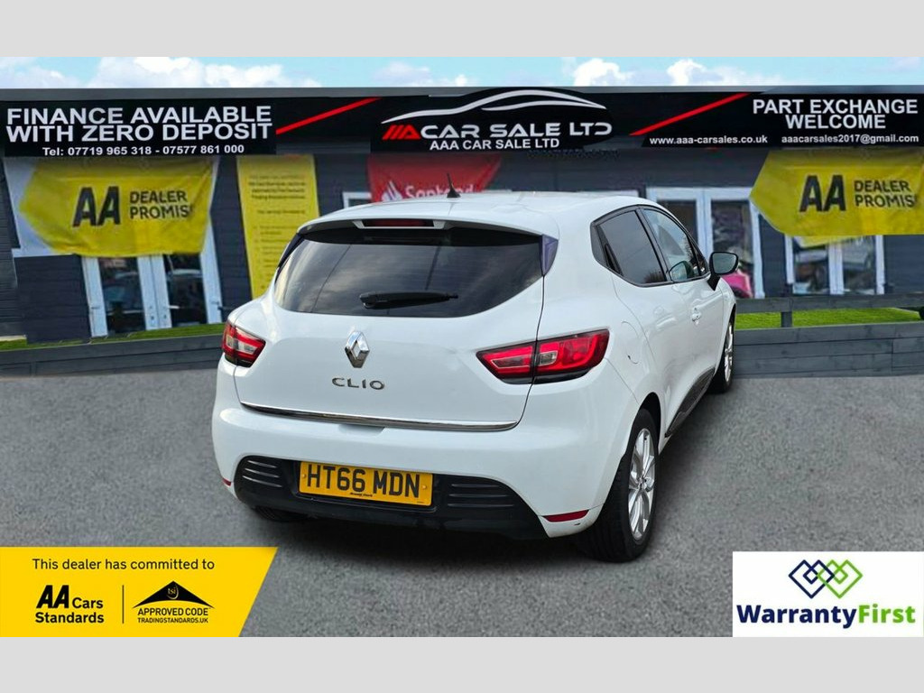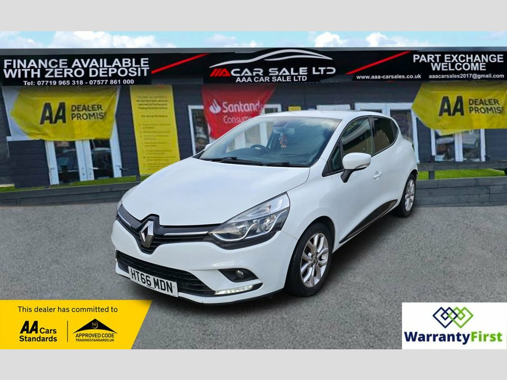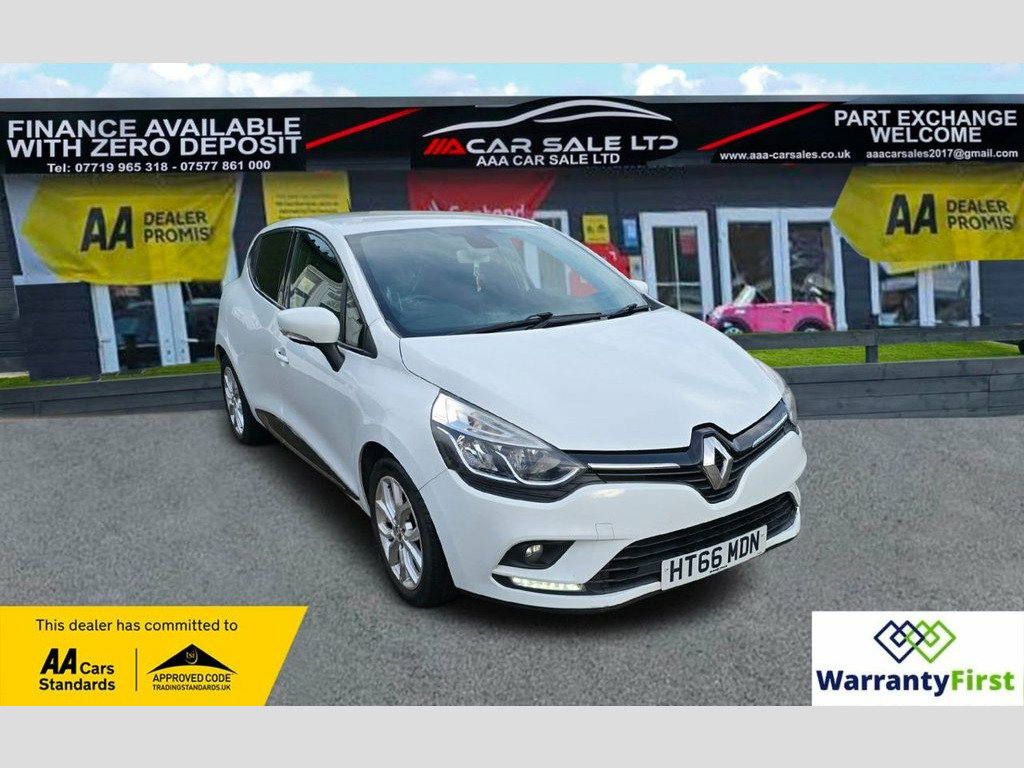 **AAA CAR SALES DARLINGTON LTD HAVE THE PLEASURE TO PRESENT THIS RENAULT CLIO 1.2 16V Dynamique Nav Hatchback 5dr Petrol Manual Euro 6 (75 ps) IN GLACIER WHITE PAINTWORK. SERVICE HISTORY - SERVICED AT 14K, 53K AND SERVICED BY OUR TEAM AT 84K. FRESH MOT, ALL OUR CARS GO THROUGH 72 POINT INSPECTION,ALL OF OUR CARS COME WITH 12 MONTHS AA BREAKDOWN COVER, FRESH MOT WITHOUT ADVISORIES,INTERIM SERVICE,HPI CHECKED VIA EXPERIAN,3 MONTHS WARRANTY WITH THE OPTION TO UPGRADE ***AUTOTRADER CUSTOMER SERVICE AWARD 2019,2020,2021,2022,2023 and 2024 YEAR ON YEAR***, WE ARE OPEN 7 DAYS A WEEK FOR YOUR CONVIENIENCE,CALL 01325 511665, visit our website www.aaa-carsales.co.uk, , Service history, Clean bodywork, Cloth interior - Clean Condition, Tyre condition good, YOU CAN BUY WITH FULL CONFIDENCE FROM AAA CARS CHECK OUR AUTOTRADER REVIEWS FOR FULL PEACE OF MIND, 1.2L Storage Shelf Above Glovebox, 12V Power Socket, 16in Alloy Wheels - Chrome, 2 Storage Spaces for 1 Cup and Miscellan, 4L Front Glovebox, ABS with EBA - Emergency Brake Assist, Air Conditioning - Manual, Airbags - Deactivation - Front and Side , Anti Drill Door Locks and Locking Fuel C, Anti-Pinch Function on Front Electric Dr, Automatic Headlights and Front Wipers, Bumpers - Body Coloured, Clio Inscribed Under Renault Diamond Bad, Cruise Control with Speed Limiter, Dashboard - Soft Touch Dark Carbon, Daytime Running Lights - LED, Deadlocking, Double Optic Halogen Headlights, Driver Seat Belt Height Adjustable, Driver and Passenger Front - Side - Head, EBD - Electronic Brake Distribution