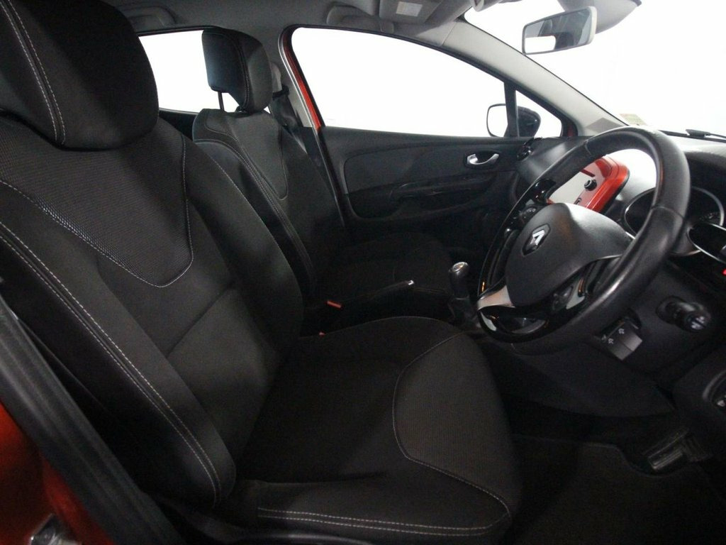 2 Owners. The 2016 Renault Clio 1.2 16V Dynamique Nav is a stylish and popular supermini, powered by a dependable 1.2-litre naturally aspirated petrol engine producing 75 ps (74 bhp) and 107 Nm of torque. Mated to a five-speed manual gearbox, it is optimized for urban driving, achieving a 0–62 mph time of 14.5 seconds and a top speed of 104 mph. This Euro 6 compliant model is economical, with an official combined fuel economy of 51.4 mpg, while real-world driving typically averages around 48 mpg. Finished in Flame Red metallic, the Dynamique Nav trim features 16-inch Passion alloy wheels (standard in chrome or optional in grey), a body-coloured rear spoiler, and gloss black exterior touches with chrome inserts. The contemporary interior features a soft-touch dark carbon dashboard and a leather-wrapped steering wheel with gloss black inserts. Technology is a highlight of the Dynamique Nav grade, which includes the 7-inch Renault MediaNav touchscreen system featuring integrated navigation, DAB radio, and Bluetooth connectivity for calls and music streaming. The vehicle also features Renault's hands-free keycard system, allowing for keyless entry and push-button start without needing to remove the key from a pocket or bag. Safety and driver assistance are comprehensive, including cruise control with a speed limiter, Hill Start Assist (HSA), and automatic headlights and wipers. The car is equipped with a suite of airbags (front, side, head, and thorax), ISOFIX child 1.2L Storage Shelf Above Glovebox, 12V Power Socket, 16in Alloy Wheels - Passion Chrome, 16in Alloy Wheels - Passion Grey, 2x Storage Spaces for 2 Cups and Miscell, 4L Front Glovebox, ABS - Anti Lock Brakes, Air Conditioning - Manual, Airbags - Deactivation - Front and Side , Anti Drill Door Locks, Anti-Pinch Function on Electric Windows, Automatic Headlights and Wipers, B-Pillar - Matt Black, Bumpers - Body Coloured, Centre Console - Gloss Black - Dashboard, Clio Inscribed Under Renault Diamond Bad, Cruise Control with Speed Limiter, Dashboard - Soft Touch Dark Carbon, Daytime Running Lights - LED, Deadlocking, Door Handles - Body Coloured - Front, Door Handles - Interior Matt Chrome, Door