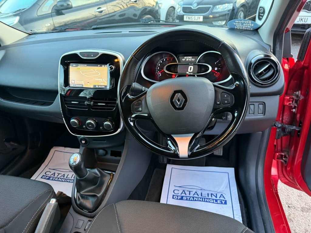 Renault Clio 1.2 16V Dynamique Nav – Just Serviced | Long MOT | Great Spec Petrol | Manual | Euro 6 | 75 PS | 80,167 Miles | MOT Until 04-01-2027 This Renault Clio 1.2 16V Dynamique Nav is a smart, well-presented example of Renault's popular and economical hatchback. With just 80,167 miles from new, only two former keepers, and just serviced by us at 80k, it offers excellent value and peace of mind. Powered by the reliable 1.2-litre petrol engine producing 75 PS, it delivers smooth, economical performance ideal for everyday driving, commuting, or first-time drivers. Its Euro 6 compliance makes it suitable for modern clean-air zones. Finished in red with a dark cloth interior, this Dynamique Nav model comes well equipped with satellite navigation, Bluetooth, alloy wheels, and all the comfort and convenience features expected from this trim level. A clean, ready-to-drive example of the Renault Clio — practical, economical, and great value for money. 2016 RENAULT CLIO 1.2 16V Dynamique Nav Hatchback 5dr is offered to you for sale in Pudsey, Leeds, finished in red this RENAULT CLIO 1.2 16V Dynamique Nav Hatchback 5dr is one of many handpicked used cars that used car dealer, Catalina of Stanningley, Pudsey, Leeds have available for sale. 1.2L Storage Shelf Above Glovebox, 12V Power Socket, 16in Alloy Wheels - Passion Chrome, 2x Storage Spaces for 2 Cups and Miscell, 4L Front Glovebox, ABS - Anti Lock Brakes, Air Conditioning - Manual, Airbags - Deactivation - Front and Side , Anti Drill Door Locks, Anti-Pinch Function on Electric Windows, Automatic Headlights and Wipers, B-Pillar - Matt Black, Bumpers - Body Coloured, Centre Console - Gloss Black - Dashboard, Clio Inscribed Under Renault Diamond Bad, Cruise Control with Speed Limiter, Dashboard - Soft Touch Dark Carbon, Daytime Running Lights - LED, Deadlocking, Door Handles - Body Coloured - Front, Door Handles - Interior Matt Chrome, Door Mirrors - Black Gloss - Electrical