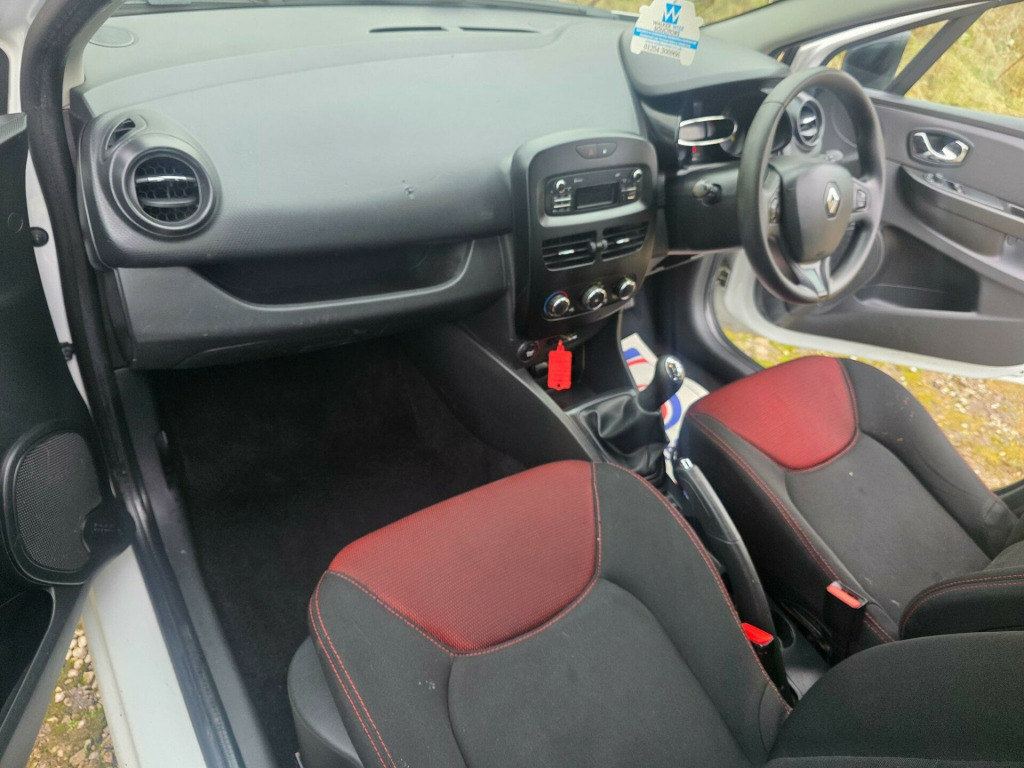 VERY GOOD CONDITION AND A FULL SERVICE HISTORY SHOWING 7 STAMPS IN THE SERVICE BOOK , EXPRESSION SPECIFICATION WITH BLUETOOTH , ECONOMICAL HATCHBACK AVERAGING 56.7 MPG , LOW INSURANCE GROUPING , IDEAL FOR NEW OR YOUNG DRIVER , 12 MONTHS MOT AND 3 MONTHS WARRANTY. 1.2L Storage Shelf Above Glovebox, 12V Power Socket, 16in Alloy Wheels - Passion Chrome, 2 x 20W Radio, 2x Storage Spaces for 2 Cups and Miscellaneous Items near Handbrake, 4L Front Glovebox, ABS - Anti Lock Brakes, Air Conditioning - Manual, Airbags - Driver, Airbags - Front Lateral, Airbags - Front Passenger, Airbags - Front Passenger Deactivation, Airbags - Thorax, Anti Drill Door Locks, Black Dashboard with White Night Lighting, Bluetooth Connectivity, Bumpers - Body Coloured, CSV - Understeer Control, Chrome Front and Side Air Vents Surrounds, Chrome Instrument Dial Surrounds, Cruise Control with Speed Limiter, Dashboard - Dark Carbon, Deadlocking, Door Handles - Black Grain Exterior, Door Handles - Interior Chrome, Door Handles - Interior Matt Black Surround, Door Mirrors - Black Synthetic Grain Effect Housing, Door Mirrors - Electrically Adjustable - Manual Folding and Heated, EBA - Emergency Brake Assist, EBD - Electronic Brake Distribution, ESC - Electronic Stability Control, ETC - Electronic Traction Control, Electric Windows - Front, Fingertip Remote Control, Front Fog Lights, Front Speaker Surrounds - Grain Black with Red Bass Reflex Logo, Fuel Computer, Gear Change Indicator, Gear Knob - Chrome, HSA - Hill Start Assist, Handsfree Technology and Renault Bass Reflex System, Headlights - Black Surrounds, Headlights - Daytime Running Lights, Headrests - Front Height Adjustable, Headrests - Rear x3, Heating System with Pollen Filter, ISOFIX - Child Seat Fixing Points - Outer Rear Seats, Keycard Entry with Push Button Start-Stop Function, Lane Change Function, Lightly Tinted Windows, Lower Door Protector - Black Grain, Passenger Dashboard Storage with Anti-Slip Carpet, Power Assisted Steering - Electric Variable, RAID - Renault Anti Intruder Device, Rear Diffuser - Black Synthetic Grain Effect, Rear Spoiler - Body Coloured, Remote Central Locking, Seatbelt Warning Sound, Seats - 60-40 Split Folding Rear, Seats - Drivers Height Adjustment, Seats - Folding Passengers, Small Storage Area by Gear Stick for Phone-Keys, Steering Wheel - Height and Reach Adjustable, Storage Space 1.2L - 1x Front Door, Strip Base of Bootlid - Black Grain, Tyre Inflation Kit, Tyre Pressure Monitoring System, USB Connection, Window Surrounds - Black Rubber.