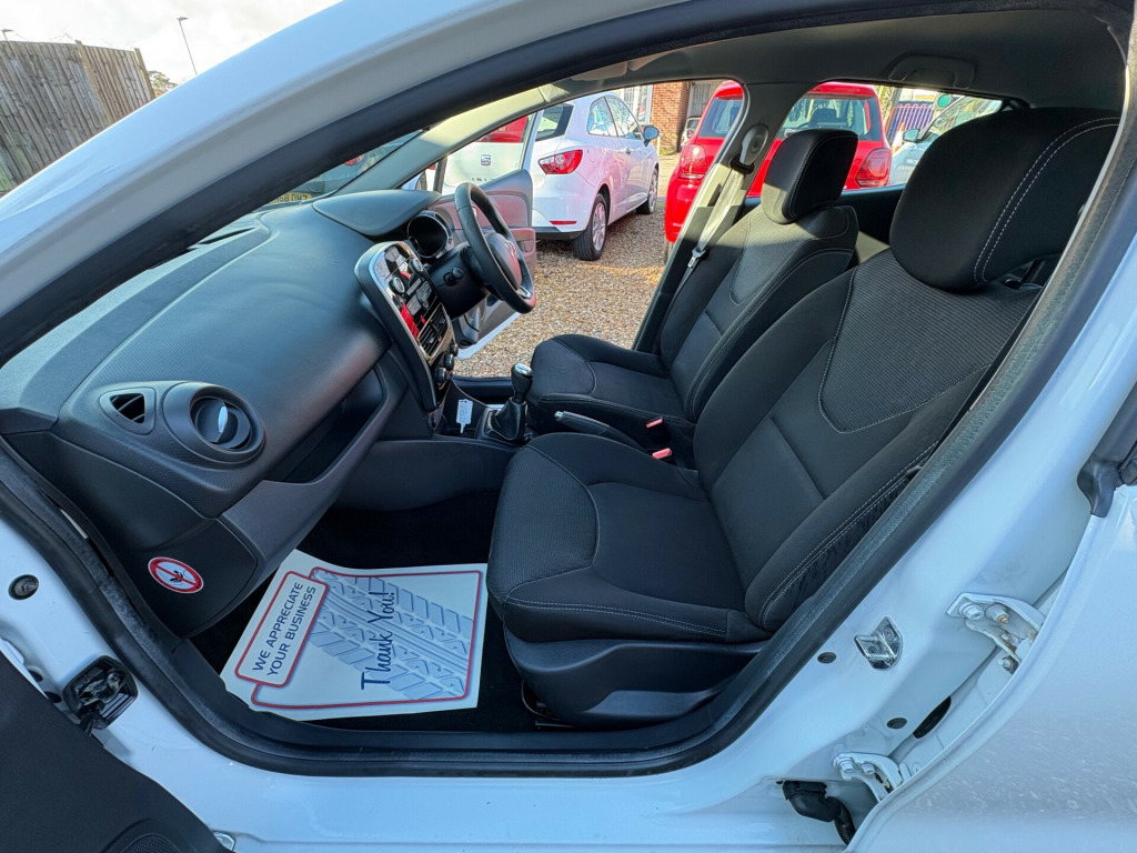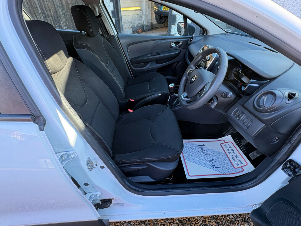 Timing belt done. 2l storage shelf above glovebox, 2 storage spaces for 1 cup and miscellaneous items near handbrake, 4l front glovebox, dashboard - dark carbon, headrests - rear x3, heating system with pollen filter, rear seats - 60-40 split and fixed base, seats - drivers height adjustment, single rear fog light, steering wheel - black grain with chrome insert, steering wheel - height and reach adjustable, 12v power socket, 2 x 20w radio, usb socket and jack, 15in steel wheels - lagoon, bumpers - body coloured, clio inscribed under renault diamond badge, electric windows - front, exterior door handles - body coloured, exterior door mirrors - black grain - heated and electrically adjustable, exterior rear hidden door handles, lower door protector - black grain, rear spoiler - body coloured, tyre inflation kit, abs with eba - emergency brake assist, airbags - deactivation - front and side - driver and passenger, anti drill door locks and locking fuel cap, deadlocking, driver seat belt height adjustable, driver and passenger front - side - head and thorax airbags, ebd - electronic brake distribution, esc - electronic stability control, etc - electronic traction control, front and rear no seatbelt warning sound, hsa - hill start assist, isofix child seat fixing points on rear outermost seats, keycard entry with push button start-stop function, raid - renault anti intruder device - automatic door locking, rear door and window child locking function for rear doors, rear wiper, remote central locking with thatcham approved immobiliser - thatcham cat 2, cruise control with speed limiter, front dash warning indicator in case of heavy braking, gear change indicator, power assisted steering - electric variable, trip computer, tyre pressure warning light, daytime running lights - led, double optic halogen headlights