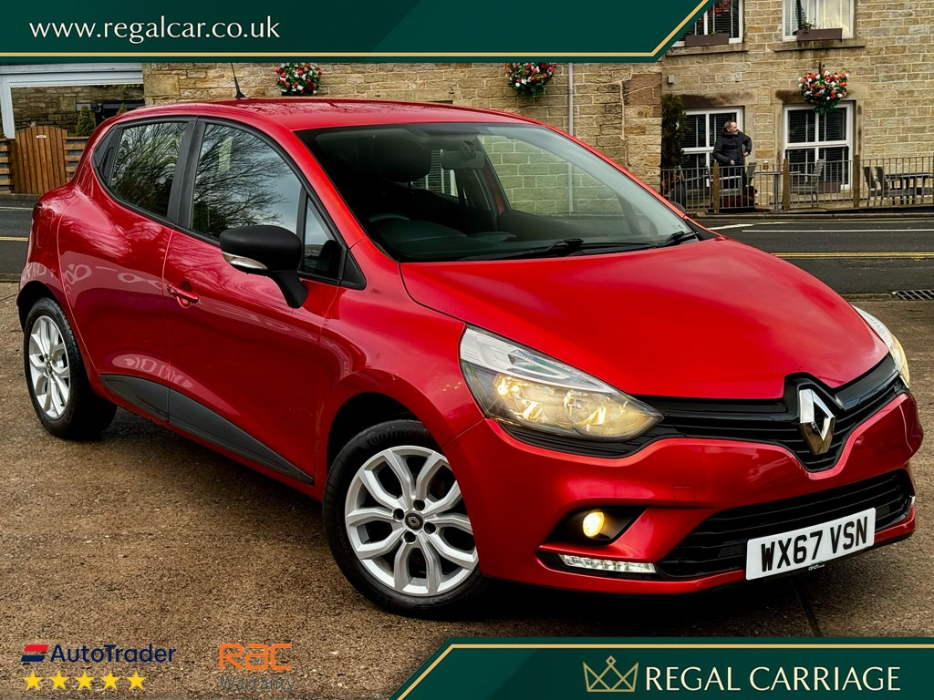RENAULT CLIO PLAY - LOW RUNNING COSTS - 5 DOOR - RED?2017 (67) 1.1 Petrol 5-Speed Manual 5-Door Hatchback Flame Red MetallicA smart and reliable Renault Clio Play finished in eye-catching Flame Red Metallic. A practical 5-door hatchback that's easy to live with, economical to run and ideal as a first car, commuter or family runaround. The Clio Play offers modern looks, a comfortable drive and sensible ownership costs.Well presented inside and out, with a good level of specification and Renault's proven 1.1 petrol engine.Key Features:- 1.1 Petrol Engine- 5-Speed Manual Gearbox- Play Specification- Flame Red Metallic Paintwork- 5-Door Practical Hatchback- Alloy Wheels- Touchscreen Media System- Bluetooth Connectivity- DAB Radio- Cruise Control & Speed Limiter- Air Conditioning- Electric Windows & Mirrors- ISOFIX Child Seat Mounting PointsTax & Running Costs:- £195 Annual Road Tax- Economical petrol engine- Low insurance group- Ideal for city and motorway drivingPeace of Mind Included:- Fully Serviced & Ready To Go- Multi-Point Inspection Completed- RAC Warranty Included- 12 Months RAC Breakdown Assistance- Part-Exchange Welcome- Finance Options Available- Nationwide Delivery AvailableCall Now to Arrange a Viewing or Test Drive?V5 Present - HPI Clear - Drives Very WellCondition commensurate with age and mileage - a tidy, dependable Clio that makes a great all-rounder.www.regalcar.co.uk 2l storage shelf above glovebox, 2 storage spaces for 1 cup and miscellaneous items near handbrake, 4l front glovebox, air conditioning - manual, dashboard - dark carbon, headrests - rear x3, heating system with pollen filter, rear seats - 60-40 split and fixed base, seats - drivers height adjustment, single rear fog light, steering wheel - black grain with chrome insert, steering wheel - height and reach adjustable, windscreen wipers - variable speed, 12v power socket, 2 x 20w radio, usb socket and jack, 16in alloy wheels - chrome, bumpers - body coloured, clio inscribed under renault diamond badge, electric windows - front, exterior door handles - body coloured, exterior door mirrors - black grain - heated and electrically adjustable, exterior rear hidden door handles, lower door protector - black grain, rear spoiler - body coloured, tyre inflation kit, abs with eba - emergency brake assist, airbags - deactivation - front and side - driver and passenger, anti drill door locks and locking fuel cap, deadlocking, driver seat belt height adjustable, driver and passenger front - side - head and thorax airbags, ebd - electronic brake distribution, esc - electronic stability control, etc - electronic traction control, front and rear no seatbelt warning sound, hsa - hill start assist, isofix child seat fixing points on rear outermost seats, keycard entry with push button start-stop function, raid - renault anti intruder device - automatic door locking, rear door and window child locking function for rear doors, rear wiper, remote central locking with thatcham approved immobiliser - thatcham cat 2, cruise control with speed limiter, front dash warning indicator in case of heavy braking, gear change indicator, power assisted steering - electric variable, trip computer, tyre pressure warning light, daytime running lights - led, double optic halogen headlights, front fog lights