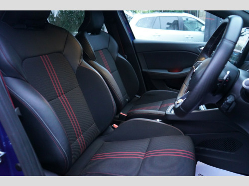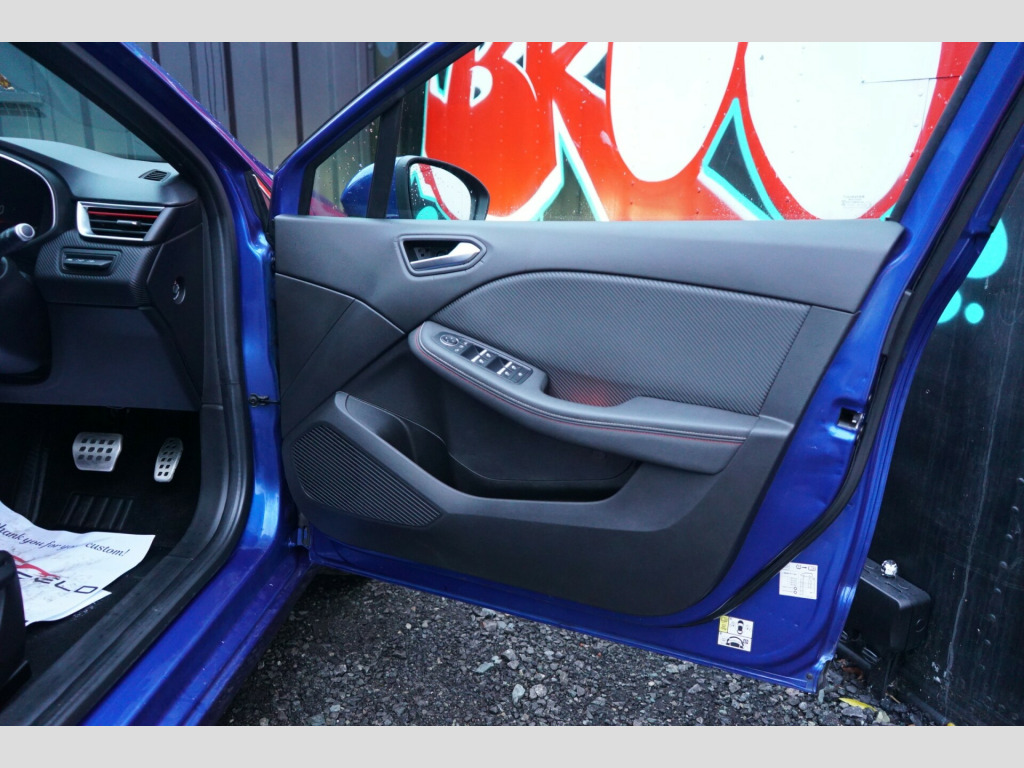 This 2019 Renault Clio 1.3 TCe RS Line Hatchback with only 53150 miles on the clock is a sleek and efficient petrol vehicle that boasts a 5-door hatchback body style with 5 seats, making it perfect for both daily commutes and longer journeys. Its MOT is valid until 07/11/2026, and it is ULEZ compliant, ensuring it meets the latest emission standards. The Iron Blue exterior is complemented by the RS Line Fabric interior in Black-Red Striped with Red Contrast Stitching. It comes with a full-size spare wheel, Techno Pack, and a 12V power socket in the front, making it ready for any adventure. With its Euro 6 (s/s) engine delivering 130 ps, this Renault Clio is as practical as it is stylish. v power socket - front, 7in tft drivers information display, e-call, easy link 9.3in screen with nav and sp replication, 17in alloy wheels - rs, automatic folding door mirrors, bumpers - body coloured, c-shaped lighting signature - front and rear, chrome side window surround, door handles - body coloured - front, door mirrors - body coloured, electric windows - front, electric windows - rear, exterior rear hidden door handles, extra tinted windows - rear and tailgate, gun metal insert on lower side doors with clio embossing, rs line exterior, rear fog light, rear spoiler - body coloured, tyre inflation kit, 6.2l glovebox, automatic climate control, black interior roof lining, headrests - rear x3, rs line interior trim, rear seats - 60-40 split and fixed base, seats - drivers height adjustment, steering wheel - height and reach adjustable, steering wheel - leather, variable speed on front windscreen wipers, abs with eba - emergency brake assist, airbags - deactivation - front and side - driver and passenger, autonomous emergency braking, central door locking, deadlocking, driver seat belt height adjustable, driver and passenger front - side - head and curtain airbags, esc - electronic stability control, etc - electronic traction control, front driver window with anti pinch and one touch control, front and rear no seatbelt warning sound, hsa - hill start assist, handsfree keycard with push button start-stop function, isofix child seat fixing points on rear outermost seats, lka - lane keep assist, locking fuel cap, parking pack, raid - renault anti intruder device - automatic door locking, rear door and window child locking function - front driver door control panel for rear door, remote central locking with thatcham approved immobiliser - thatcham cat 2, windscreen wipers - rear, automatic headlights and front wipers, full led front and rear headlamps integrating daytime running lights, headlights - automatic high-low beam, led front fog lights, cruise control with speed limiter, distance warning alert, eco mode, gear change indicator, ldw - lane departure warning, over speed prevention, parking sensors - rear, power assisted steering - electric variable, tsr - traffic sign recognition, trip computer, tyre pressure warning light