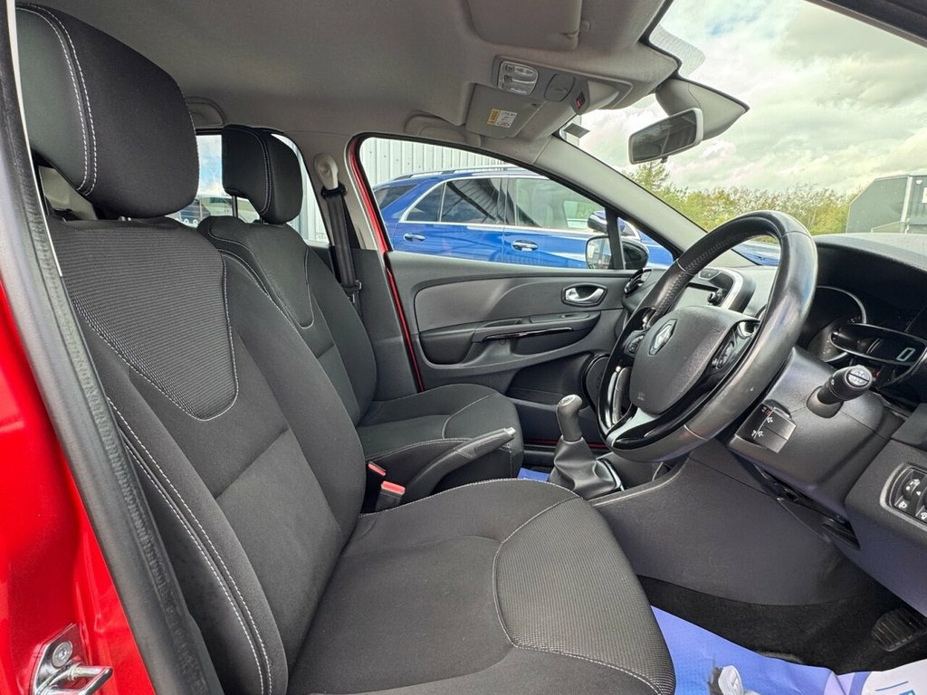 DRIVE HOME IN THIS LOW MILEAGE 2015-65 RENAULT CLIO 1.5 DCI DYNAMIC NAV 5 DOOR DIESEL EURO 6 FINISHED IN RED FLAME RED AND TRIMMED WITH BLACK SEATING AND INTERIOR. LOW MILEAGE ONLY 82K WITH A SERVICE HISTORY INC 8X SERVICES , LOW TAX £20 AND 85+MPG MAKE THIS THE IDEAL FIRST TIME OR COMMUTER CAR AS LOW INSURANCE GROUP AND ECONOMICAL. GREAT SPEC INC ALLOY WHEELS, CRUISE CONTROL, A/C, DAB RADIO, SAT-NAV, BLUETOOTH 1.2L Storage Shelf Above Glovebox, 12V Power Socket, 16in Alloy Wheels - Passion Chrome, 2x Storage Spaces for 2 Cups and Miscell, 4L Front Glovebox, ABS - Anti Lock Brakes, Air Conditioning - Manual, Airbags - Deactivation - Front and Side , Anti Drill Door Locks, Anti-Pinch Function on Electric Windows, Automatic Headlights and Wipers, B-Pillar - Matt Black, Bumpers - Body Coloured, Centre Console - Gloss Black - Dashboard, Clio Inscribed Under Renault Diamond Bad, Cruise Control with Speed Limiter, Dashboard - Soft Touch Dark Carbon, Daytime Running Lights - LED, Deadlocking, Door Handles - Body Coloured - Front, Door Handles - Interior Matt Chrome, Door Mirrors - Black Gloss - Electrical