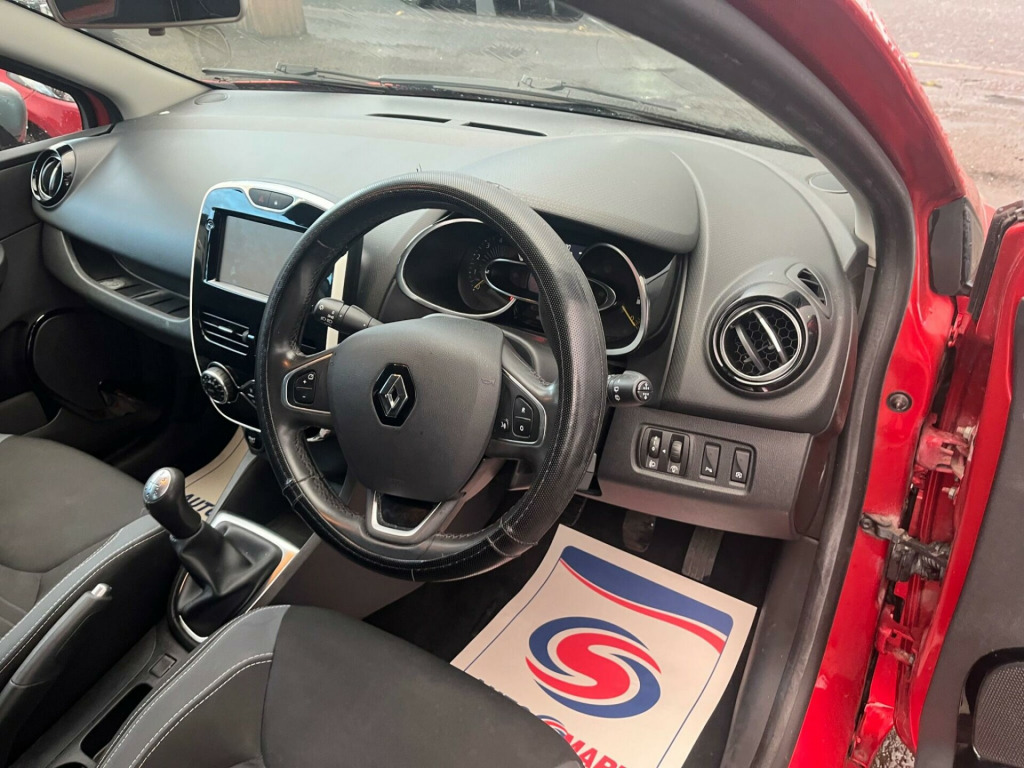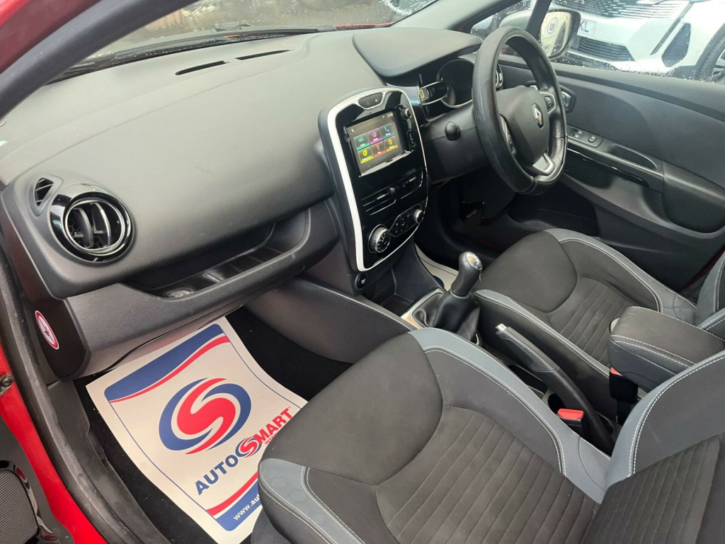 JUST ARRIVED,AWAITING FULL VALET,LOVELY TOP OF THE RANGE MODEL WITH GREAT SPEC,COMES WITH A SERVICE HISTORY INCLUDING RECENT TIMING BELT AND WATERPUMP CHANGE,LONG MOT 04/09/26 WITH ADVISORY DONE,2 KEYS AND A WARRANTY,LOOKS AND DRIVES LIKE HALF THE MILES,ULEZ COMPLIANT AND ONLY £30 ROAD TAX,GRAB YOURSELF A BARGAIN.FINANCE AND DELIVERY AVAILABLE ON REQUEST 2l storage shelf above glovebox, 12v power socket, 17in alloy wheels - desire with black inserts, 2x storage spaces for 2 cups and miscellaneous items near handbrake, 4l front glovebox, abs - anti lock brakes, airbags - deactivation - front and side - driver and passenger, anti drill door locks, anti-pinch function on electric windows, armrest - front centre with storage compartment, automatic headlights and wipers, b-pillar - gloss black, body coloured parking sensors - rear, bumpers - body coloured, centre console - gloss black - dashboard inserts - gloss black - air vent surrounds with matt chrome adjusters, chrome window surrounds, climate control - automatic with one touch demist function and air quality regulator, clio inscribed under renault diamond badge, cruise control with speed limiter, dashboard - soft touch dark carbon, daytime running lights - led, deadlocking, door handles - body coloured - front, door handles - interior matt chrome, door mirrors - black gloss - electrically adjustable and heated, driver seat belt height adjustable, driver and passenger front - side - head and thorax airbags, eba - emergency brake assist, ebd - electronic brake distribution, esc - electronic stability control, etc - electronic traction control, eco mode, electric child safety locks on rear doors activated via a switch on the drivers door panel, electric windows - front, electric windows - rear, exterior chrome touches - side door- boot lid strip and front grille strips, front dash warning indicator in case of heavy braking, front fog lights, front speaker surrounds - gloss black with red bass reflex logo, gear change indicator, gear knob insert - matt chrome, hsa - hill start assist, handbrake button - matt chrome, handsfree keycard with push button start-stop function, headlights - halogen double optic with black surround, headrests - front height adjustable - srp - system for restraint and protection, headrests - rear x3, heating system with pollen filter, isofix - child seat fixing points - outer rear seats, instrument dial surrounds - matt chrome, lightly tinted windows, lower door protector - black gloss with chrome insert, power assisted steering - electric variable, raid - renault anti intruder device, rear engine badge, rear spoiler - body coloured, rear wiper, remote central locking with thatcham approved immobiliser - thatcham cat 2, renault medianav, seatbelt warning sound, seats - 60-40 split folding rear, seats - drivers height adjustment, small storage area by gear stick for phone-keys, steering wheel - height and reach adjustable, steering wheel - leather with chrome insert, steering wheel base - gloss black, storage space 1.2l - 1x front door, strip base of bootlid - chrome, trip computer, tyre inflation kit, tyre pressure warning light, usb connection, windscreen wipers - variable speed, gt line look pack