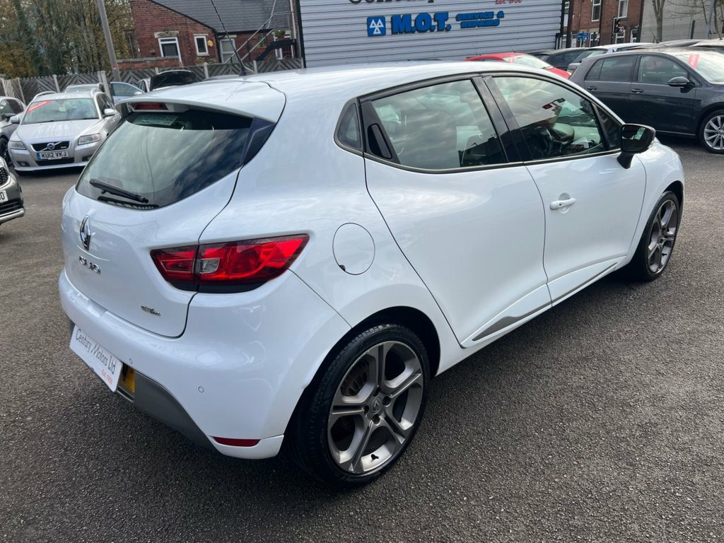 ### ONLY 62 796 MILES ### FULL SERVICE HISTORY - Last Done at 56k ### SAT NAV ### UPGRADE ALLOYS ### GT-LINE LOOK PACK ### Finished in Glacier White with dark charcoal upholstery on UPGRADE SMOKE GREY ALLOYS this LOVELY EXAMPLE should be seen and driven..........Power steering, remote central locking, COLOUR SCREEN SAT NAV, UPGRADE ALLOYS, GT-LINE LOOK PACK, PARKING SENSORS, BLUETOOTH HANDS FREE, DAB RADIO/CD PLAYER WITH MEDIA, PIANO BLACK INTERIOR FASCIA, ELECTRIC WINDOWS, ELECTRIC MIRRORS, FRONT FOG LAMPS, MULTI-FUNCTION STEERING WHEEL, ABS Brakes, multiple airbags, colour coded bodywork and much more..............DEPOSIT SECURES THIS CAR, 1.2L Storage Shelf Above Glovebox, 12V Power Socket, 17in Alloy Wheels - Desire with Black In, 17in Alloy Wheels - Desire with Grey Ins, 2x Storage Spaces for 2 Cups and Miscell, 4L Front Glovebox, ABS - Anti Lock Brakes, Airbags - Deactivation - Front and Side , Anti Drill Door Locks, Anti-Pinch Function on Electric Windows, Armrest - Front Centre with Storage Comp, Automatic Headlights and Wipers, B-Pillar - Gloss Black, Body Coloured Parking Sensors - Rear, Bumpers - Body Coloured, Centre Console - Gloss Black - Dashboard, Chrome Window Surrounds, Climate Control - Automatic with One Tou, Clio Inscribed Under Renault Diamond Bad, Cruise Control with Speed Limiter, Dashboard - Soft Touch D