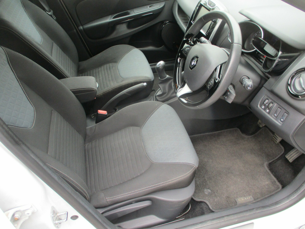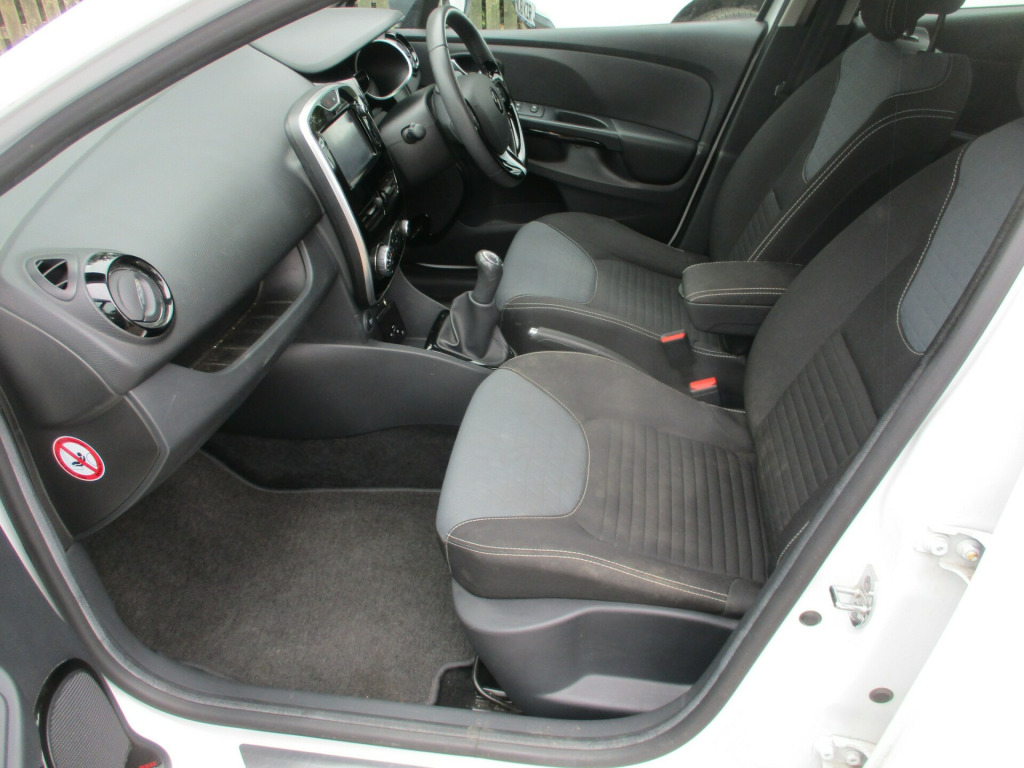 This 2016 Renault Clio 1.5 dCi Dynamique S Nav Hatchback has covered 47000 miles and comes with a Diesel engine. With MOT that expires on 29/06/2026, this 5-door hatchback has 5 seats and is ULEZ compliant, making it a practical and eco-friendly choice for city driving. The car comes with GT Line Look Pack and is finished in Glacier White. Inside, it boasts a 1.2L storage shelf above the glovebox, as well as 2x storage spaces for cups and miscellaneous items near the handbrake. Additionally, the car features a 4L front glovebox, providing ample storage space for everyday needs. With its sleek design and efficient diesel engine, this Renault Clio offers a stylish and economical driving experience. 2l storage shelf above glovebox, 2x storage spaces for 2 cups and miscellaneous items near handbrake, 4l front glovebox, armrest - front centre with storage compartment, centre console - gloss black - dashboard inserts - gloss black - air vent surrounds with matt chrome adjusters, climate control - automatic with one touch demist function and air quality regulator, dashboard - soft touch dark carbon, front speaker surrounds - gloss black with red bass reflex logo, gear knob insert - matt chrome, handbrake button - matt chrome, headrests - front height adjustable - srp - system for restraint and protection, headrests - rear x3, heating system with pollen filter, instrument dial surrounds - matt chrome, seats - 60-40 split folding rear, seats - drivers height adjustment, small storage area by gear stick for phone-keys, steering wheel - height and reach adjustable, steering wheel - leather with chrome insert, storage space 1.2l - 1x front door, windscreen wipers - variable speed, 12v power socket, renault medianav, usb connection, 17in alloy wheels - desire with black inserts, b-pillar - gloss black, bumpers - body coloured, chrome window surrounds, clio inscribed under renault diamond badge, door handles - body coloured - front, door handles - interior matt chrome, door mirrors - black gloss - electrically adjustable and heated, electric windows - front, electric windows - rear, exterior chrome touches - side door- boot lid strip and front grille strips, lightly tinted windows, lower door protector - black gloss with chrome insert, rear engine badge, rear spoiler - body coloured, strip base of bootlid - chrome, tyre inflation kit, abs - anti lock brakes, airbags - deactivation - front and side - driver and passenger, anti drill door locks, anti-pinch function on electric windows, deadlocking, driver seat belt height adjustable, driver and passenger front - side - head and thorax airbags, eba - emergency brake assist, ebd - electronic brake distribution, esc - electronic stability control, etc - electronic traction control, electric child safety locks on rear doors activated via a switch on the drivers door panel, hsa - hill start assist, handsfree keycard with push button start-stop function, isofix - child seat fixing points - outer rear seats, raid - renault anti intruder device, rear wiper, remote central locking with thatcham approved immobiliser - thatcham cat 2, seatbelt warning sound, steering wheel base - gloss black, automatic headlights and wipers, daytime running lights - led, front fog lights, headlights - halogen double optic with black surround, body coloured parking sensors - rear, cruise control with speed limiter, eco mode, front dash warning indicator in case of heavy braking, gear change indicator, power assisted steering - electric variable, trip computer, tyre pressure warning light