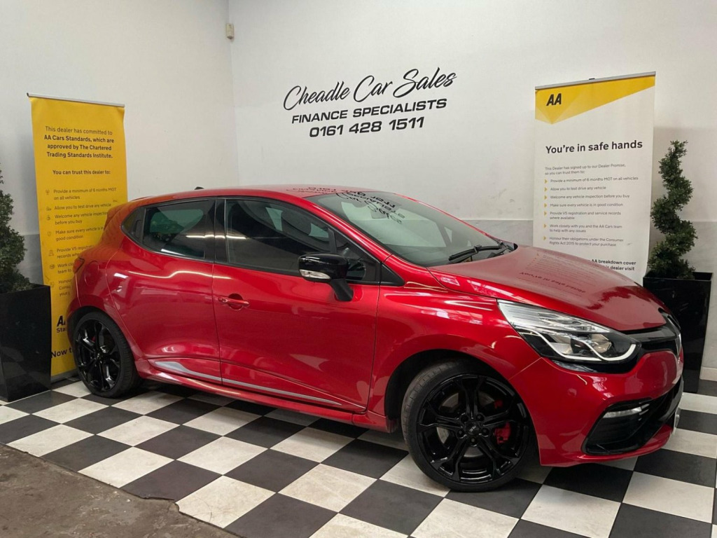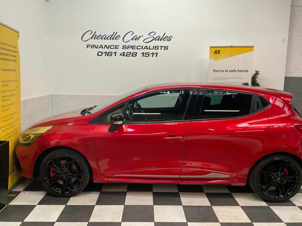 Here we have this very rare Renault Clio RS 1.6 TCe 197 BHP Auto in Flame Red Metallic, with Gloss Black Alloys & Gloss Black Mirror Caps, Complimented with Renault RS Sports Seats in Black Velour trim with Flame Red Stitching. 103,000 genuine miles, 3 Previous owners, Fantastic specification including Radio Cd Stereo, Trip Computer, electric windows, Electric Mirrors, Aircon, Climate, Chunky Leather Sports RS Steering wheel, etc. Looks & drives superb, Excellent original condition throughout. Super smooth Auto box. this is a real wolf in sheeps clothing. usual RS handling. This will come with a fresh new 12 months MOT, Full Service. Viewing & Test drive highly recommended.For the fastest response or more information, please contact us on Whatsapp: 07572 413 333. For the fastest response or more information, please contact us on Whatsapp: 07572 413 333. UK Wide delivery is available, with free delivery within 60 miles. Additional pictures can be found on our website at www.cheadlecarsales.co.uk. We offer a range of services including finance options, accepting debit and credit cards, bank transfers, MOTs, part exchanges, delivery and collection, finance settlements, and Hpi reports. There are several reasons to buy from us, including being an AA trusted dealer, having 5-star Auto Trader reviews, offering click and collect, welcoming AA and RAC inspections, considering good or poor credit history for finance options, providing same day drive away, and offering 12 months of free AA breakdown cover. Our location is at Cheadle Car Sales Ltd, Unit 8, Brookfield Road, Stockport, SK8 2PN. To apply for finance, please visit our website at www.cheadlecarsales.co.uk. Look\",N,Y,,UK,,Used,,,6995,,,