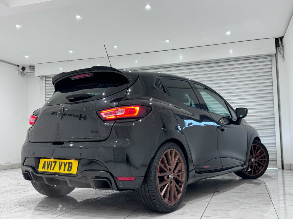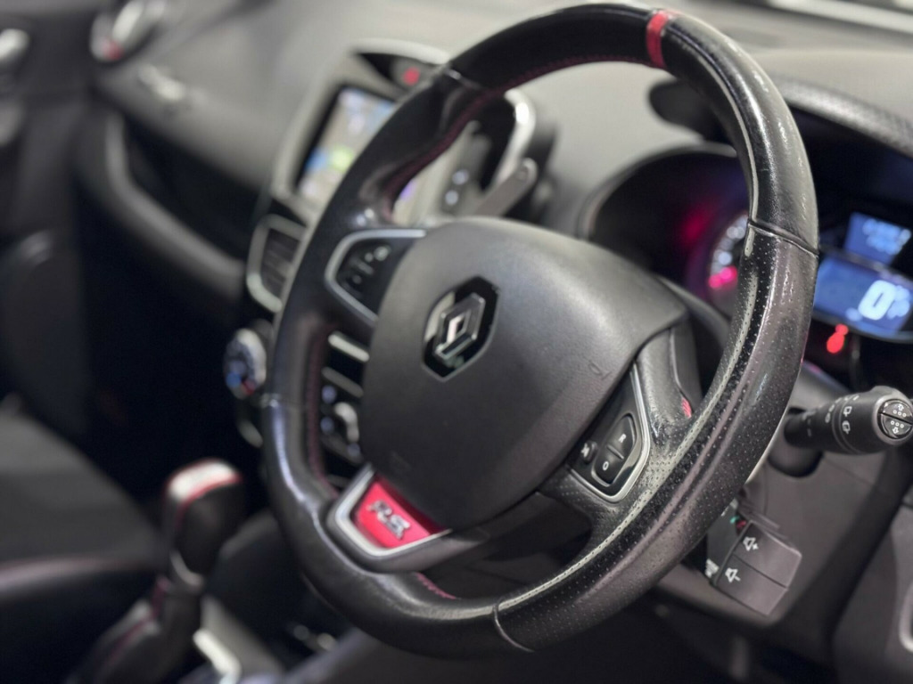 P/X WELCOME**METALLIC BLACK**MOT TILL FEBRUARY 2027**HPI CLEAR (report available)**FROM 3 MONTHS TO 24 MONTHS WARRANTY AVAILABLE**HEALTH CHECKED***Aux Input,Alloys,Air condition,Alarm,Electric Windows,Sat Navigation,Cruise Control,Bass Reflex Sound System,Electric Mirrors,Reverse Camera,Day Running Lights,Xenon Lights,Trip Computer,Climate Control,Cd Player,Remote Central Locking,Dab Radio,Privacy Glass,Parking Sensors,Rain Sensor,Cup Holder**WE ACCEPT ALL MAJOR CREDIT AND DEBIT CARDS**AMERICAN EXPRESS WELCOME** 2l storage shelf above glovebox, 12v power socket, 18in alloy wheels - black renault sport, 2 storage spaces for 1 cup and miscellaneous items near handbrake, 4l front glovebox, abs with eba - emergency brake assist, airbags - deactivation - front and side - driver and passenger, anti drill door locks and locking fuel cap, anti-pinch function on front electric driver window, automatic climate control with one touch demist function and air quality regulator, automatic headlights and front wipers, body coloured lower front bumper with anthracite f1 style front blade, bumpers - body coloured, chassis - trophy, climate pack, cruise control with speed limiter, dashboard - soft touch dark carbon with renault sport logo, daytime running lights - led, deadlocking, driver seat belt height adjustable, driver and passenger front - side - head and thorax airbags, ebd - electronic brake distribution, esc - electronic stability control, etc - electronic traction control, electric windows - front and rear, exterior door handles - body coloured, exterior door mirrors - black gloss - heated and electrically adjustable and folding, exterior rear hidden door handles, extra tinted windows - rear and tailgate, flag shaped rs vision led signature, front dash warning indicator in case of heavy braking, front fog lights, front and rear no seatbelt warning sound, gear change indicator, hsa - hill start assist, handbrake - leather surround - red stitching, handsfree keycard with push button start-stop function, headlights - full led, headrests - rear x3, heating system with pollen filter, isofix child seat fixing points on rear outermost seats, kick plates - renaultsport, led interior lighting and courtesy mirror - electrochrome rear view mirror, lower door protector - body coloured with chrome insert, matt red door panel insert - gear gaiter surround and gear stick insert, pedals - aluminium, power assisted steering - electric variable, raid - renault anti intruder device - automatic door locking, rs drive - normal - sport and race mode, rs name inscribed under renault diamond badge, rear diffuser - anthracite with rectangular chrome twin exhaust, rear door and window child locking function for rear doors, rear parking camera, rear parking sensors, rear seats - 60-40 split and fixed base, rear spoiler - renault sport body coloured, rear wiper, red brake calipers, remote central locking with thatcham approved immobiliser - thatcham cat 2, renault sport leather steering wheel with double red stitching and red insert with rs badge and paddle shifts, seats - drivers height adjustment, side door skirts - body coloured, single rear fog light, steering wheel - height and reach adjustable, techno pack, trip computer, tyre inflation kit, tyre pressure warning light, usb socket and jack, windscreen wipers - variable speed, akrapovic exhaust, renault sport monitor v2 - on-board telemetry performance tracking system, bose premium sound system with r-link, rs black pack
