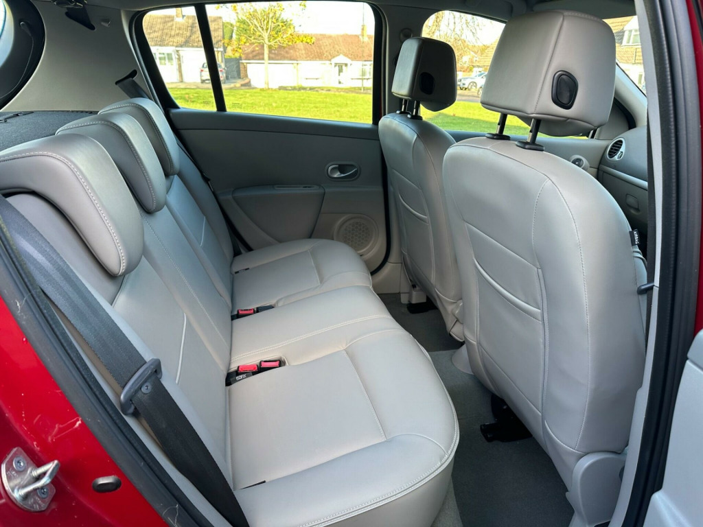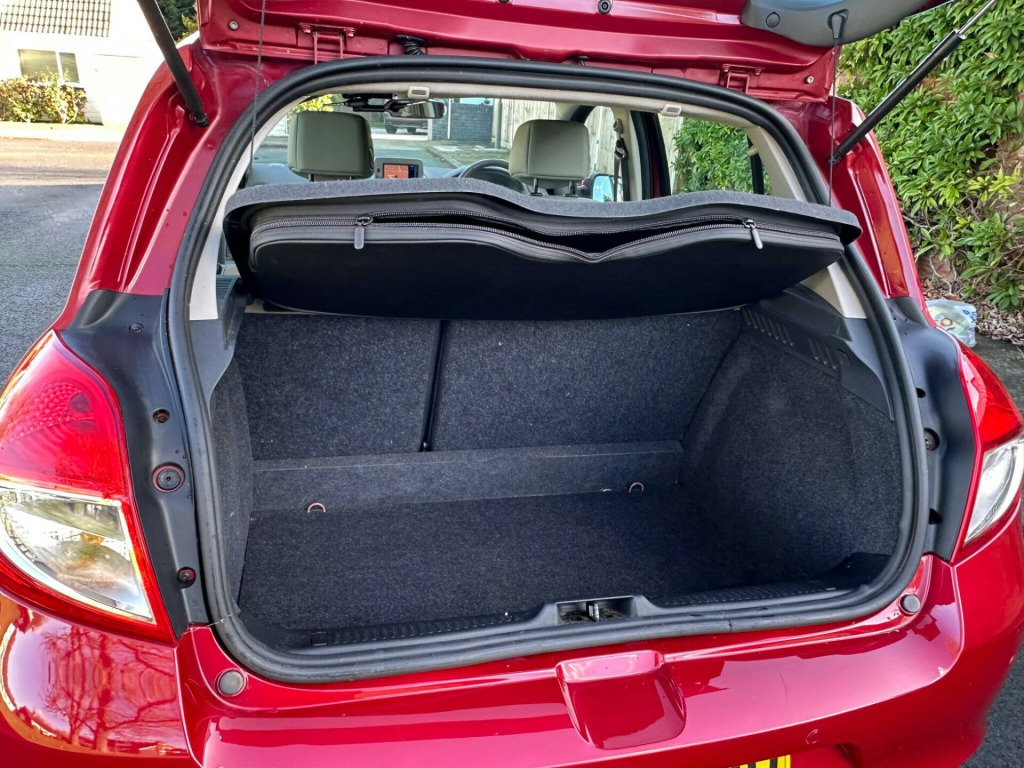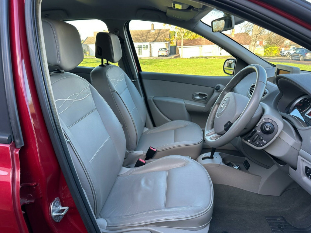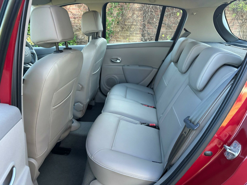 Finished in metallic burgundy with grey leather, service history, alloys, air conditioning, electric windows/mirrors, satellite navigation , cup holders, very low mileage Ulez compliant , top of the range Clio! Comprehensive warranties available . Please call for new address. ige interior trim, full size spare wheel, tyre puncture repair kit
