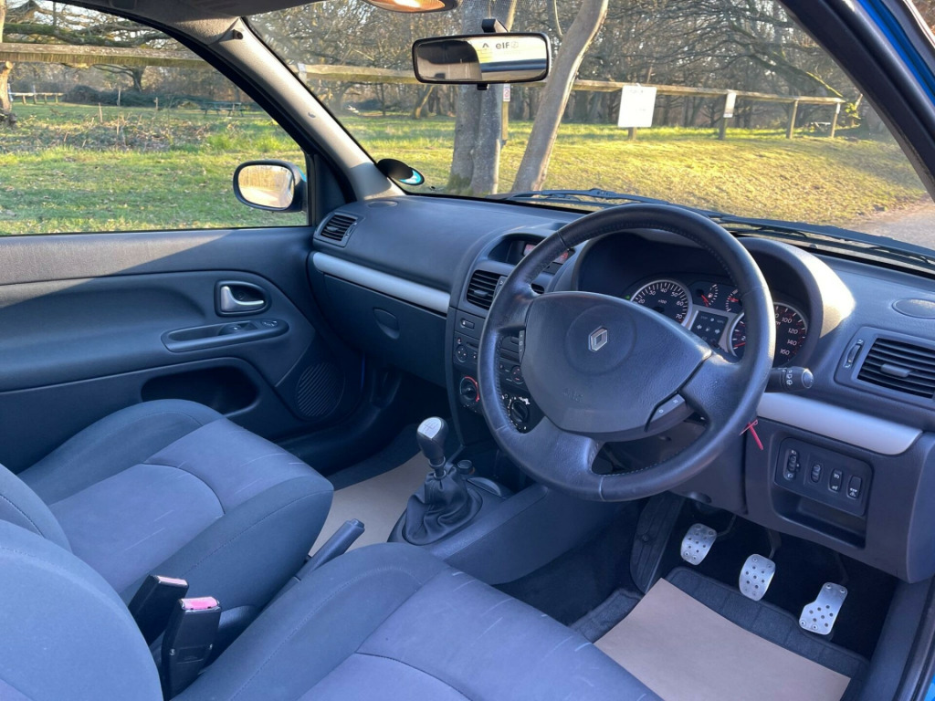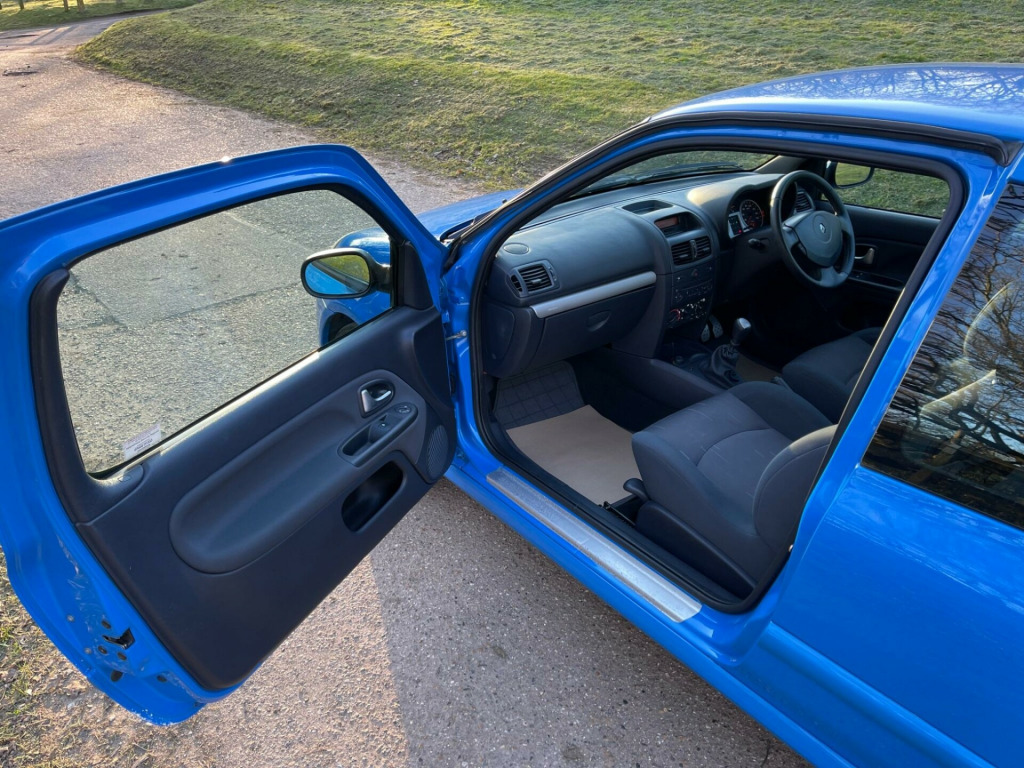 Renault Clio 2.0 16v Renaultsport Cup 3dr, FULL UP TO DATE SERVICE HISTORY, 1 FAMILY OWNER FROM NEW, UNMODIFIED, CAR RUNS AND DRIVES AMAZING AND HASNT BEEN UNTOUCHED BY THE OWNER, EXTREMELY CLEAN CAR INSIDE AND OUT WITH GREAT BODYWORK, VERY LOW MILEAGE CAR FINISHED IN RACING BLUE THIS IS AN EXTREMELY CLEAN EXAMPLE OF A FUTURE CLASSIC, CAR COMES WITH ELECTRIC WINDOWS AND ELECTRIC ADJUSTABLE WING MIRRORS, DUAL EXHAUST, RADIO, WHITE SEATBELTS PAIRED WITH GREY PATTERNED CLOTH INTERIOR, ORIGINAL CLIO FLOOR MATS, 12V SOCKET AND MANUAL HANDBRAKE, CAR RUNS AND DRIVES AMAZING AND IS A LOVLEY EXAMPLE, VIEWING STRICTLY BY APPOINTMENT ONLY, ANY PX CONSIDERED, FCA REGULATED, ALL IN HOUSE FINANCE ARRANGED THROUGH OUR LARGE PANEL OF LENDERS, AA APPROVED DEALER, 12 MONTHS FREE AA BREAKDOWN INCLUDED. ont fog lamps, xenon double optic headlamps, cup suspension (renaultsport 182 only), cup spoiler pack (renaultsport 182 only), renault i.d special paint, air conditioning, climate control, electronic stability programme, front lateral airbags