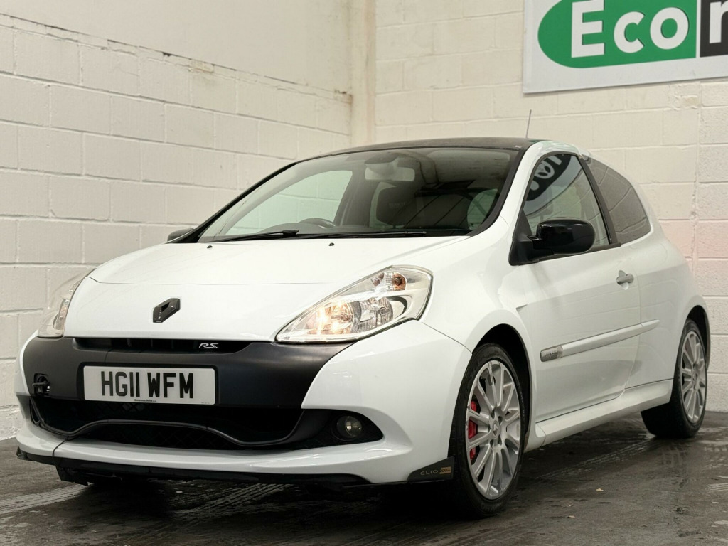 This 2011 Renault Clio Renaultsport offers an exhilarating driving experience, boasting a powerful 2.0L petrol engine that delivers impressive performance. As a Renaultsport model, this Clio is designed for those who appreciate dynamic handling and responsive acceleration.With a swift 0-62mph time of just 6.9 seconds, this Clio Renaultsport demonstrates its sporting pedigree. This acceleration figure indicates a significant advantage over many other vehicles in its class, providing a truly engaging drive for enthusiasts. in renaultsport alloy wheels, 4 x 20w radio & cd & mp3 player, anti submarining airbag on front seats, black headlight surrounds, black rear diffuser, black gloss door mirror housings, body coloured bumpers, driver seat lumbar adjustment, electrically adjust & heated door mirrors, front passenger seat isofix location point, satin chrome detail on soft touch dash, sports front seats, zinc grey centre console, zinc centre console & dashboard detailing