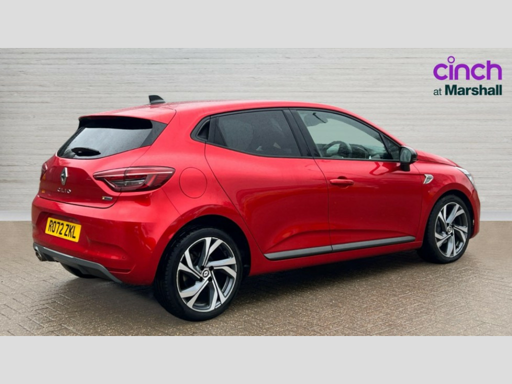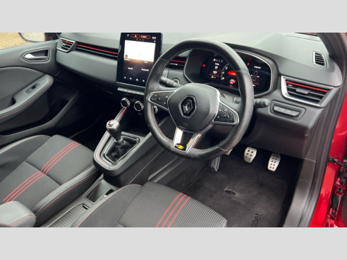 Renault Clio 1.0 TCe 90 RS Line 5dr 10" TFT Driver information display, Apple car play/Android Auto, Cruise control + speed limiter, E-call, Easy link navigation with 9.3" touchscreen+4x20W amplifier+FM DAB double tuner, sound auditorium, 2xUSB/1xjack/bluetooth, smartphone integration plus, Eco mode driving function, Front parking sensors, Gear change indicator, Lane departure warning system, Lane keep assist, Over speed prevention, Rear parking sensors, Rear view camera, Traffic sign recognition, Trip computer, Variable assistance electric PAS, Wireless phone charger, Auto dimming rear view mirror, Auto light control and rain sensing wiper, Automatic headlights, Body colour door handles, Body coloured bumpers, Body coloured rear spoiler, Chrome exhaust tailpipe, Chrome front grille, Drivers one touch window with anti-pinch feature, Electric front windows, Electric rear windows, Exterior rear hidden door handles, Extra tinted glass on rear windows + tailgate, Full C-shape LED front and rear signature lighting, Full LED front and rear headlamps integrating daytime running lights at the front and rear, Gun Metal insert on lower side doors with Clio embossing, LED front fog lights, LED Roof light, LED third brake light, Manual folding wing mirror mechanism, Manually adjustable door mirrors, Rear fog lights, Rear side wing doors, Rear wiper, RS Line badging, RS Line exterior styling, RS Line sports front bumper, RS Line sports lower grill, RS marker chrome gun metal grey sport rear bumper with chrome oval exhaust pipe, Shark fin antenna, Variable speed on front windscreen wipers, Wing Mirror design - non-body coloured, 12V Accessory socket, 3 rear height adjustable headrests, 3 seat bench in 2nd row, 6.2L front glovebox, 60/40 split and fixed base rear seat bench, Air recirculation control, Auto climate control, Black headlining, Dark roof lining and aluminimum pedal set, Driver's seat height adjustment, Front cupholders, Front decor strip in red, Front door storage bin, Height adjustable front headrests, Height/reach adjust steering wheel, Isofix system on outer rear seats, Luggage nets in boot, Multi function steering wheel, Multisense including ambient lighting and selectable drive modes, Pollen filter, RS branded top grain leather steering wheel, RS Line cloth upholstery, RS Line Interior trim including airvent stripe and gearshifter in red, Single front passenger seat, System for Restraint and Protection SRP-front seats, 3 point seatbelts on all rear seats, ABS+EBA, Active emergency braking system, Curtain airbags, Distance warning alert, Driver and passenger front and side airbag deactivation, Driver/Front Passenger airbags, Electronic parking brake with auto hold, ESC - Electronic Stability Control + traction control, Front side airbags(head+thorax), Height adjustable driver's seatbelt, Hill start assist, Seatbelt warning, Tyre pressure warning, Deadlocking system, Hands free key card with push button, start and stop function, Locking fuel filler cap, RAID (Renault Anti-Intruder Device) with automatic door locking, Rear side wing door and window child locking function (front driver door control panel), Remote central locking with thatcham approved immobiliser, Black side panel personalisation with contouring, 17" RS diamond cut alloy wheels