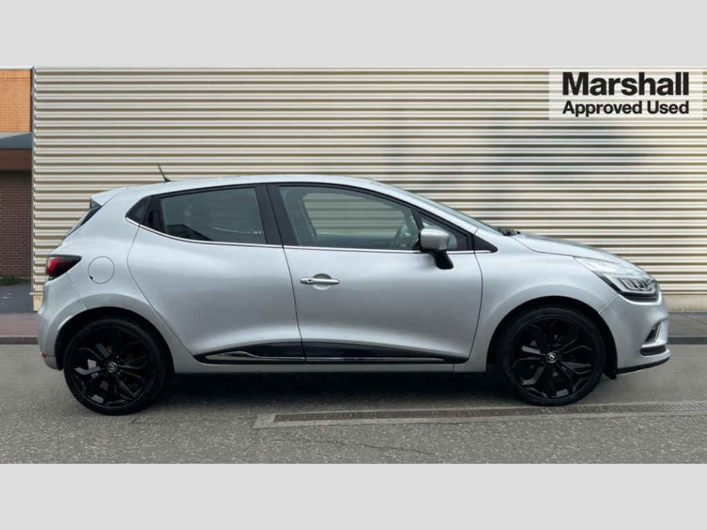 Renault Clio 1.2 TCE Dynamique S Nav 5dr Auto Cruise control + speed limiter, Push button starter, Smartphone cradle, Trip computer, Variable PAS, Aux-in socket, Automatic headlights + automatic windscreen wipers, Black door protector with chrome inserts, Black headlamp surrounds, Body colour door handles, Body coloured bumpers, Body coloured rear spoiler, Chrome tailgate decoration, Chrome window surround, Electric adjustable door mirrors, Electric folding door mirrors, Electric front windows + one touch + anti-pinch, Electric rear windows, Front fog lamps, Heated door mirrors, LED daytime running lights, LED Headlights, Rear wiper, Variable front intermittent wipers, 12V Accessory socket, 3 rear height adjustable headrests, 60/40 split rear seats, Air recirculation control, Auto climate control, Chrome gear knob insert, Chrome interior door handles, Driver's seat height adjustment, Front centre armrest with storage compartment, Front cupholders, Front door storage bin, Glovebox, Height adjustable front headrests, Height/reach adjust steering wheel, Isofix system on outer rear seats, Leather steering wheel with chrome inserts, Multi function steering wheel, Pollen filter, System for Restraint and Protection SRP-front seats, 3 point seatbelts on all rear seats, ABS+EBD+Brake assist, Driver and passenger front and side airbag deactivation, Driver/Front Passenger airbags, Driver/front passenger side airbags, ESP + Traction control + Understeer control, Front side airbags(head+thorax), Height adjustable driver's seatbelt, Hill start assist, Seatbelt warning, Tyre pressure monitoring system, Anti-drill door locks, Child lock control of rear doors and windows, Deadlocking system, Hands free Renault card, Locking fuel filler cap, RAID (Renault Anti-Intruder Device) with automatic door locking, Remote central locking, Thatcham Cat 2 engine immobiliser, Gloss black centre console, Gloss black dashboard inserts, Space saver spare wheel