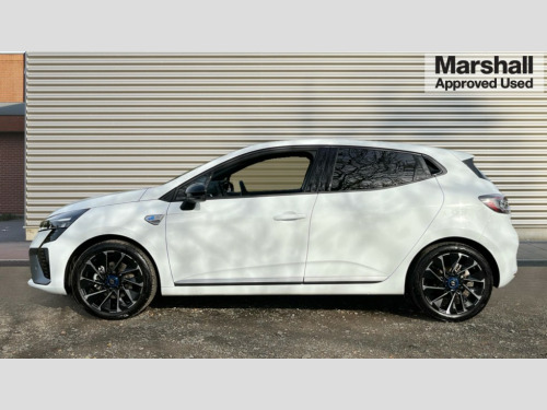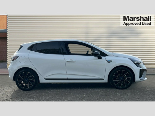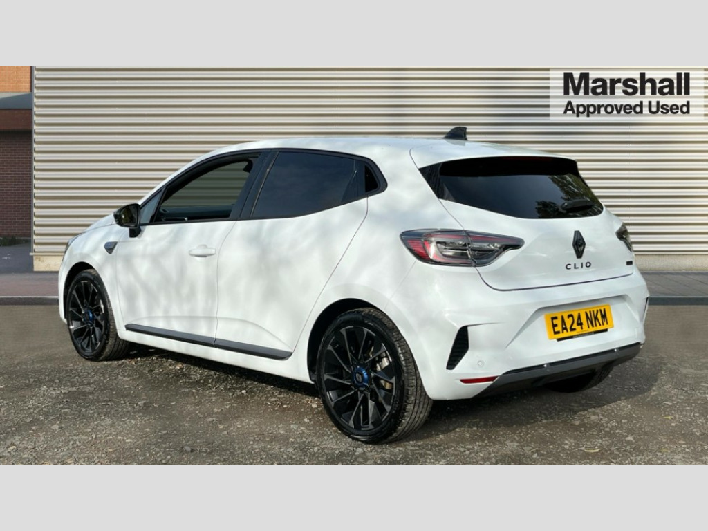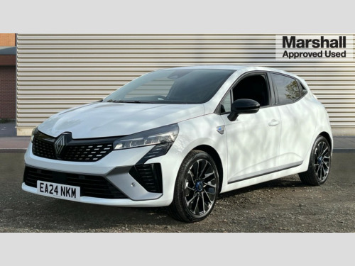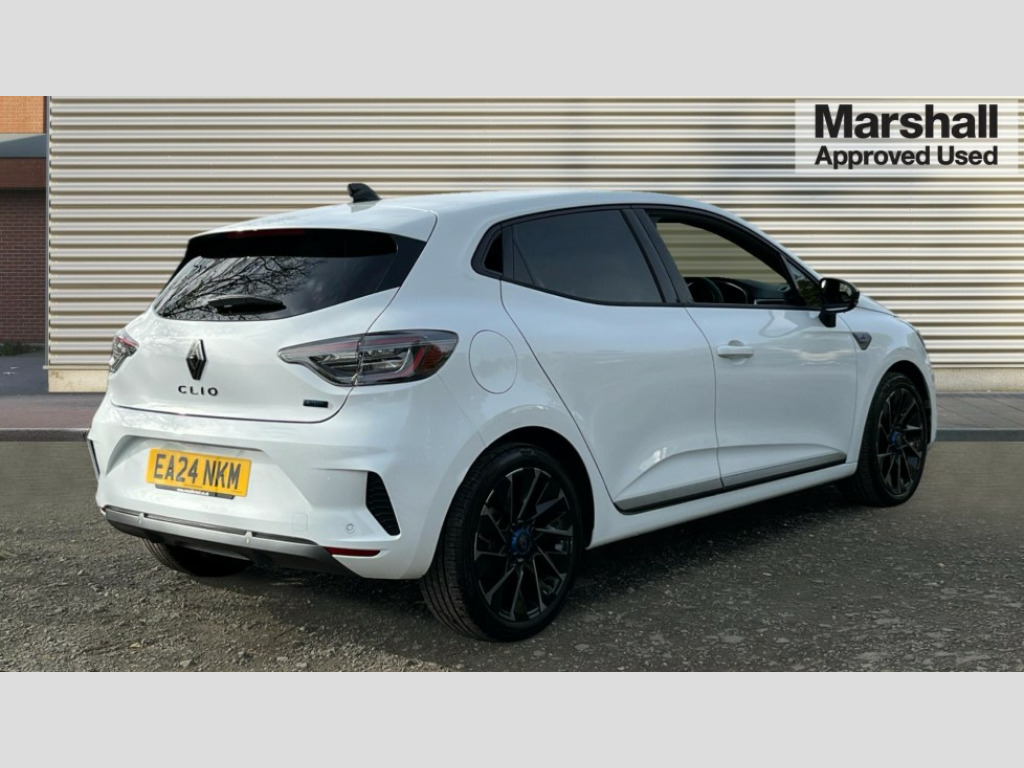 Renault Clio 1.6 E-TECH full hybrid 145 Esprit Alpine 5dr Auto 10" customisable digital driver display, Adaptive cruise control and speed limiter, Apple car play/Android Auto, Blind spot warning, Bluetooth, Easy link 9.3" touchscreen with built in navigation + Wifi smartphone integration plus, Eco mode driving function, Emergency call system, Front parking sensors, Lane departure warning system, Lane keep assist, Over speed prevention, PAS, Rear cross traffic alert, Rear parking sensors, Rear view camera, Traffic sign recognition, Wireless phone charger, 2 USB ports, Arkamys speakers - x6 inc. 2 boomer, 2 tweeter and 2 bicone, DAB/FM Radio, Automatic headlights, Automatic high / low beam, Automatic windscreen wipers, Black auto folding wing mirrors with defrosting and temperature gauge and LED indicator, Body colour bumpers, Body colour door handles, Electric rear windows, Electrically adjustable door mirrors, Electrochromatic frameless rear view mirror with light and rain sensor, Exhaust pipe, Exterior rear hidden door handles, Front and rear LED roof light x 2, Front fog lights, Full LED front and rear headlamps integrating daytime running lights at the front and rear, Heated rear windscreen, LED rear signature lighting, LED third brake light, Matte shadow grey F1 blade, One touch electric front windows, Rear brake light, Rear side wing doors, Rear wiper, Shark fin antenna, Solid paint, Tinted rear windows, 3 rear height adjustable headrests, 3 seat bench in 2nd row, 60/40 split and fixed base rear seat bench, Aluminium pedals, Automatic air conditioning, Centre console with storage and armrest, Fabric seat with synthetic leather detailing upholstery, Heated seats, Heated steering wheel, Height adjustable front headrests, Isofix system on outer rear seats, Mechanical height adjustable front seats, Mottled grey interior roof lining and a pillar, Multisense including ambient lighting, Power supply jack, Single front passenger seat, Sun visor without light, Top grain synthetic leather steering wheel with blue stitching, 3 point seatbelts on all rear seats, ABS+EBA, Automatic emergency braking system, Child locks on rear doors, Curtain airbags, Distance warning alert, Driver and passenger airbags, Electronic parking brake with auto hold, ESC (Electronic Stability Control), Front passenger airbag deactivation, Hill start assist, Seatbelt reminder, Tyre pressure monitor, 2x Black keys, Hands free key card with push button, start and stop function, Superlocking, 17" Esprit alpine diamond cut alloy wheels