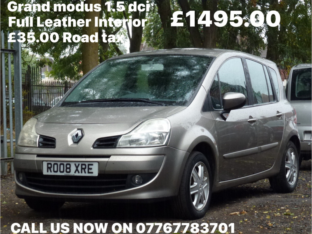 2008 RENAULT GRAND MODUS 1.5 DCi DYNAMIQUE 5dr HATCHBACK, 95000 Miles, Finished In Metalic Grey With Full Black Leather InteriorTrim, Comes With Alloy Wheels, Electric Windows x4, Electric Mirrors, Air Conditioning, Radio CD Player, Remote Audio Controls, Isofix Anchor Points, Front Fog Lights, High Level Rear Brake Light, Remote Central Locking, 2 Keys,95000 Miles,Mot Till 31/08/2026,12 Months Road Tax £35.00,Full Service History,13 Service Stamps To 77119, Insurance Group 8E,Call To Arrange A Viewing 07767783701,50 Plus Cars Available Visit Websiteferriswheels.co.uk,Home Delivery Service Available.£1595.00We Are Located Just 5 Mins Off Junction 9, M6, Wednesbury, WS10 0DX, Viewing Welcome Give Us a Call (recommended) The Sales Team Will Be Happy To Help. Alternativley Visit Our Website Where You Can Book A Test DriveCall 07767783701TextWhatsApp FacebookInstagram, terior temperature gauge, lights on warning, oil level gauge with time delay, rev counter, trip/total mileage recorder with digital display, variable pas, 'guide me home' headlamps, 'smart' rear windscreen wiper, body coloured bumpers with protective inset, body coloured door mirrors, driver, electric adjustable/heated/folding door mirrors, electric front windows/one touch facility, electric rear windows, front fog lamps, smart front windscreen wipers, sweep to centre windscreen wipers, tinted glass, air recirculation system, aluminium finish interior door handles, anti submarining front and outer rear seats, baggage cover, dark grey carpets, driver/passenger sunvisors and vanity mirrors, front and rear map reading lights, front courtesy light with time delay, height adjustable driver, height adjustable front/rear head restraints, height adjustable steering wheel, isofix on front passenger and rear outer seats, leather steering wheel and gear knob, load area light, multiple in-dash and under-floor storage features, rear parcel shelf, rear passenger heating ducts, sliding rear bench with 60/40 split folding function, stay put object retaining system in passenger seat, tilt/fully reclining and slide front seats, abs/ebd, brake assist function, curtain airbags, door open warning light, driver, driver/passenger 2 stage auto adaptive airbags, front and rear door side impact beams, front lateral airbags, front passenger airbag deactivation, front seatbelt pretensioners + load limiters, height adjustable front seatbelts, outer rear seatbelt pretensioners, three 3 point rear seatbelts, 'stay shut' system, anti-drill door locks, insurance approved immobiliser, locking fuel filler cap, raid (renault anti-intruder device) with automatic door locking, remote central locking + deadlocks, soft- touch dark carbon dashboard, tyre repair kit, 15'' Alloys