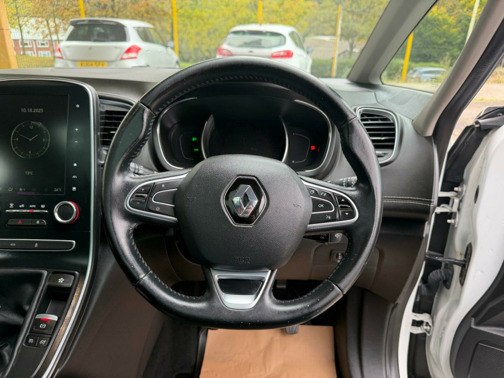 This 2017 Renault Grand Scenic TCe Dynamique S Nav offers a spacious and versatile driving experience for the whole family. With its 1.2 litre petrol engine and Euro 6 emissions classification, this 7 seater model is designed for both efficiency and comfort. The Dynamique S Nav trim level comes equipped with a host of desirable features, including a fixed panoramic glass sunroof with an electric sunblind, providing an airy cabin atmosphere.Enjoy effortless parking with the rear parking camera and sensors, complemented by the R Link 2 multimedia system featuring an 8.7 inch touchscreen and Bluetooth connectivity. The Arkamys Auditorium 3D sound system with 6 speakers ensures an immersive audio experience. This Grand Scenic boasts a fuel economy of 46 mpg, and its low CO2 emissions indicate it is a more environmentally conscious choice compared to many similar vehicles.. 12V Power Socket - Front, 12V Socket - Rear Centre Console, 20in Alloy Wheels - Exception, 3 Height Adjustable Rear Head Restraints, 3 Point Inertia Reel Seatbelts, 3rd Row Seating - 2 Seats - Foldable into Boot Floor with 3 Point Seat Belts - Cupholders and LED Reading Lights, ABS with EBD - Electronic Brake Distribution and Emergency Brake Assist, AEBS - Advanced Emergency Braking System with Pedestrian Detection, Adjustable Dashboard Illumination, Air Ducts to 2nd Row Passengers Under Front Seats, Air Recirculation, Airbags - Curtain Front and Rear, Airbags - Driver, Airbags - Front Lateral, Airbags - Front Passenger, Arkamys Auditorium 3D Sound System with 6 Speakers, Automatic Dual Zone Climate Control with Air Quality Sensor, Automatic Headlights and Windscreen Wipers, Body Sided Moulding with Chrome Insert, Central Console - Sliding, Child Locks, Chrome Detailing, Cruise Control with Speed Limiter, Dashboard and Upper Door Panels with Stitch Detailing, Daytime Running Lights - LED, Display - Digital Speedometer - 7in TFT Screen, Door Handles - Body Coloured with Chrome Inserts, Door Mirrors - Body Coloured, Door Mirrors - Electrically Operated - Heated - Folding, Door-Boot Open Warning Light, Driver and Front Passenger LED Reading Lights and LED Central Light, Driver and Front Passenger Seat with Rear Mounted Storage Pockets and Aviation Tables, Driver and Passenger Sunvisors with Vanity Mirror and Light, ESP - Electronic Stability Programme with Understeer Control, Eco Mode Button, Electric Windows - Front One Touch, Electric Windows - Rear, Electrochromatic Rear View Mirror, Electronic Parking Brake, Exterior Temperature Indicator, Extra Comfort Front Headrests, Extra Tinted Windows - Rear and Tailgate, Fatigue Alert, Fingertip Audio System Remote Control, Front Fog Lights, Front and Rear Towing Rings, Gear Change Indicator, Gear Knob - Leather and Satin Chrome, Glovebox Light, HSA - Hill Start Assist, Head Up Display - Colour with Adjustable Brightness, Headlights - Halogen, Heated Rear Windscreen with Wash-Wipe, ISOFIX - Child Seat Fixing Points - Outer Rear Seats and Front Passenger, Illuminated Luggage Compartment on Opening of Boot, In Car Entertainment Connections, Indicators with Side Repetitions, Insurance Approved - Category 1 Alarm System and Immobiliser, Insurance Approved Locks and Ignition Barrel, Integrated Fuel Filler Cap, Interior Courtesy Light Controlled By All 4 Doors, Keycard - Hands Free, LED Indicators in Door Mirrors, LED Reading Lights for 2nd Row Passengers, LED Tail Lights, Leather Steering Wheel, Load Limiters, Low Fuel Level Warning Light, Multi Position Trunk Floor, Multisense System - Ambient Lighting and Driving Modes Selector, Oil Pressure Warning, One Touch Folding 2nd and 3rd Row Seats, Panoramic Fixed Glass Sunroof with Electric Sunblind, Passenger Height Adjustment Seat, Pollen Filter, Power Assisted Steering, Puddle Lighting in Door Mirrors, R-Link 2 Multimedia System - 8.7in Touchscreen, RAID - Renault Anti Intruder Device - Auto Closure - 6mph, Rear Parking Camera, Rev-Counter, Roof Rails - Longitudinal, Seatbelts Not Fastened Warning, Seats - Drivers Height and Lumbar Adjustment, Seats - Fold Flat, Seats - Height Adjustable Front Seatbelts with Double Pretensioners, Start and Stop Button, Steering Wheel - Rake and Reach Adjustable, Sunblinds - Second Row Rear Windows, Superlocking, Trip Computer, Tyre Inflation Kit, Tyre Pressure Monitoring System, Visio System. Part service history