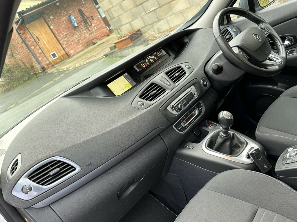 Glacier White, 130 PS, 6 speed, 7 seats, 2 owners, the last Vicar from 18 months old, 125000 miles, 13 mostly Renault service stamps with receipts, last serviced 2000 miles ago, new rear brake discs and pads just fitted. In remarkable condition throughout, faultless driver, undamaged odour free interior, this car belies its mileage and has the look and feel of a 60,000 mile car, Michelin tyres all round, probably one of the nicest available. Equipped with satellite navigation, climate control, cruise control with speed limiter, electric panoramic sunroof and windows, keyless entry and start, alarm, automatic headlights and wipers, powerfold mirrors, stop/start, ABS, ESP, front/side/curtain airbags, ISOFIX, undamaged 16 alloy wheels, factory privacy glass, rear parking sensors, CD player, AUX/USB ports, Bluetooth, towbar. MOTd until 31/08/2026, only £35 a year to tax, complete with handbook pack and two keys. PART EXCHANGE welcome, VIEWING BY APPOINTMENT ONLY, PLEASE E-MAIL OR PHONE THE NUMBERS PROVIDED TO ARRANGE. E&OE
