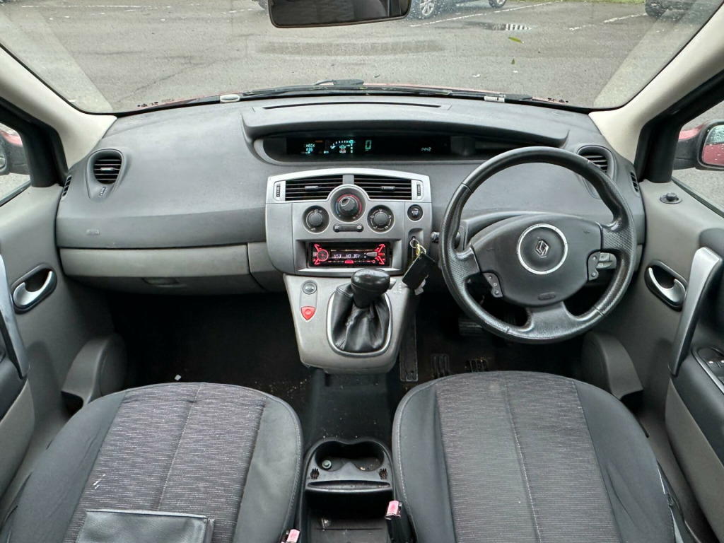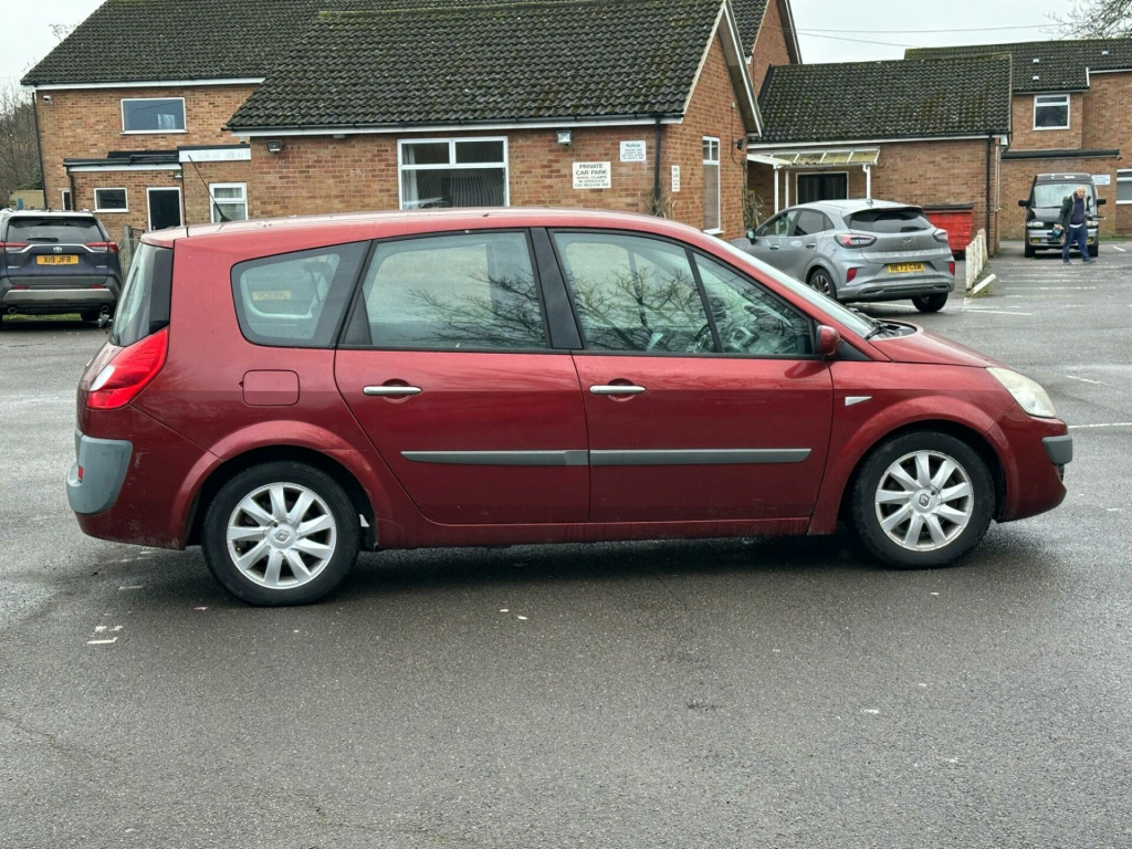 This 2008 Renault Grand Scenic VVT Dynamique offers excellent value with only three previous owners and a clear vehicle history check. Powered by a 2.0 litre petrol engine, this Dynamique trim model provides a comfortable and practical driving experience.This Grand Scenic is in a low insurance group, which could mean more affordable motoring. Its well maintained provenance and sensible ownership history suggest a car that has been looked after, making it a sensible choice for families or individuals seeking a reliable and spacious vehicle. justable steering column/wheel, air bag driver, air bag passenger, air bag side, air conditioning, alarm, alloy wheels - 16in nervastella, anti-lock brakes, body coloured bumpers, central door locking, centre rear seat belt, computer (driver information system), deadlocks, electric windows (front/rear), front fog lights, head air bags, head restraints, immobiliser, leather steering wheel and gear knob, mirrors external, mirrors internal, power socket, power-assisted steering, seat height adjustment, seat lumbar support, side protection mouldings, single cd rds radio with 6 speakers, steering wheel mounted controls (audio), upholstery cloth