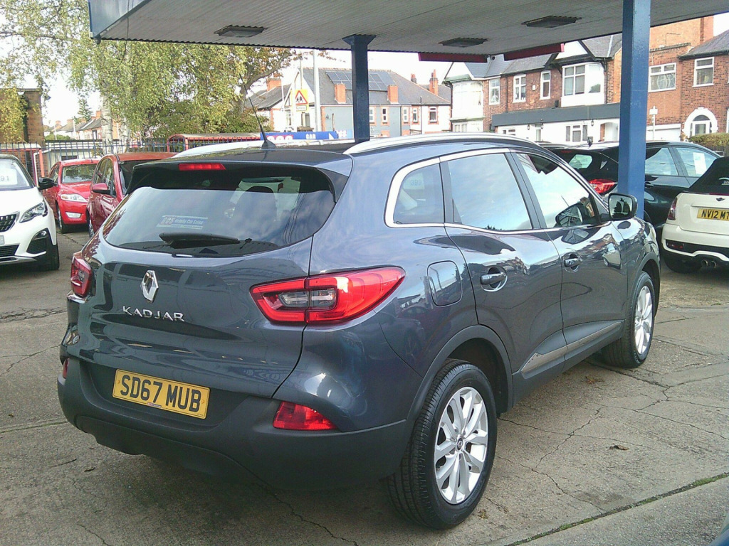 This 2017 Renault Kadjar TCe Dynamique Nav boasts an exceptionally low mileage of just 48,107 miles for its age, offering excellent value. This Euro 6 compliant 1.2 litre petrol model comes with a clear vehicle history check and a warranty for one month, ensuring peace of mind. Its MOT is valid until October 2026, and it features a hands free keycard for keyless entry, automatic dual zone climate control, and an Arkamys 3D sound DAB radio with Bluetooth and USB connectivity. For seamless smartphone integration, it includes both Android Auto and Apple CarPlay. The Kadjar Dynamique Nav stands out with its impressive fuel economy, achieving up to 50 miles per gallon, which is a significant advantage for running costs. Furthermore, its low CO2 emissions and low insurance group indicate that it is more economical to own and run compared to many other vehicles in its class. This combination of efficiency, technology, and practicality makes this Renault Kadjar a compelling choice. Autotrader have marked it as ''GOOD PRICE'' so you can be confident you are getting a great deal. We have been selling quality used cars in Leicester for over 18 years and our reputation for value for money is legendary. Our many positive reviews on AutoTrader which are currently in excess of 1360 will surely impress to give you the confidence to choose buying from us and 90% of reviews gave us a 5 star rating. Call today to arrange a no obligation test drive with one of our professional friendly sales team. All our vehicles are put through our workshop and come serviced and MOT`d & For even greater reassurance, from November 2018 all our vehicles come with 12 months AA breakdown cover. AA/RAC inspections welcome, part exchange possible, finance available. Every effort has been made to ensure the accuracy of the above information but errors may occur, Due to model changes specification may vary, please check with a sales person. All our vehicles come with a 1 month warranty with upgrades to 12 month available from £1 per day, HPI clear, warranted mileage. OPEN 7 DAYS A WEEK - 520142-DF. 17in Alloy Wheels - Athena, 3 Point Inertia Reel Seatbelts, ABS with EBD - Electronic Brake Distribution and Emergency Brake Assist, Accessory Power Point, Adjustable Dashboard Illumination, Air Recirculation, Airbags - Drivers Two Stage Auto Adaptive, Airbags - Front Lateral, Airbags - Front Passenger Deactivation, Airbags - Front Passengers Two Stage Adaptive, Airbags - Front and Rear Curtain, Android Auto, Anti-Drill Door Locks and Ignition Barrel, Apple CarPlay, Arkamys 3D Sound 4x35W DAB Radio with Bluetooth and USB Connection, Armrest - Front Centre, Assisted Parking Brake, Automatic Headlights and Windscreen Wipers, Body Sided Moulding with Chrome Insert, Chrome Detailing, Chrome Window Surrounds, Climate Control - Automatic Dual Zone, Climate Pack, Courtesy Lights - Rear, Cruise Control with Speed Limiter, Daylight-Nightlight Rearview Mirror, Daytime Running Lights - LED, Display - Digital Speedometer - 7in TFT Screen, Door Handles - Body Coloured - Front, Door Mirrors - Body Coloured Shell, Door-Boot Open Warning Light, Driver and Passenger Seat Belt Undone Warning Audible Alert, Dust Protection Kit, ESP - Electronic Stability Programme with ASR - Anti-Skid Regulation and UCL - Understeer Logic Control, Eco Mode, Electric Windows - Front, Electric Windows - Rear, Electronic Parking Brake, Exterior Temperature Sensor, Extra Tinted Windows - Rear and Tailgate, Fingertip Audio System Remote Control, Fleet Management, Fog Lights with Cornering Function, Front and Rear Towing Rings, Full Flat Floor, Glovebox Light, Gravel Protection Kit, HSA - Hill Start Assist, Headlights - Halogen, Headrests - Front Fully Adjustable, Headrests - Rear Height Adjustable x3, Heated Rear Windscreen, Heating Ducts to Feet of Rear Passengers, Height Adjustable Front Seat Belts, ISOFIX - Child Seat Fixing Points - Outer Rear Seats, Indicators with Side Repetitions, Insurance Approved - Category 1 Alarm System and Immobiliser, Integrated Fuel Filler Cap, Interior Courtesy Light Controlled By All 4 Doors, Keycard - Hands Free, Low Fuel Level Warning Light, Luggage Compartment - Illumination, Multi Position Trunk Floor, Oil Level Gauge, Pollen Filter, Power Assisted Steering, Protective Rear Brake Disc, RAID - Renault Anti Intruder Device, Rain Protection Kit, Reading Lights - Driver and Front Passenger, Rear Seat Belt Undone Warning Audible Alert, Rev-Counter, Roof Rails, Satellite Navigation - R-Link v2 System, Seats - 3-Seat Rear Bench, Seats - 60-40 Split Folding Rear, Seats - Drivers Lumbar Adjustment, Seats - Height Adjustable Front Seatbelts with Double Pretensioners, Side Impact Protection Bars, Steering Wheel - Leather, Steering Wheel - Rake and Reach Adjustable, Sun Visor - Mirror Without Light, Superlocking, Trip Computer, Tyre Inflation Kit, Tyre Pressure Monitoring System, USB Connection, Visio System, Windscreen Wipers - Front with Variable Speed Adjustment, Windscreen Wipers - Rear.