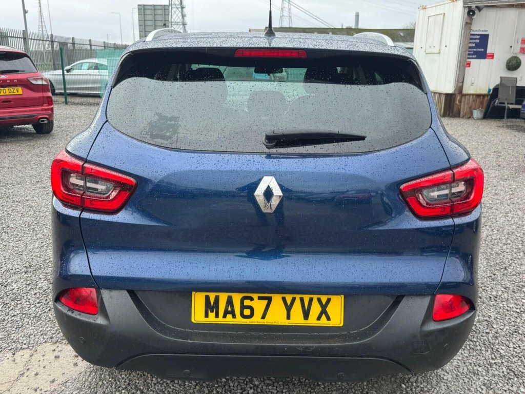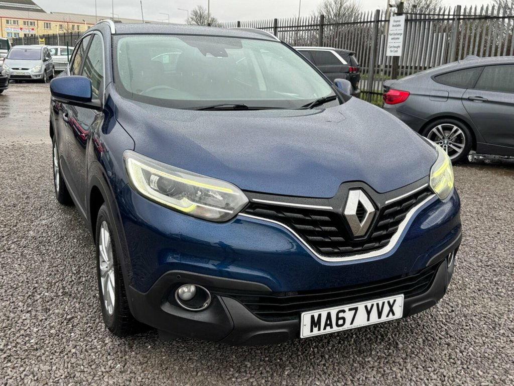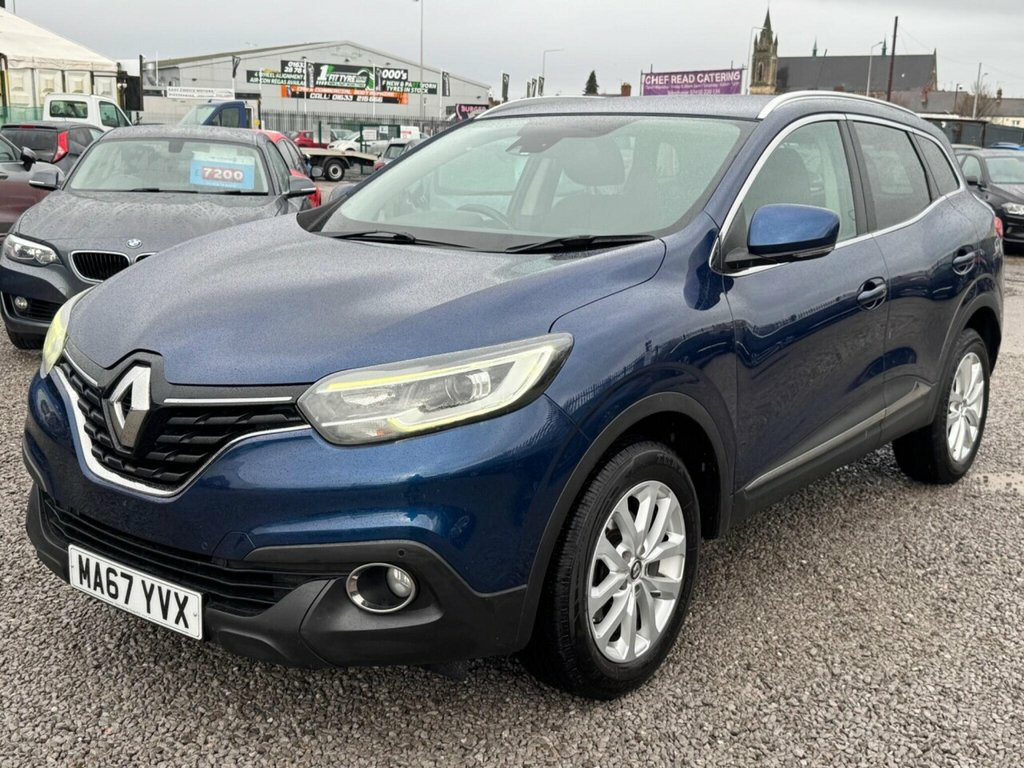 This 2017 Renault Kadjar TCe Dynamique Nav boasts a clear vehicle history, offering you peace of mind. This stylish SUV is equipped with a 1.2 litre petrol engine and meets Euro 6 emissions standards. Inside, you'll find a wealth of technology designed for convenience and entertainment, including Android Auto and Apple CarPlay for seamless smartphone integration. The Dynamique Nav trim also features automatic dual zone climate control, automatic headlights, and an Arkamys 3D sound system with DAB radio, Bluetooth, and USB connectivity. A NEW MOT AND SERVICE COMPLETED 24/01/2026 ULEZ-DAB-SAT NAV-APPLE & ANDROID CARPLAY-CRUISE CONTROL-ISOFIX-PARKING SENSORS - LIVE VIDEO AVAILABLE - ALL CARS COME WITH A NATION WIDE WARRANTY & ARE HPI CHECKED-NO ADMIN FEES-HOME DELIVERY AVAILABLE- PX WELCOME -Trading standard Approved -FINANCE AVAILABLE & ALL CREDIT SCORES CONSIDERED The Kadjar TCe Dynamique Nav stands out with its impressive fuel economy, achieving up to 50 miles per gallon, which is better than many similar vehicles. Furthermore, its low CO2 emissions and low insurance group rating indicate that running costs are kept to a minimum, making it an economical choice for everyday driving. 17in Alloy Wheels - Athena, 3 Point Inertia Reel Seatbelts, ABS with EBD - Electronic Brake Distribu, Accessory Power Point, Adjustable Dashboard Illumination, Air Recirculation, Airbags - Drivers Two Stage Auto Adaptiv, Airbags - Front Lateral, Airbags - Front Passenger Deactivation, Airbags - Front Passengers Two Stage Ada, Airbags - Front and Rear Curtain, Android Auto, Anti-Drill Door Locks and Ignition Barre, Apple CarPlay, Arkamys 3D Sound 4x35W DAB Radio with Bl, Armrest - Front Centre, Assisted Parking Brake, Automatic Headlights and Windscreen Wipe, Body Sided Moulding with Chrome Insert, Chrome Detailing, Chrome Window Surrounds, Climate Control - Automatic Dual Zone, Climate Pack,