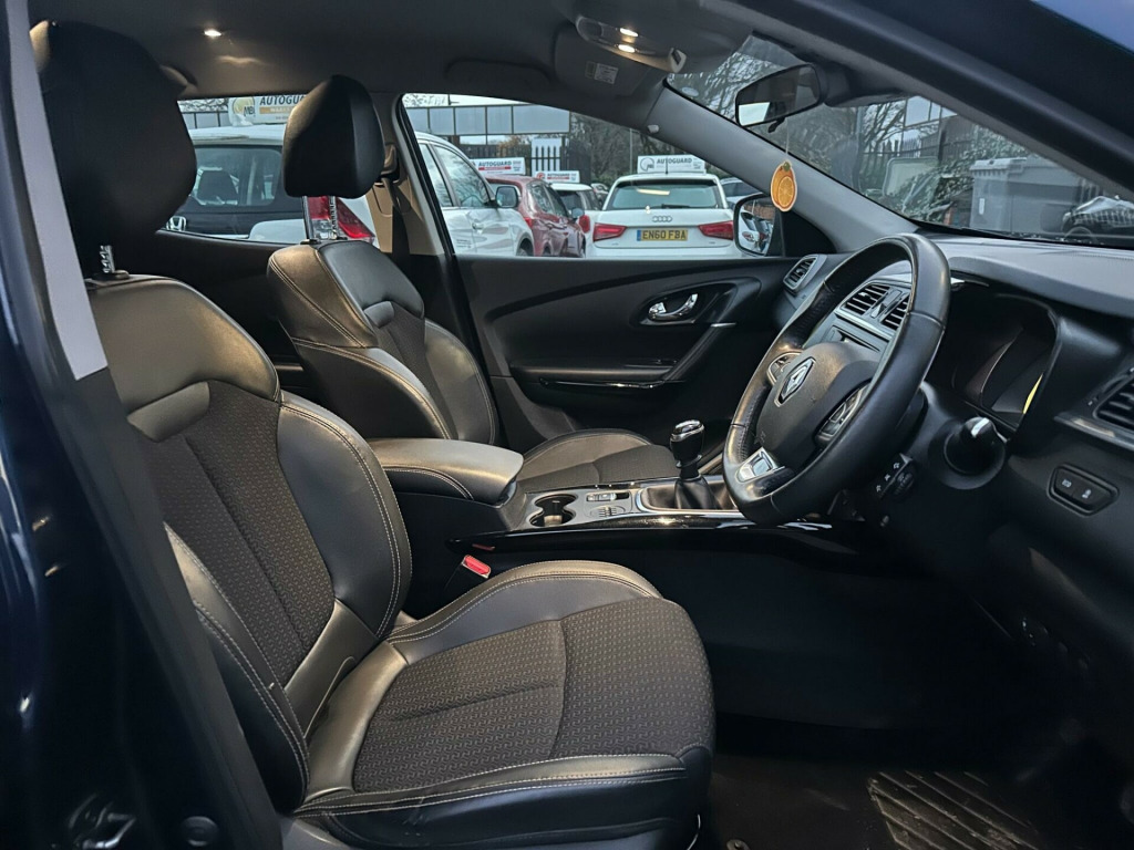 ON V CAR CAT N!This 2016 Renault Kadjar TCe Dynamique S Nav is a superb example, having had only two owners from new. This stylish SUV is powered by an efficient 1.2 litre petrol engine, meeting Euro 6 emissions standards. It comes equipped with front and rear parking sensors, complete with parking assistance for both front and rear, making manoeuvring a breeze. Inside, you'll find the Arkamys 3D Sound system with DAB radio, Bluetooth connectivity for calls and music streaming, and a USB connection. The convenience of a hands free keycard allows for keyless entry, and for seamless smartphone integration, it features both Apple CarPlay and Android Auto.This Kadjar offers excellent value, with a highlight fuel economy of 49 miles per gallon, demonstrating its efficiency on longer journeys. Its low insurance group rating means more affordable cover, and its low CO2 emissions further contribute to lower running costs. These highlights indicate that this particular Kadjar is a more economical and cost effective choice compared to many other similar vehicles on the market. in alloy wheels - diamond cut - apollo, 3 point inertia reel seatbelts, abs with ebd - electronic brake distribution and emergency brake assist, accessory power point, adjustable dashboard illumination, air recirculation, airbags - drivers two stage auto adaptive, airbags - front lateral, airbags - front passenger deactivation, airbags - front passengers two stage adaptive, airbags - front and rear curtain, android auto, anti-drill door locks and ignition barrel, apple carplay, arkamys 3d sound 4x35w dab radio with bluetooth and usb connection, armrest - front centre, assisted parking brake, automatic headlights and windscreen wipers, body sided moulding with chrome insert, chrome detailing, chrome window surrounds, climate control - automatic dual zone, climate pack, convenience pack, courtesy lights - rear, cruise control with speed limiter, daylight-nightlight rearview mirror, daytime running lights - led, display - digital speedometer - 7in tft screen, door handles - body coloured - front, door mirrors - body coloured shell, door mirrors - electrically operated - heated - folding, door-boot open warning light, driver and passenger seat belt undone warning audible alert, dust protection kit, esp - electronic stability programme with asr - anti-skid regulation and ucl - understeer logic control, eco mode, electric windows - front, electric windows - rear, electronic parking brake, exterior temperature sensor, extra tinted windows - rear and tailgate, fingertip audio system remote control, fleet management, fog lights with cornering function, front and rear towing rings, full flat floor, glovebox light, gravel protection kit, hsa - hill start assist, headlights - halogen, headrests - front fully adjustable, headrests - rear height adjustable x3, heated rear windscreen, heating ducts to feet of rear passengers, height adjustable front seat belts, isofix - child seat fixing points - outer rear seats, indicators with side repetitions, insurance approved - category 1 alarm system and immobiliser, integrated fuel filler cap, interior courtesy light controlled by all 4 doors, keycard - hands free, low fuel level warning light, luggage compartment - illumination, multi position trunk floor, oil level gauge, parking sensors - front and rear, passenger height adjustment seat, pollen filter, power assisted steering, protective rear brake disc, raid - renault anti intruder device, rain protection kit, reading lights - driver and front passenger, rear seat belt undone warning audible alert, rev-counter, roof rails, satellite navigation - r-link v2 system, seats - 3-seat rear bench, seats - 60-40 split folding rear, seats - drivers height and lumbar adjustment, seats - height adjustable front seatbelts with double pretensioners, seats - one touch easy folding rear bench, side impact protection bars, steering wheel - leather, steering wheel - rake and reach adjustable, sun visor - mirror without light, superlocking, trip computer, tyre inflation kit, tyre pressure monitoring system, usb connection, visio system, windscreen wipers - front with variable speed adjustment, windscreen wipers - rear