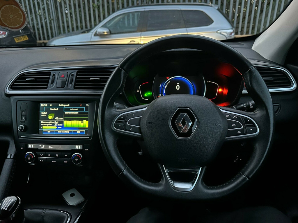 ON V CAR CAT N!This 2016 Renault Kadjar TCe Dynamique S Nav is a superb example, having had only two owners from new. This stylish SUV is powered by an efficient 1.2 litre petrol engine, meeting Euro 6 emissions standards. It comes equipped with front and rear parking sensors, complete with parking assistance for both front and rear, making manoeuvring a breeze. Inside, you'll find the Arkamys 3D Sound system with DAB radio, Bluetooth connectivity for calls and music streaming, and a USB connection. The convenience of a hands free keycard allows for keyless entry, and for seamless smartphone integration, it features both Apple CarPlay and Android Auto.This Kadjar offers excellent value, with a highlight fuel economy of 49 miles per gallon, demonstrating its efficiency on longer journeys. Its low insurance group rating means more affordable cover, and its low CO2 emissions further contribute to lower running costs. These highlights indicate that this particular Kadjar is a more economical and cost effective choice compared to many other similar vehicles on the market.. 19in Alloy Wheels - Diamond Cut - Apollo, 3 Point Inertia Reel Seatbelts, ABS with EBD - Electronic Brake Distribution and Emergency Brake Assist, Accessory Power Point, Adjustable Dashboard Illumination, Air Recirculation, Airbags - Drivers Two Stage Auto Adaptive, Airbags - Front Lateral, Airbags - Front Passenger Deactivation, Airbags - Front Passengers Two Stage Adaptive, Airbags - Front and Rear Curtain, Android Auto, Anti-Drill Door Locks and Ignition Barrel, Apple CarPlay, Arkamys 3D Sound 4x35W DAB Radio with Bluetooth and USB Connection, Armrest - Front Centre, Assisted Parking Brake, Automatic Headlights and Windscreen Wipers, Body Sided Moulding with Chrome Insert, Chrome Detailing, Chrome Window Surrounds, Climate Control - Automatic Dual Zone, Climate Pack, Convenience Pack, Courtesy Lights - Rear, Cruise Control with Speed Limiter, Daylight-Nightlight Rearview Mirror, Daytime Running Lights - LED, Display - Digital Speedometer - 7in TFT Screen, Door Handles - Body Coloured - Front, Door Mirrors - Body Coloured Shell, Door Mirrors - Electrically Operated - Heated - Folding, Door-Boot Open Warning Light, Driver and Passenger Seat Belt Undone Warning Audible Alert, Dust Protection Kit, ESP - Electronic Stability Programme with ASR - Anti-Skid Regulation and UCL - Understeer Logic Control, Eco Mode, Electric Windows - Front, Electric Windows - Rear, Electronic Parking Brake, Exterior Temperature Sensor, Extra Tinted Windows - Rear and Tailgate, Fingertip Audio System Remote Control, Fleet Management, Fog Lights with Cornering Function, Front and Rear Towing Rings, Full Flat Floor, Glovebox Light, Gravel Protection Kit, HSA - Hill Start Assist, Headlights - Halogen, Headrests - Front Fully Adjustable, Headrests - Rear Height Adjustable x3, Heated Rear Windscreen, Heating Ducts to Feet of Rear Passengers, Height Adjustable Front Seat Belts, ISOFIX - Child Seat Fixing Points - Outer Rear Seats, Indicators with Side Repetitions, Insurance Approved - Category 1 Alarm System and Immobiliser, Integrated Fuel Filler Cap, Interior Courtesy Light Controlled By All 4 Doors, Keycard - Hands Free, Low Fuel Level Warning Light, Luggage Compartment - Illumination, Multi Position Trunk Floor, Oil Level Gauge, Parking Sensors - Front and Rear, Passenger Height Adjustment Seat, Pollen Filter, Power Assisted Steering, Protective Rear Brake Disc, RAID - Renault Anti Intruder Device, Rain Protection Kit, Reading Lights - Driver and Front Passenger, Rear Seat Belt Undone Warning Audible Alert, Rev-Counter, Roof Rails, Satellite Navigation - R-Link v2 System, Seats - 3-Seat Rear Bench, Seats - 60-40 Split Folding Rear, Seats - Drivers Height and Lumbar Adjustment, Seats - Height Adjustable Front Seatbelts with Double Pretensioners, Seats - One Touch Easy Folding Rear Bench, Side Impact Protection Bars, Steering Wheel - Leather, Steering Wheel - Rake and Reach Adjustable, Sun Visor - Mirror Without Light, Superlocking, Trip Computer, Tyre Inflation Kit, Tyre Pressure Monitoring System, USB Connection, Visio System, Windscreen Wipers - Front with Variable Speed Adjustment, Windscreen Wipers - Rear.