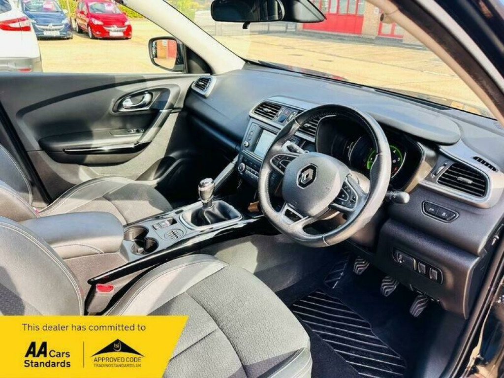RENAULT KADJAR 1.2 TCE 130 DYNAMIQUE S Hatchback DVSA MILEAGE-27k (18/12/2018), 34k (21/11/2019), 41k (19/11/2020), 48k (15/11/2021), 55k (10/11/2022), 65k (16/11/2023), 69k (18/11/2024).Navigation HDD Parking Sensor(s) Climate Control Half Leather Trim Tyre Inflation Kit 19' Alloy Wheels 12V Power Socket, Android Auto, Apple CarPlay, Cruise Control, Daytime Running Lights, Electric Windows, Heated Rear Windshield, Hill-Start Assist, Parking Assistance, Power Assisted Steering, Side Impact Airbags